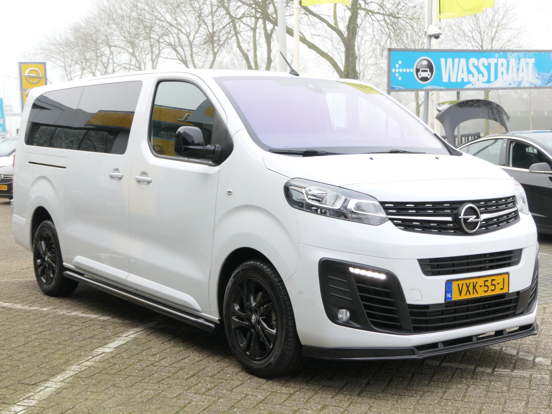 Tevens is deze Opel Vivaro voorzien vanzwarte sidebars, dakspoiler in hooglans zwart, glaslook panelen, spoiler voorbumper en hooglans zwarte velgen!