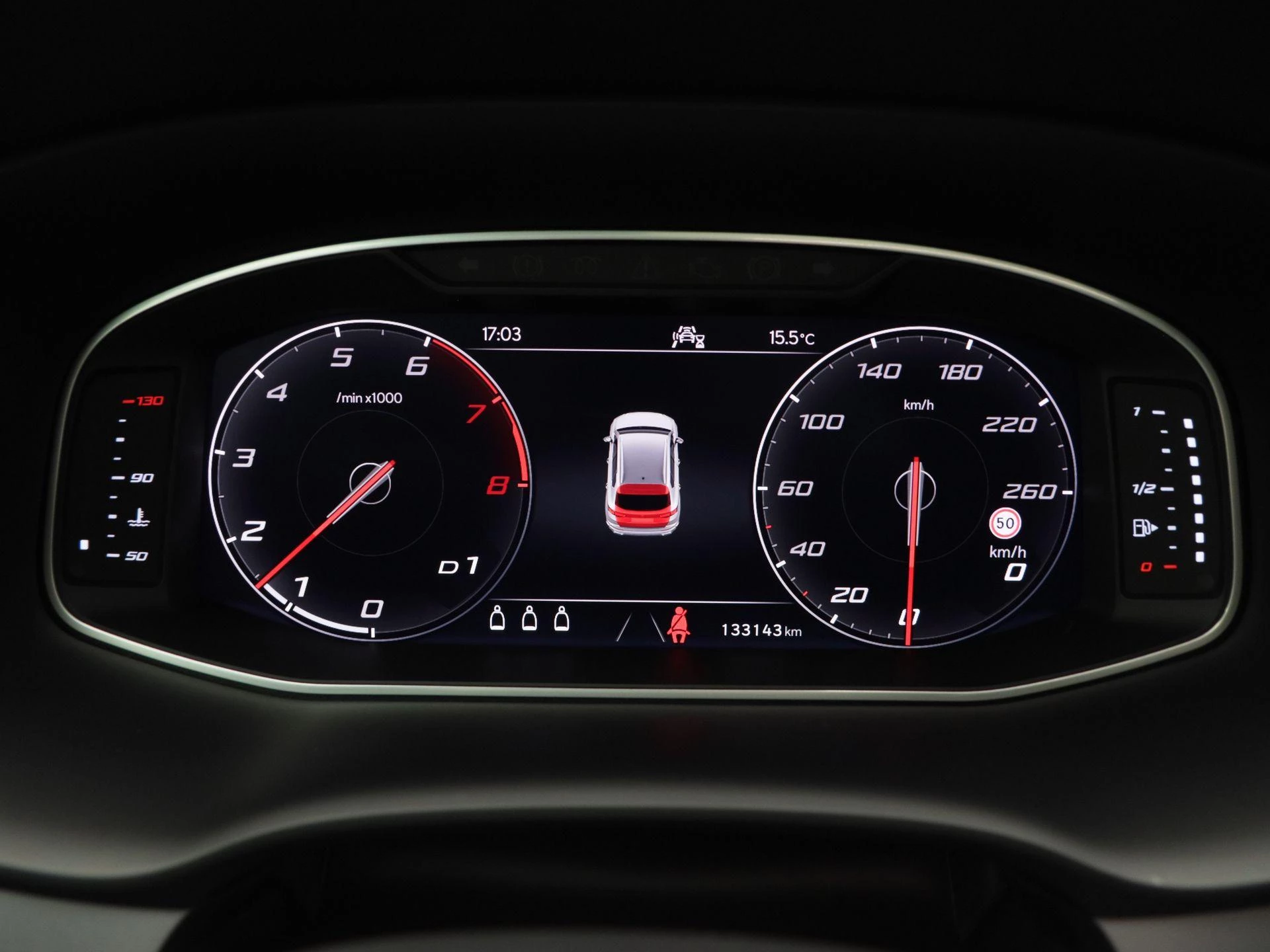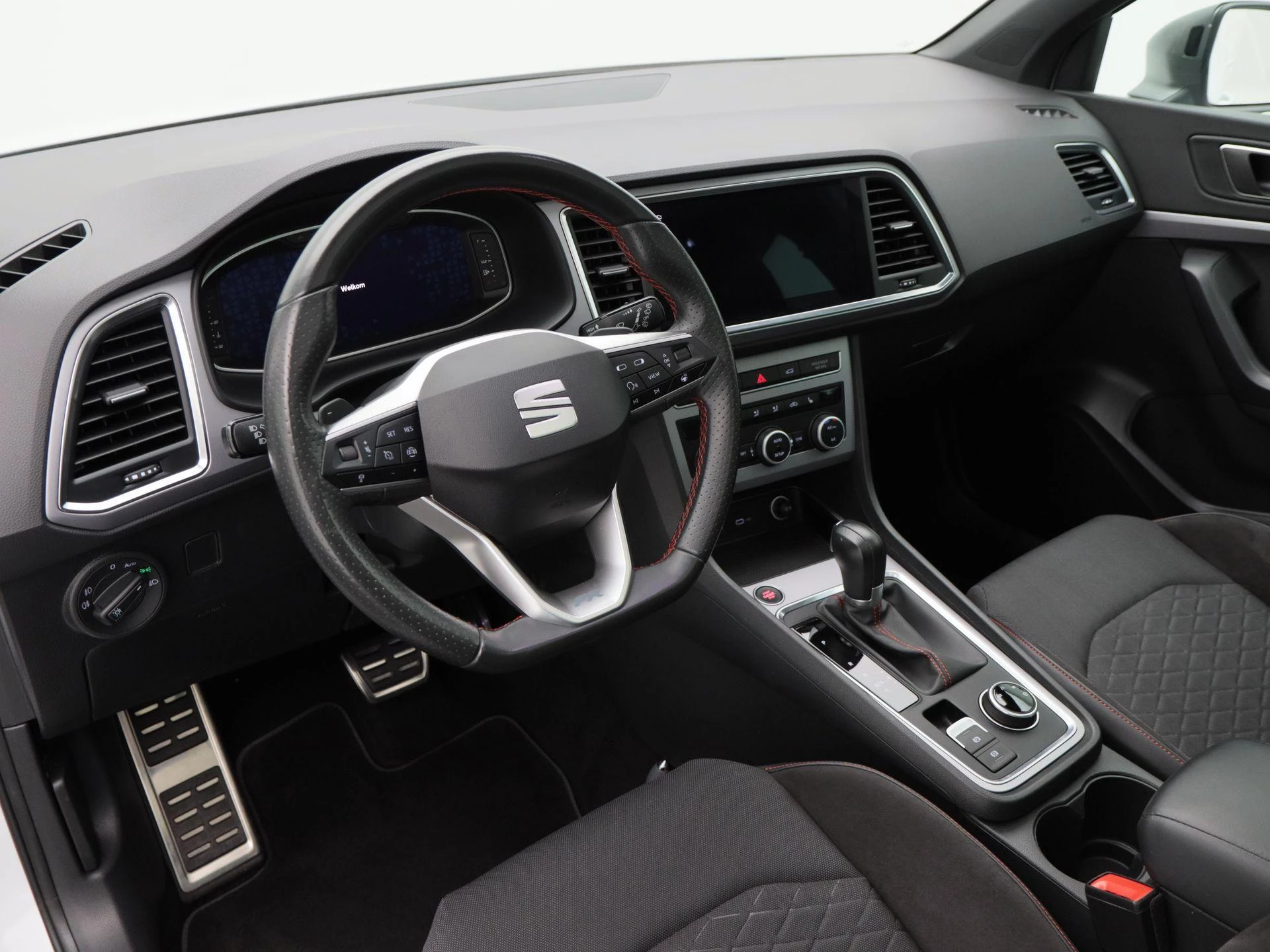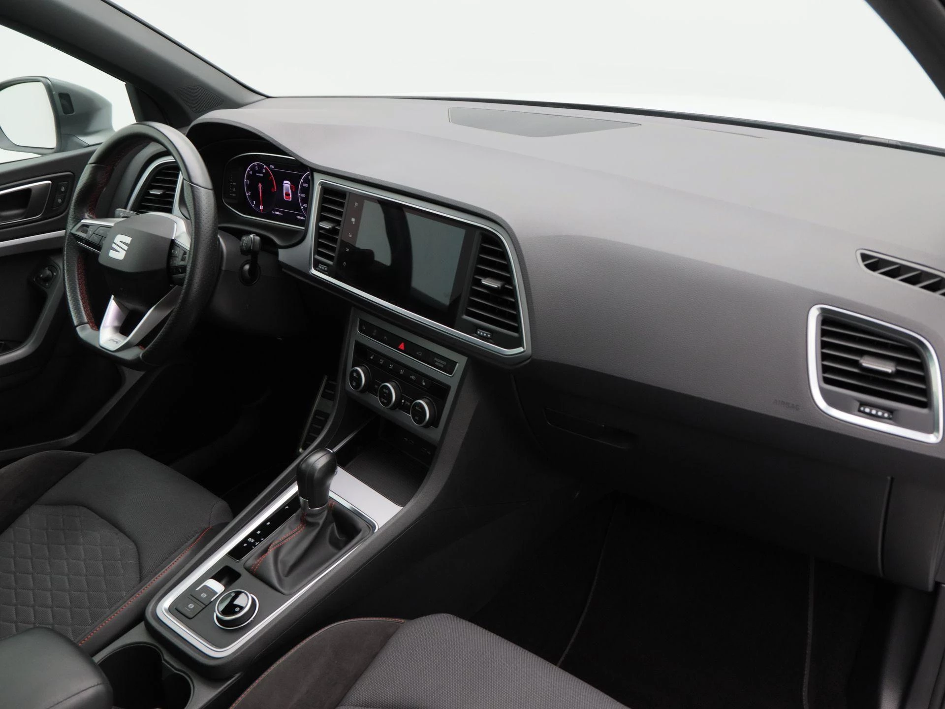 Binnenin vind je een prettige mix van sportiviteit en comfort: stevige FR-sportstoelen, een digitaal instrumentenpaneel, en hoogwaardige materialen die de Spaanse flair van SEAT benadrukken.