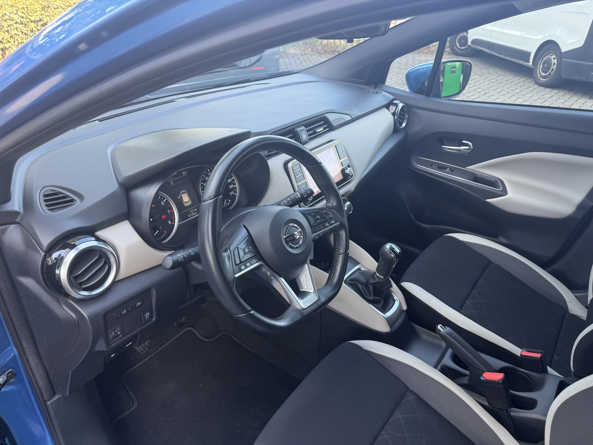 Inparkeren? Met de achteruitrijcamera heeft u er geen omkijken meer naar! U kunt het audiosysteem met DAB-ontvangst en het navigatiesysteem bedienen met de knoppen op het stuur. De sensoren van de achteropkomend verkeer waarschuwing registreren wat er gebeurt in de dode hoeken en achter u. U krijgt meteen een waarschuwing als u een achterligger over het hoofd ziet. De cruise control betekent gemak, comfort en zuinig rijden. Klinkt dit bekend? Met een volle boodschappentas bij uw auto aankomen en dan onderin op zoek moeten naar de sleutel. Hoeft niet bij deze Nissan Micra dankzij de keyless entry. Ook airconditioning, lederen stuur, isofix-aansluiting, usb-aansluiting en aux ingang, centrale deurvergrendeling met afstandsbediening en toerenteller horen tot de voorzieningen op deze auto.