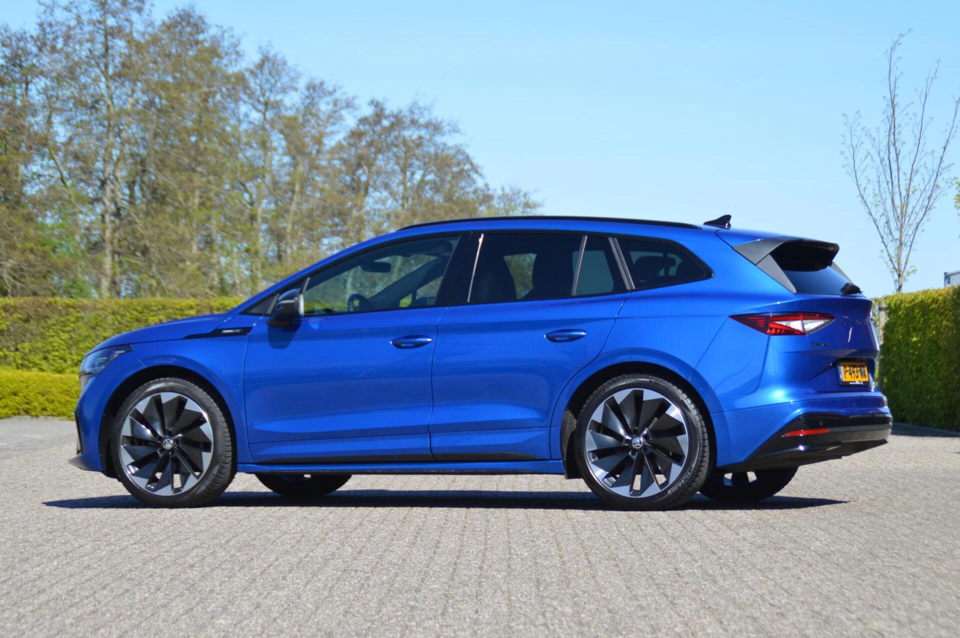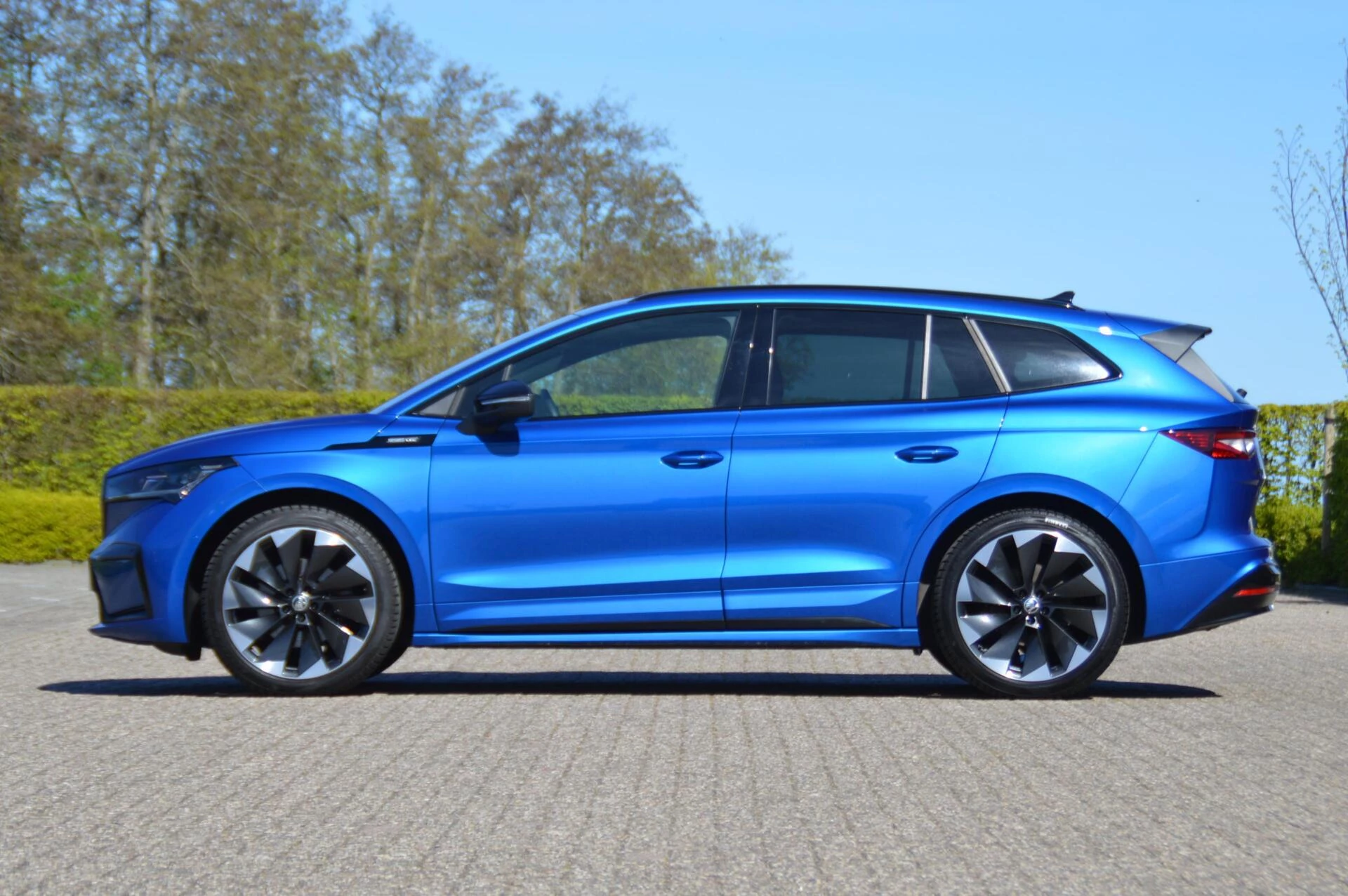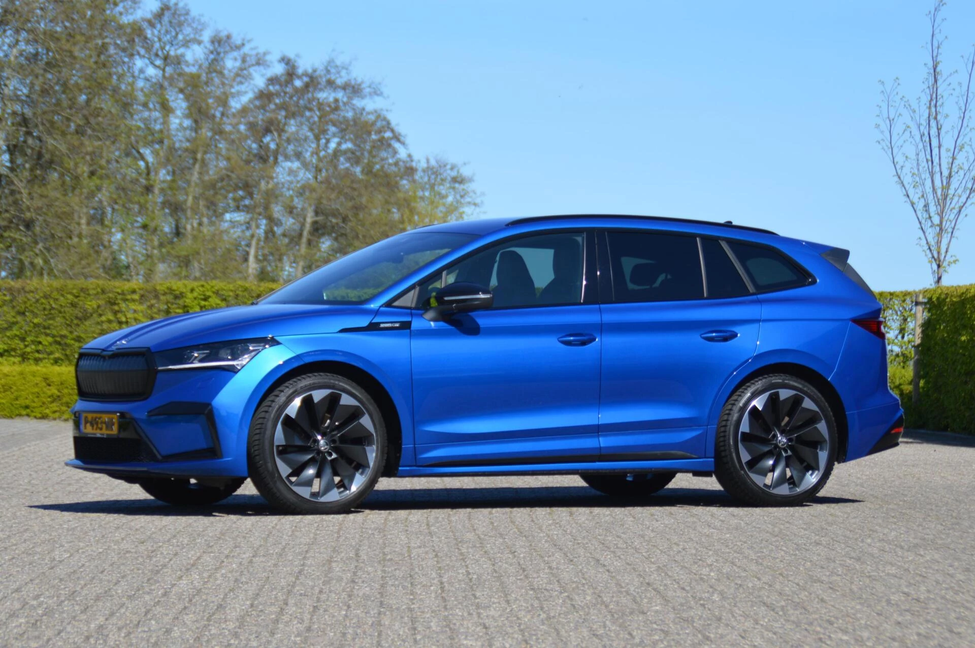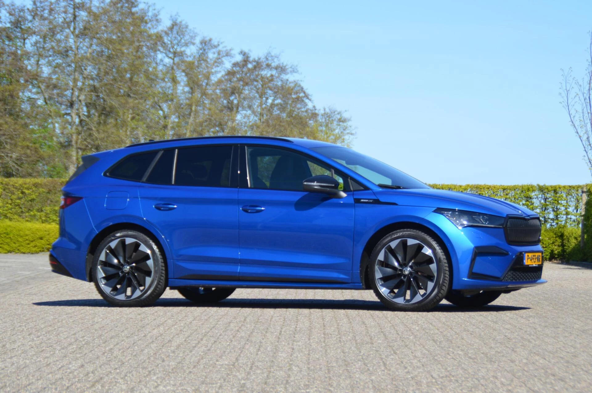 Schitterende jong gebruikte Skoda Enyaq, in de prachtige kleur Raceblue metallic. Slechts 44.763 km heeft de 1e en enige eigenaar in de ruime elektrisch aangedreven SUV gereden, met een keurige state of health waarde van bijna 97 %. Bij binnenkomst hebben wij een onderhoudsbeurt uitgevoerd, zodat de Skoda helemaal klaar is voor aflevering aan de volgende eigenaar. Die gaat ongetwijfeld veel plezier beleven aan de Enyaq, want alle luxe is aanwezig in deze Sportline uitvoering. Een volautomatische 3 zone airconditioning, parkeersensoren voor en achter, achteruitrijcamera, adaptieve cruise control en LED koplampen zijn aanwezig, net zoals verwarmbare voorstoelen en achterbank. Maar ook tref je natuurlijk de karakteristieke spoilerdelen van de Sportline uitvoering aan op deze auto, net zoals het sportinterieur met deels met kunstleder beklede superstportstoelen en zwarte hemelbekleding. Verder vallen aan de buitenzijde de mooie sportieve 20 inch velgen en de hoogglans zwart gelakte sierlijsten gelijk op. Fijn is bovendien te weten dat er nooit in de auto is gerookt en er geen huisdieren in zijn vervoerd. Voor diegene die op zoek is naar een Enyaq in een zeer nette staat en een aantrekkelijk lage kilometerstand een niet te missen kans.