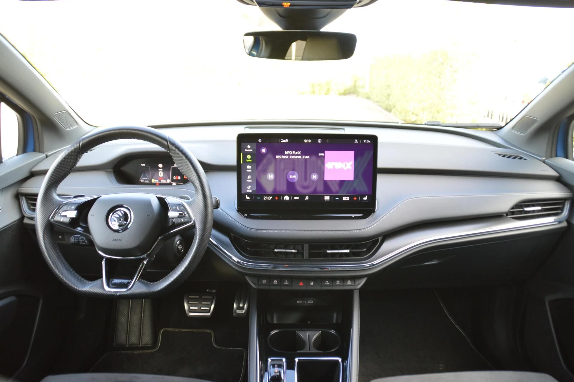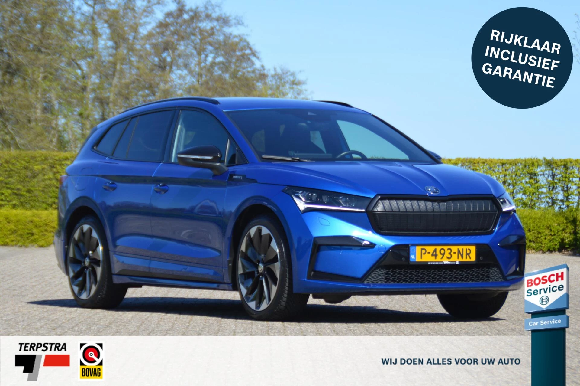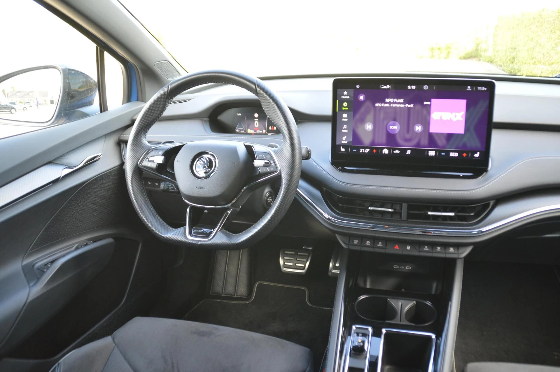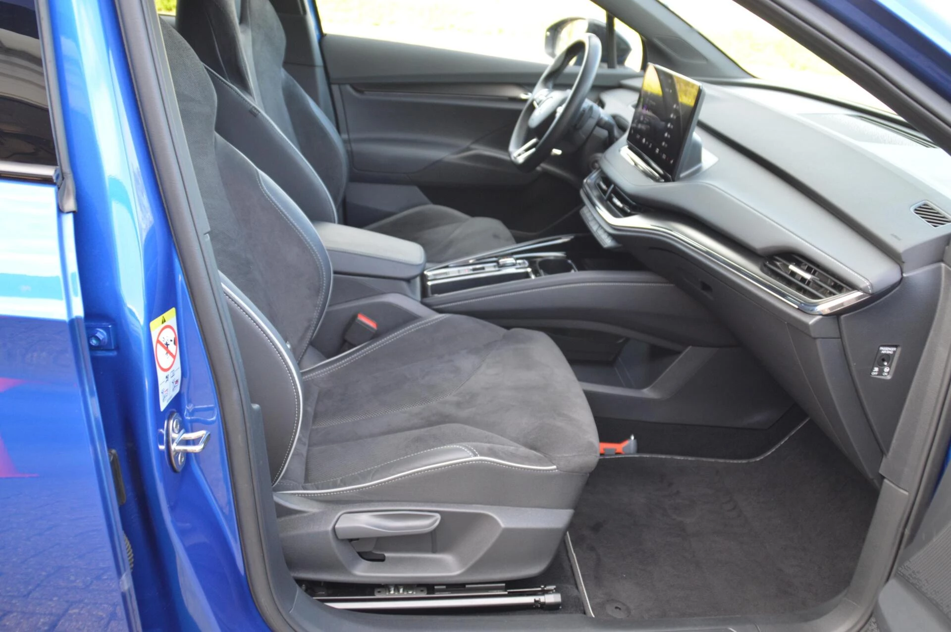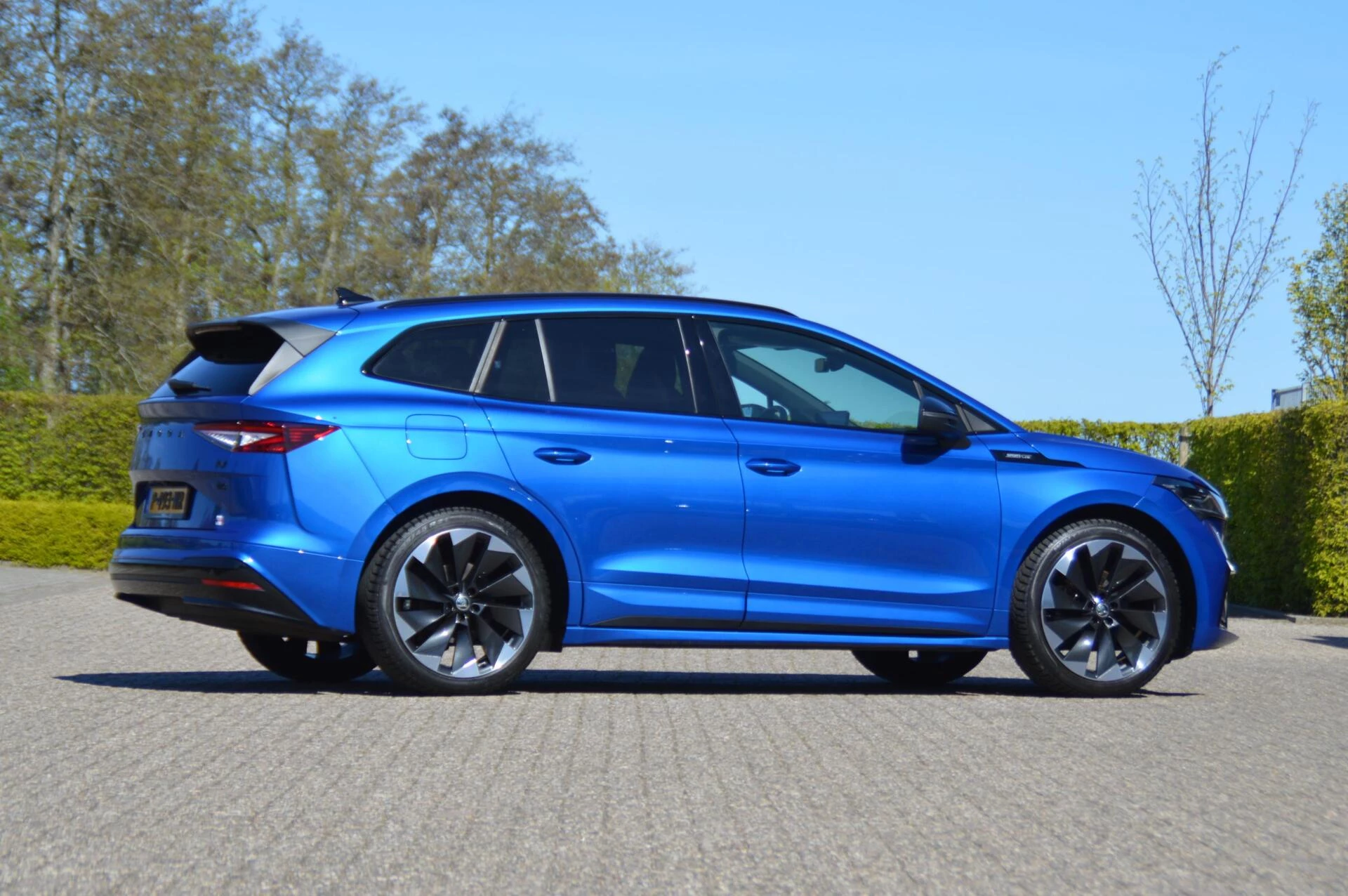 Schitterende jong gebruikte Skoda Enyaq, in de prachtige kleur Raceblue metallic. Slechts 44.763 km heeft de 1e en enige eigenaar in de ruime elektrisch aangedreven SUV gereden, met een keurige state of health waarde van bijna 97 %. Bij binnenkomst hebben wij een onderhoudsbeurt uitgevoerd, zodat de Skoda helemaal klaar is voor aflevering aan de volgende eigenaar. Die gaat ongetwijfeld veel plezier beleven aan de Enyaq, want alle luxe is aanwezig in deze Sportline uitvoering. Een volautomatische 3 zone airconditioning, parkeersensoren voor en achter, achteruitrijcamera, adaptieve cruise control en LED koplampen zijn aanwezig, net zoals verwarmbare voorstoelen en achterbank. Maar ook tref je natuurlijk de karakteristieke spoilerdelen van de Sportline uitvoering aan op deze auto, net zoals het sportinterieur met deels met kunstleder beklede superstportstoelen en zwarte hemelbekleding. Verder vallen aan de buitenzijde de mooie sportieve 20 inch velgen en de hoogglans zwart gelakte sierlijsten gelijk op. Fijn is bovendien te weten dat er nooit in de auto is gerookt en er geen huisdieren in zijn vervoerd. Voor diegene die op zoek is naar een Enyaq in een zeer nette staat en een aantrekkelijk lage kilometerstand een niet te missen kans.