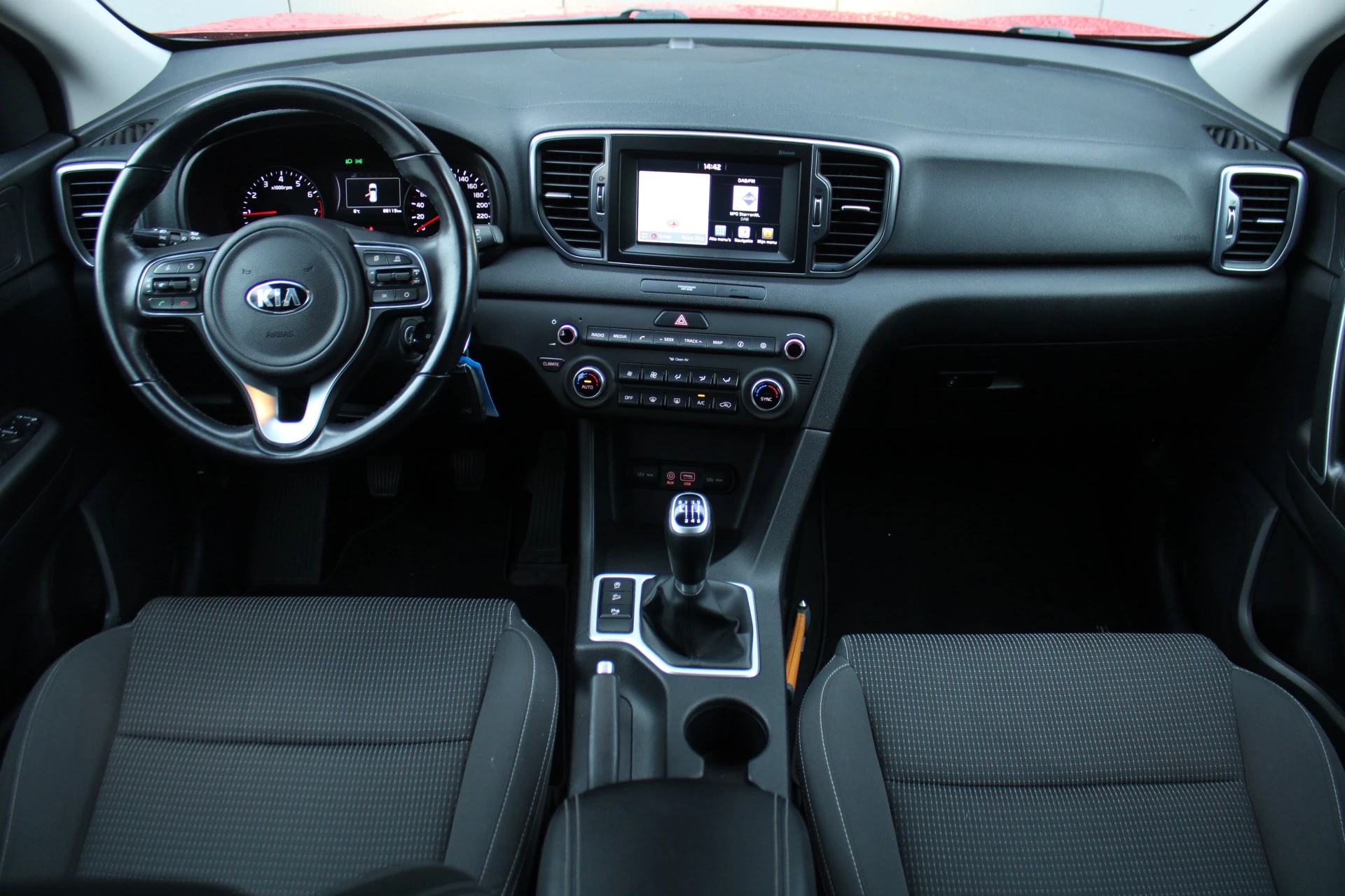 Pragmatisch en veilig als deze auto is, beschikt hij over diverse veiligheidssystemen. U rijdt ook veiliger omdat deze auto voor u de verkeersborden langs de weg kan lezen. De belangrijkste borden worden op uw instrumentarium geprojecteerd, zodat u ze niet kunt missen. Deze Kia Sportage is ook behulpzaam als het gaat om een rechte koers. Het Lane-keeping systeem signaleert en corrigeert als u onbedoeld de rijstrooklijnen dreigt te overschrijden. In deze Kia vinden we verder een hill hold functie en bandenspanningcontrolesysteem.
