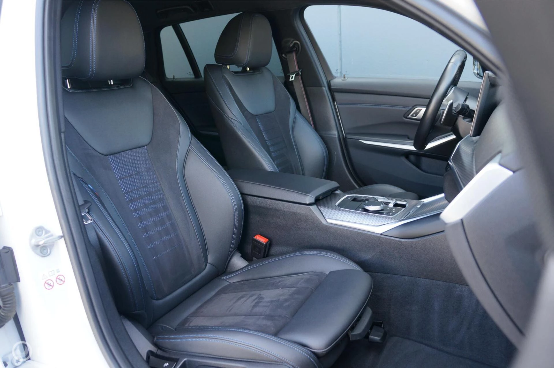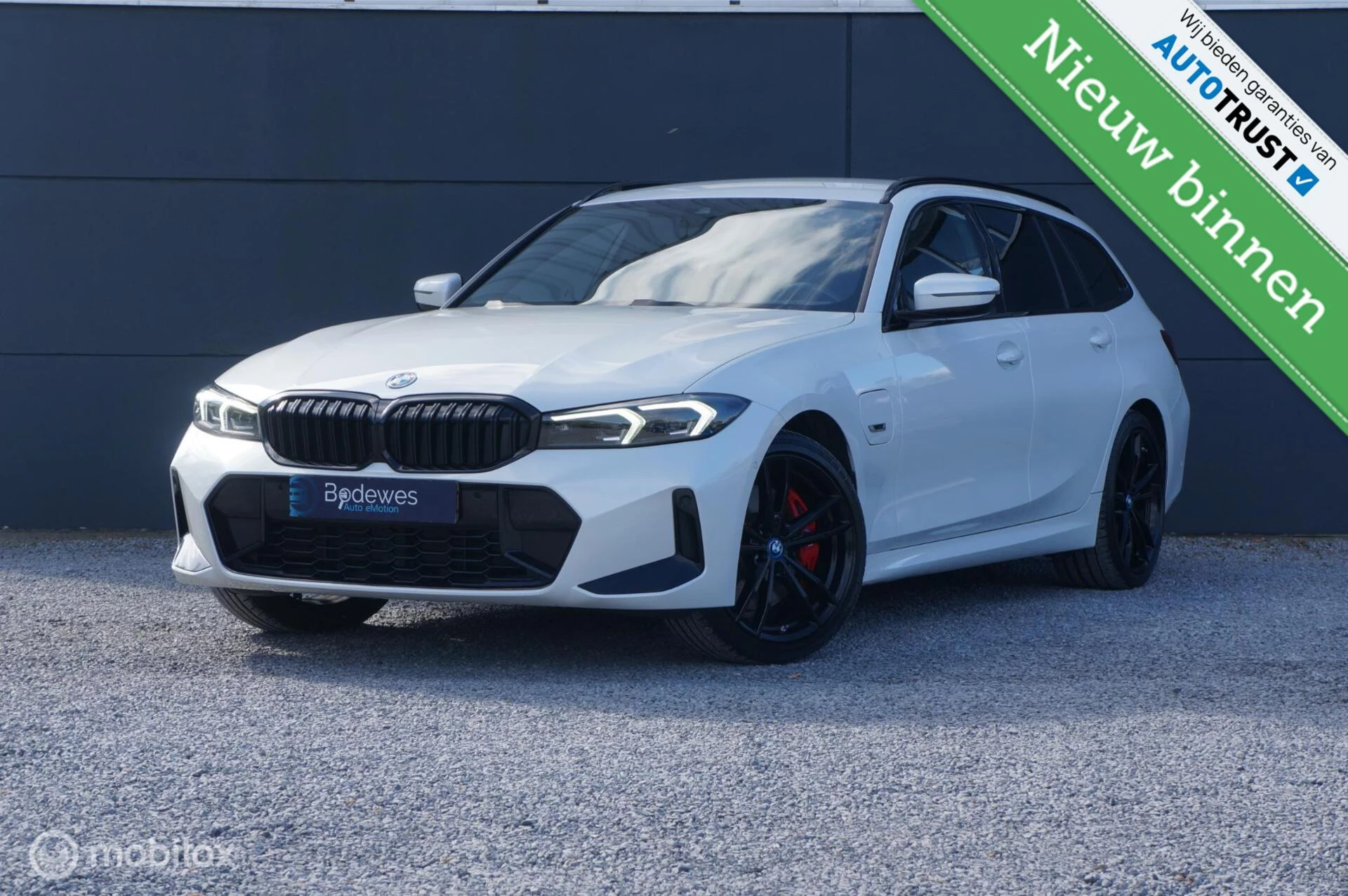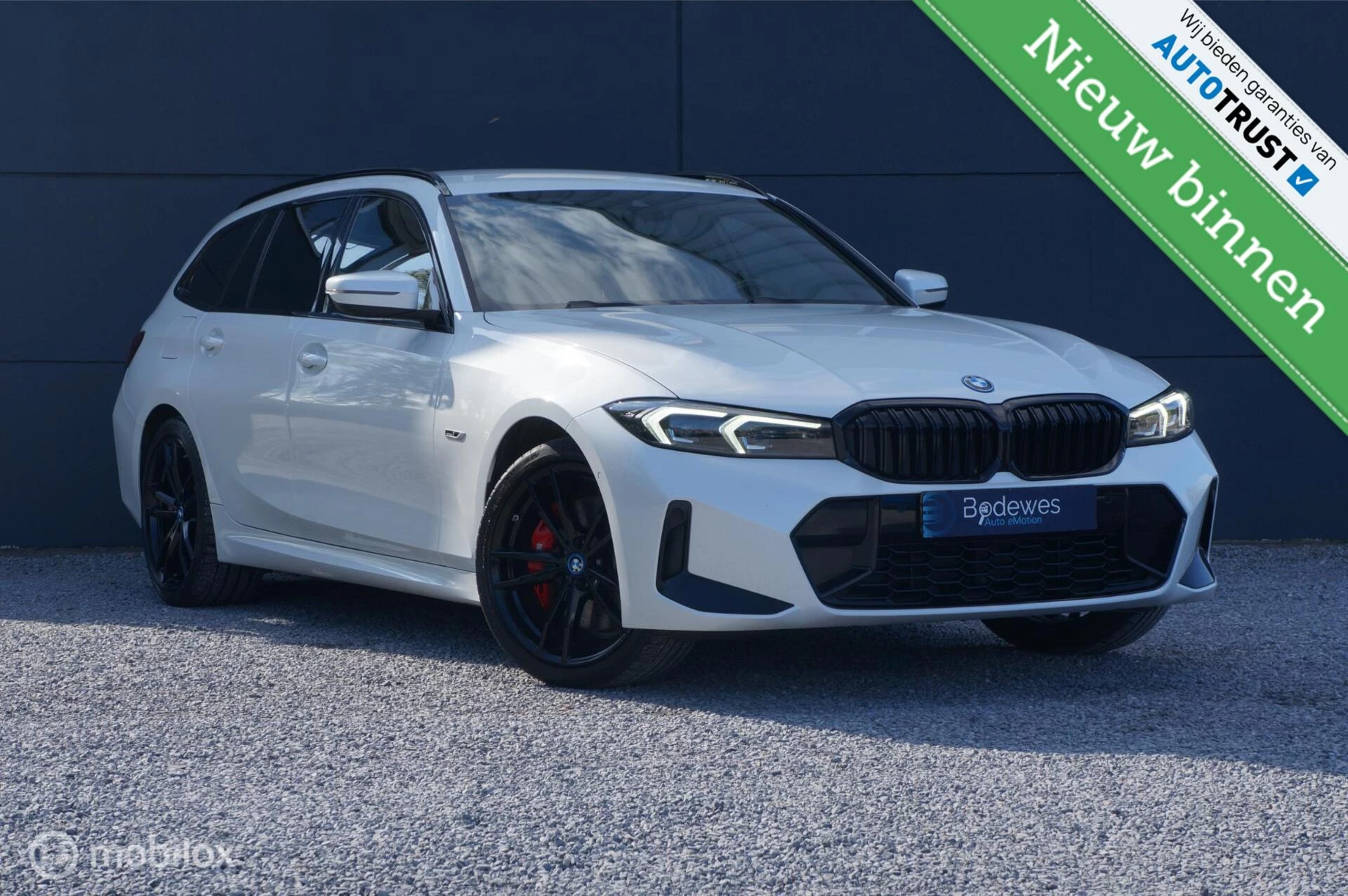 Een Beauty!! deze BMW 320e G21 Touring in Mineralweiß Metallic (Parelmoer) met M Sport pakket en zwarte exterieur afwerking en 19'' inch 9" M Leichtmetallräder Doppelspeiche 791 M wielen. En als de buitenkant u al aanspreekt, dan ook zeker de binnenkant! Combinatie van zwart leder en alcantara sportstoelen en Individual zwarte hemelbekleding, maken het helemaal af. En aan opties ontbreekt het deze auto ook niet, LCI dashboard met groot doorgetrokken scherm, Navigatie, Apple Carplay/Android Auto, Head Up Display, Virtual Cockpit, Parkeercamera achter, Parkeersensoren rondom, Stoelverwarming, Actief Hifi Luidspreker systeem, DAB Radio, het zit er allemaal op. Kijk hierboven ook de optielijst eens door en desgewenst hebben we voor u ook de af fabriek optielijst.