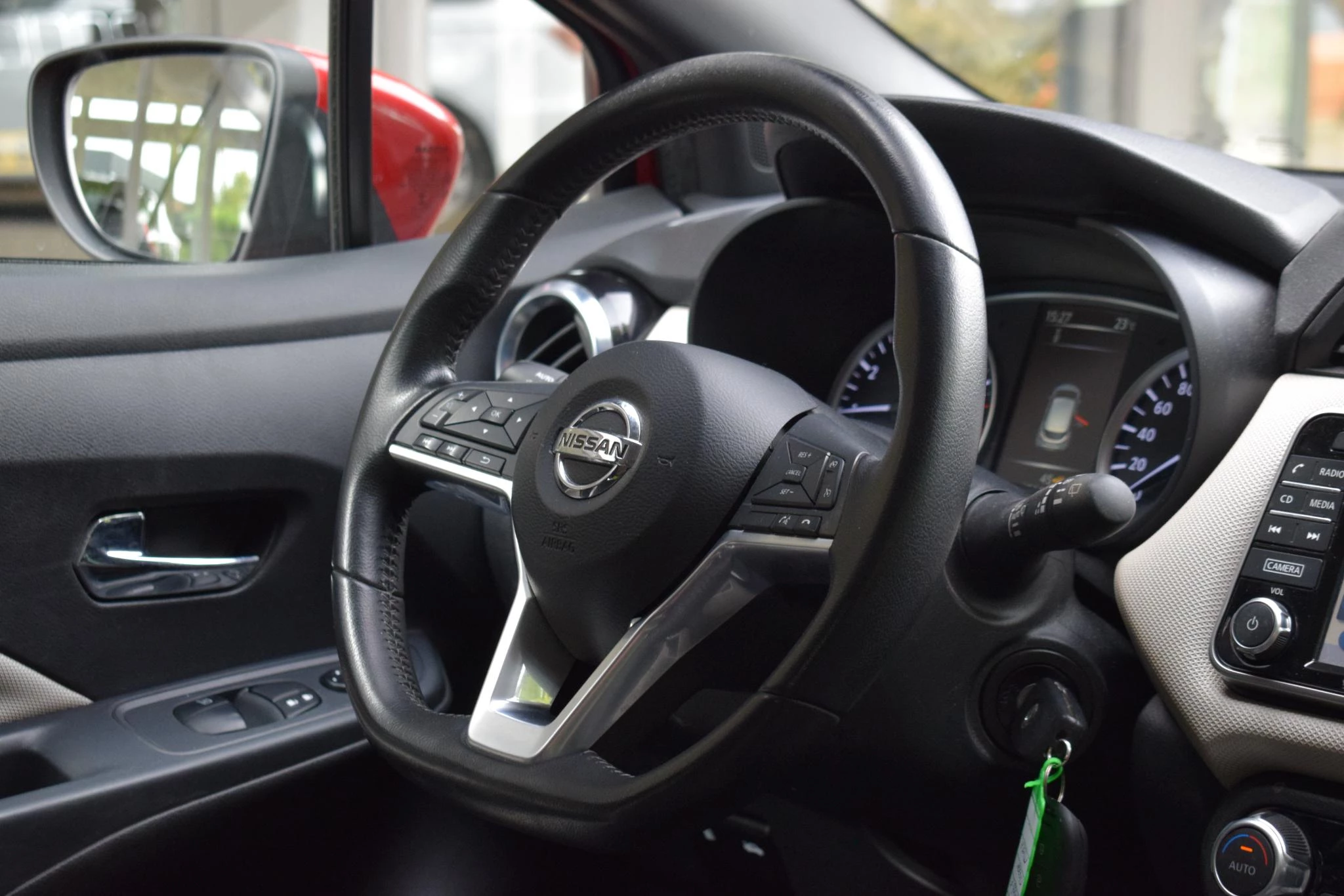 Onder alle omstandigheden perfect zicht op wat zich achter de auto afspeelt: de achteruitrijcamera zorgt ervoor! Met de knoppen op het stuur regelt u het audiosysteem en het full map navigatiesysteem, terwijl u uw blik op de weg gericht houdt. De audio-installatie biedt daarbij glasheldere ontvangst dankzij DAB-ontvangst. Tot de standaard uitrusting van deze auto hoort ook automatische airconditioning. Het hoort bij een intelligente auto als deze dat hij zelf in staat is om zijn omgeving in de gaten te houden. Dat doet deze Nissan met een automatisch inschakelbare verlichting en een regensensor. Kleine ritjes, grote reizen - altijd een relaxte aankomst dankzij de cruise control. Ook is de Nissan uitgerust met: lederen stuur, centrale deurvergrendeling met afstandsbediening en boordcomputer.