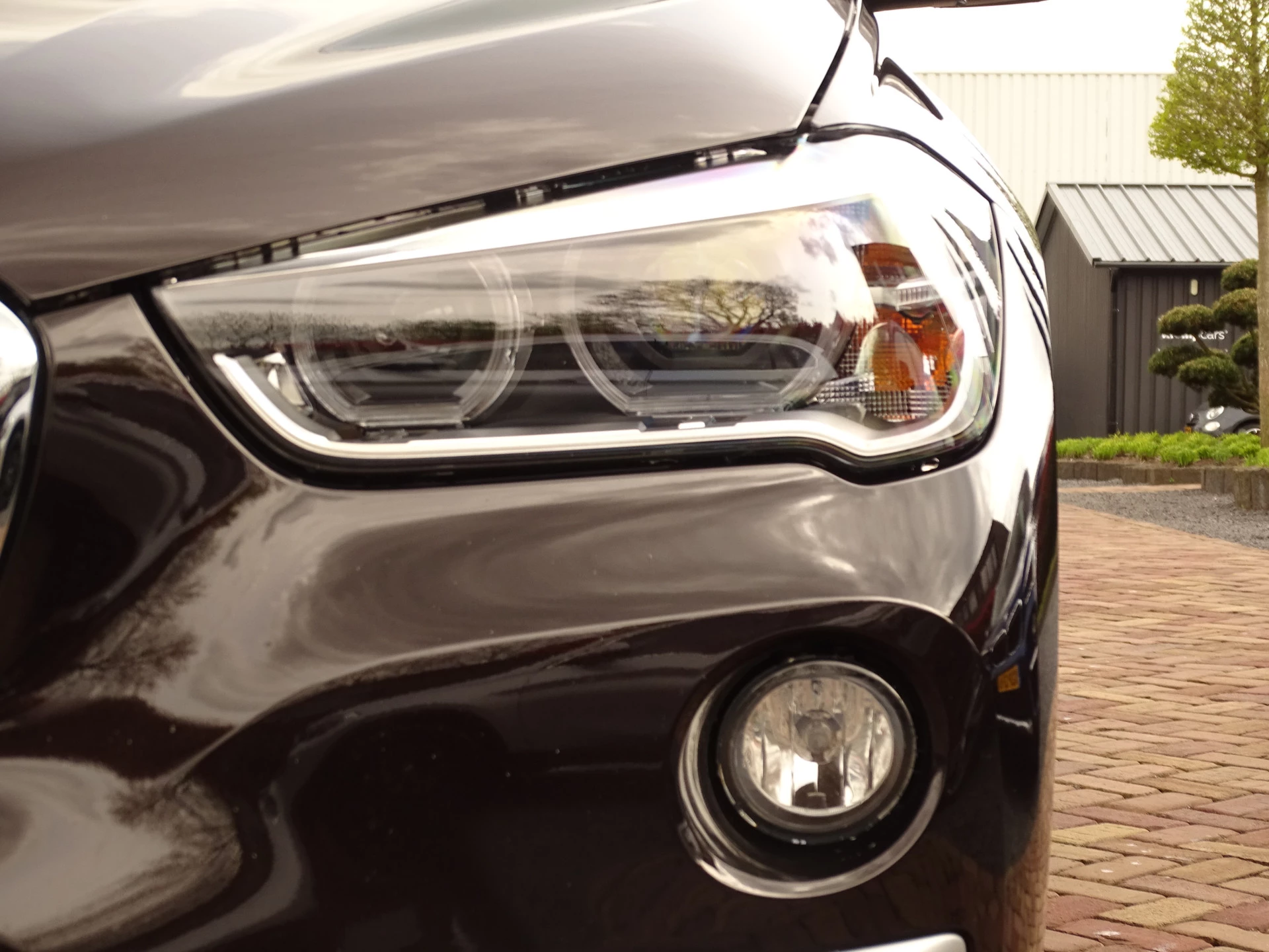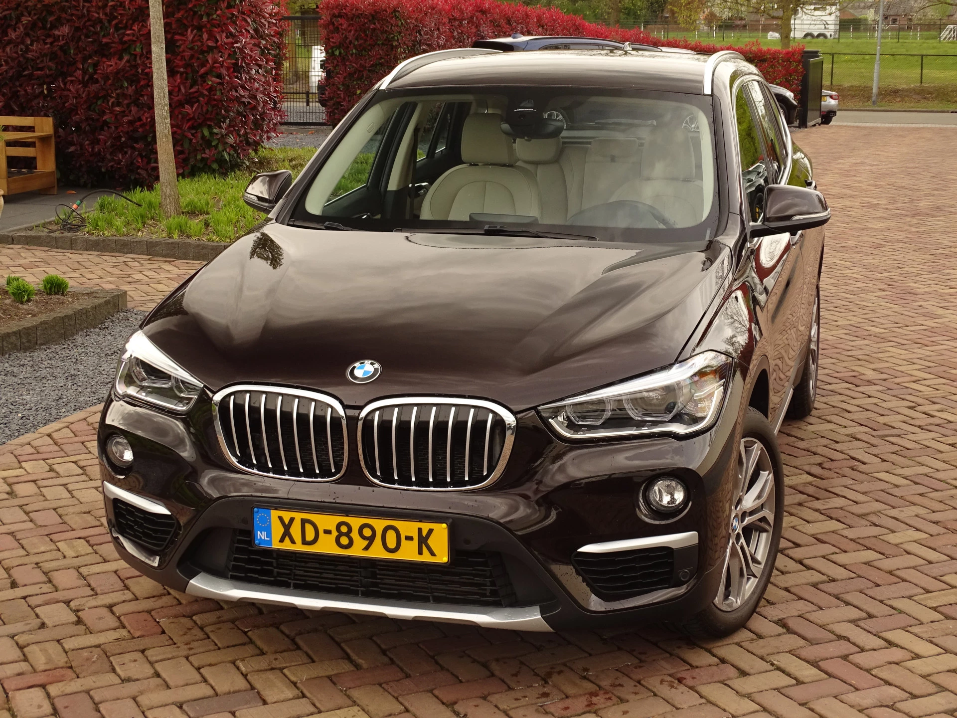 Een plaatje om te zien, warme kleuren die samen een zeer sjiek plaatje laten zien. De combinatie van deze kleuren is wat ons betreft Sparling, zo luisterd deze ogenschijnlijk donkere auto naar de kleur Sparkling Brown. Zo bij het voorbijgaan zou je denken dat is zwart, maar vooral met een zonneschijn is dit een spetterend plaatje. De uitrusting van deze X1 laat ook niets te wensen over we nemen alles even met u door: