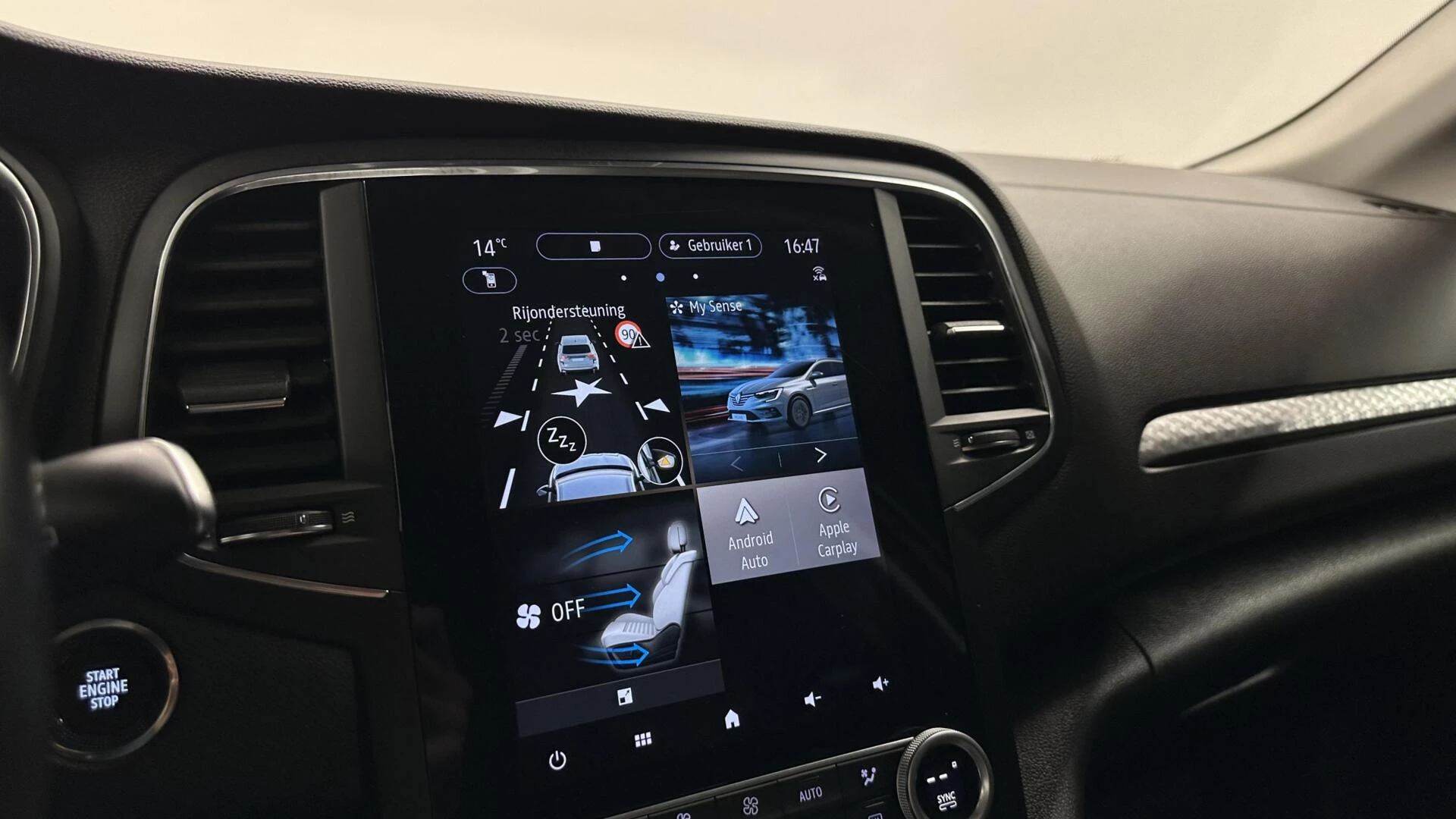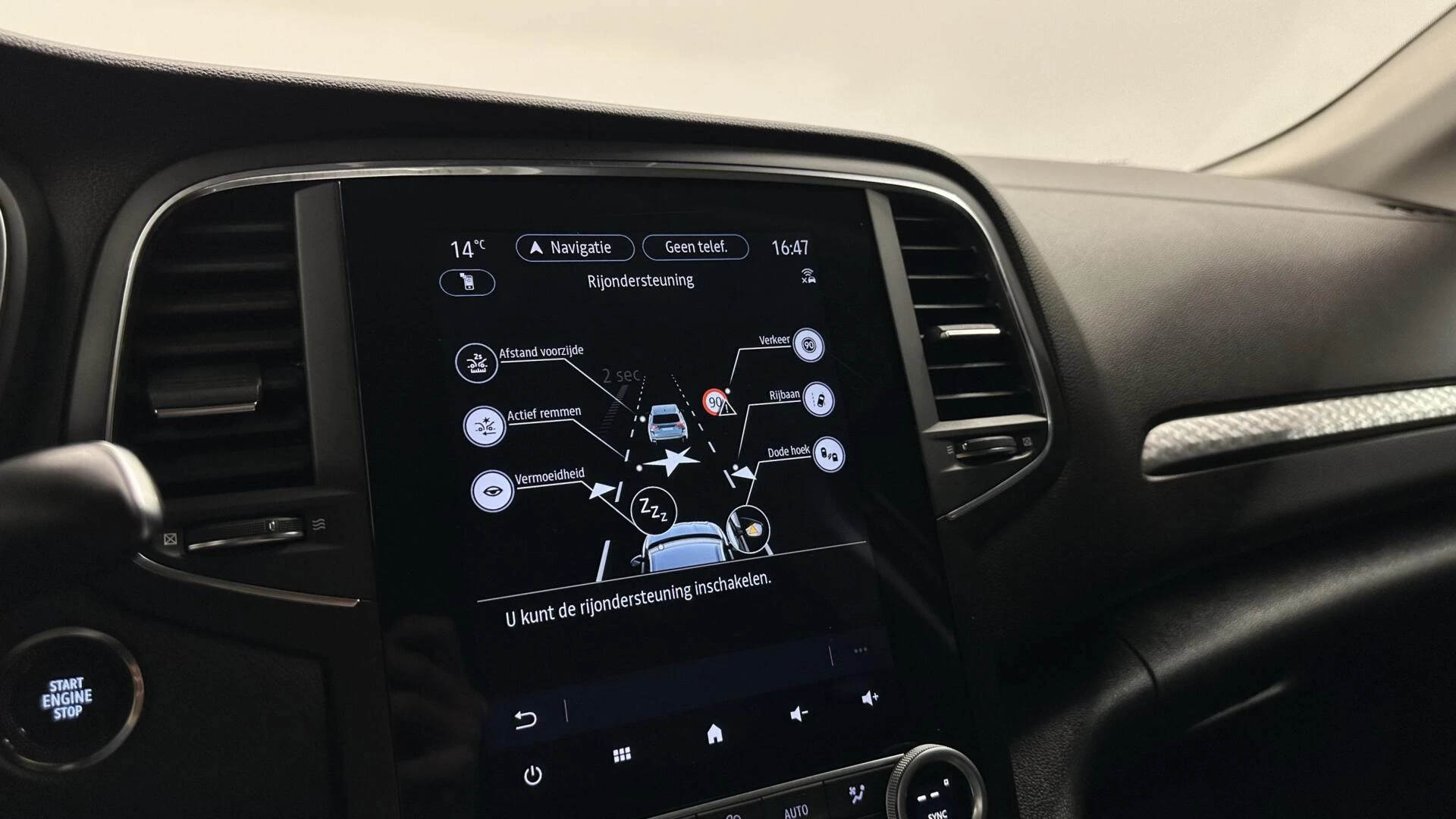 In de Renault Megane Estate heeft uw veiligheid en die van uw omgeving prioriteit. Onderweg fungeert de verkeersbord-detectie als het ware als uw bijrijder en attendeert u op de verkeersborden langs de weg. Het Lane-keeping systeem garandeert dat u zich niet onverhoeds buiten de lijnen van de rijstrook begeeft. Bij een noodstop gebeurt er heel veel tegelijk: gas los, rempedaal in, kijken, sturen. Dan is het een veilig gevoel dat de Brake Assist uw remactie tot het maximum oppept. U bent mede dankzij dodehoekdetectie, hill hold functie en bandenspanningcontrolesysteem steeds veilig onderweg.