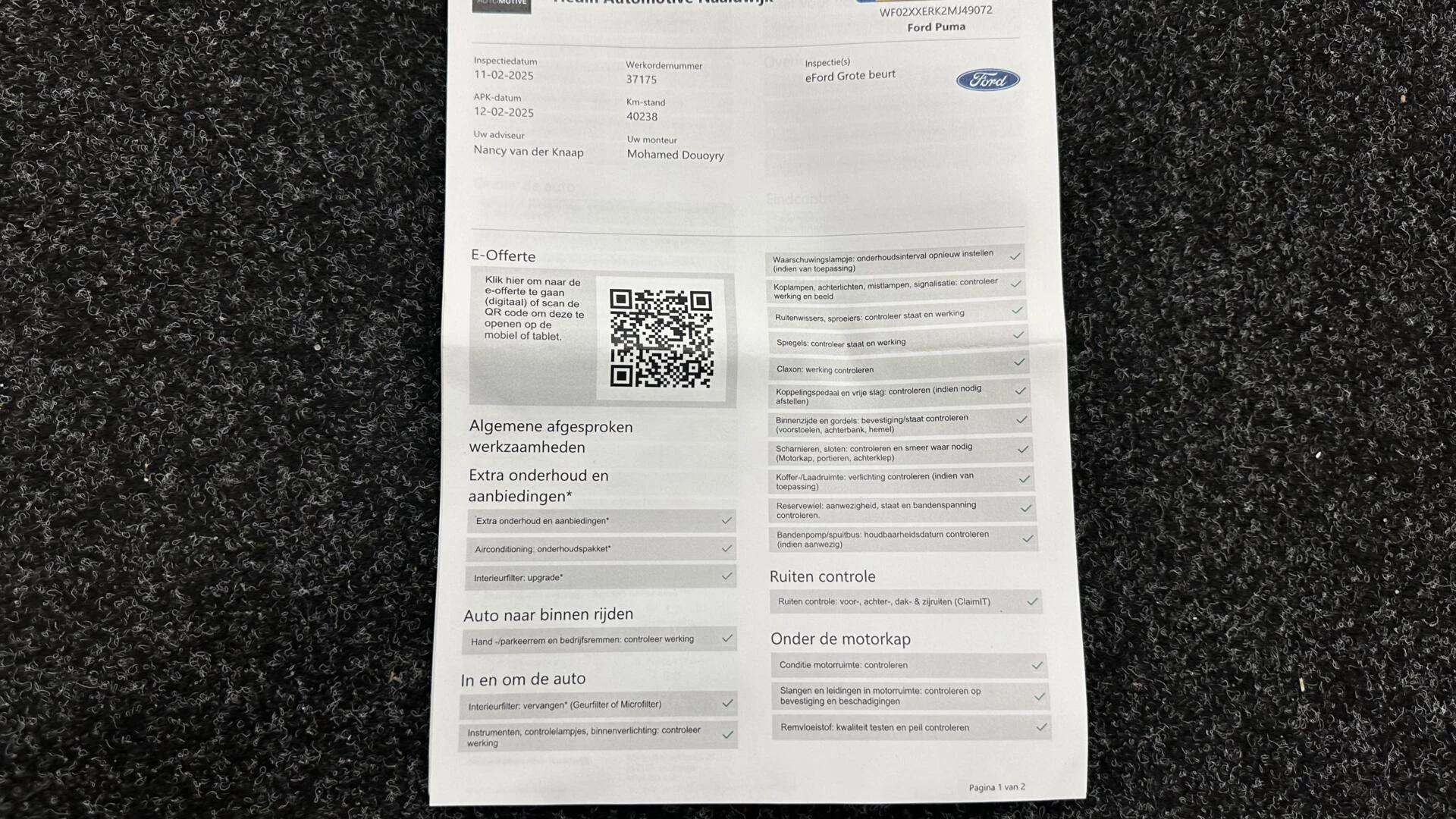 Inclusief onderhoudsbeurt.