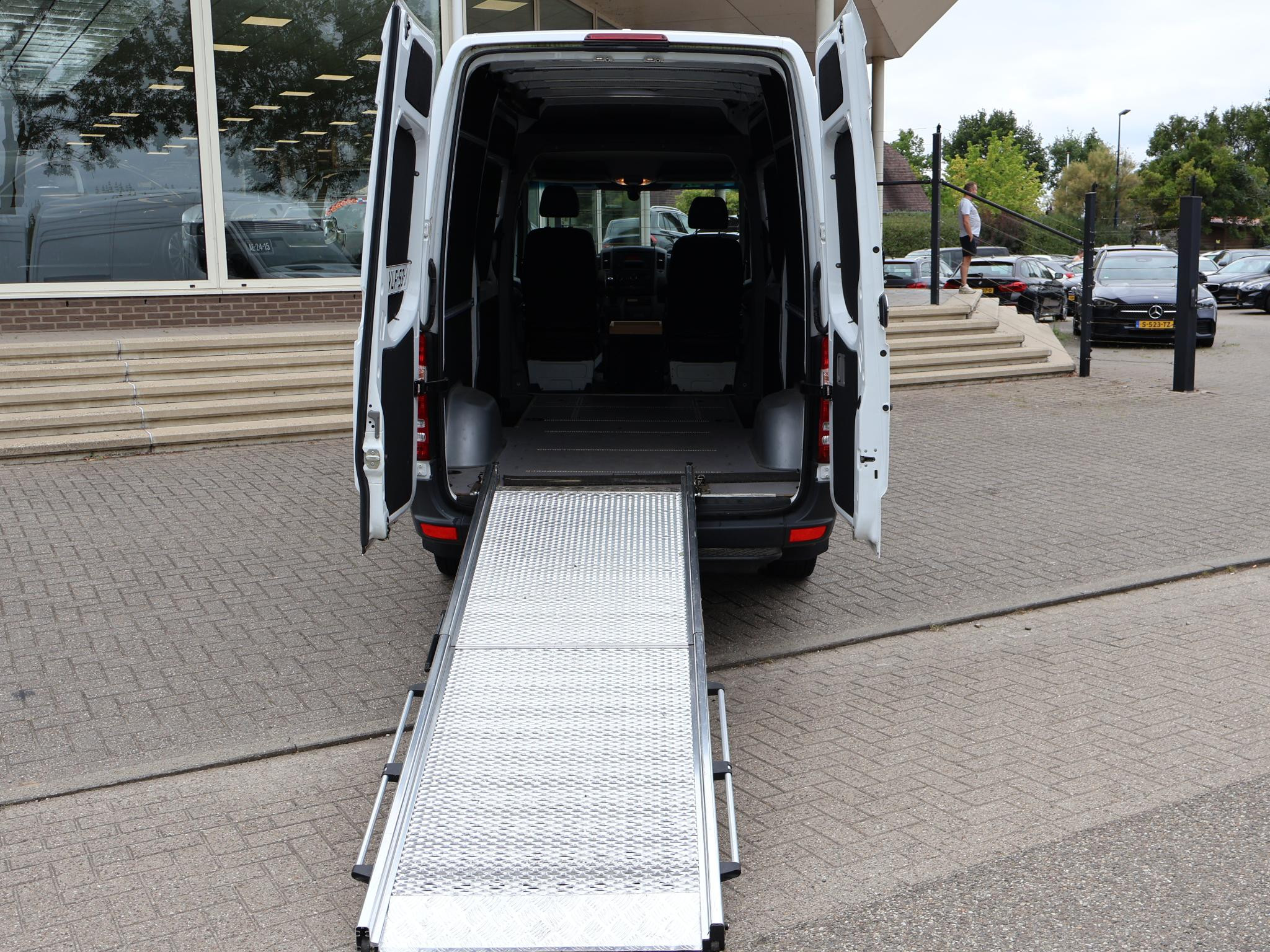Mercedes Sprinter 316 2.2 163 PK Automaat, Achterwiel aangedreven, 2 Schuifdeuren, Oprijplaat, Trekhaak, Cruise control, Airco, Voorbereiding voor stoelverwarming (werkt niet), Elektrische ramen, Tachograaf. Prijs is exclusief BTW.