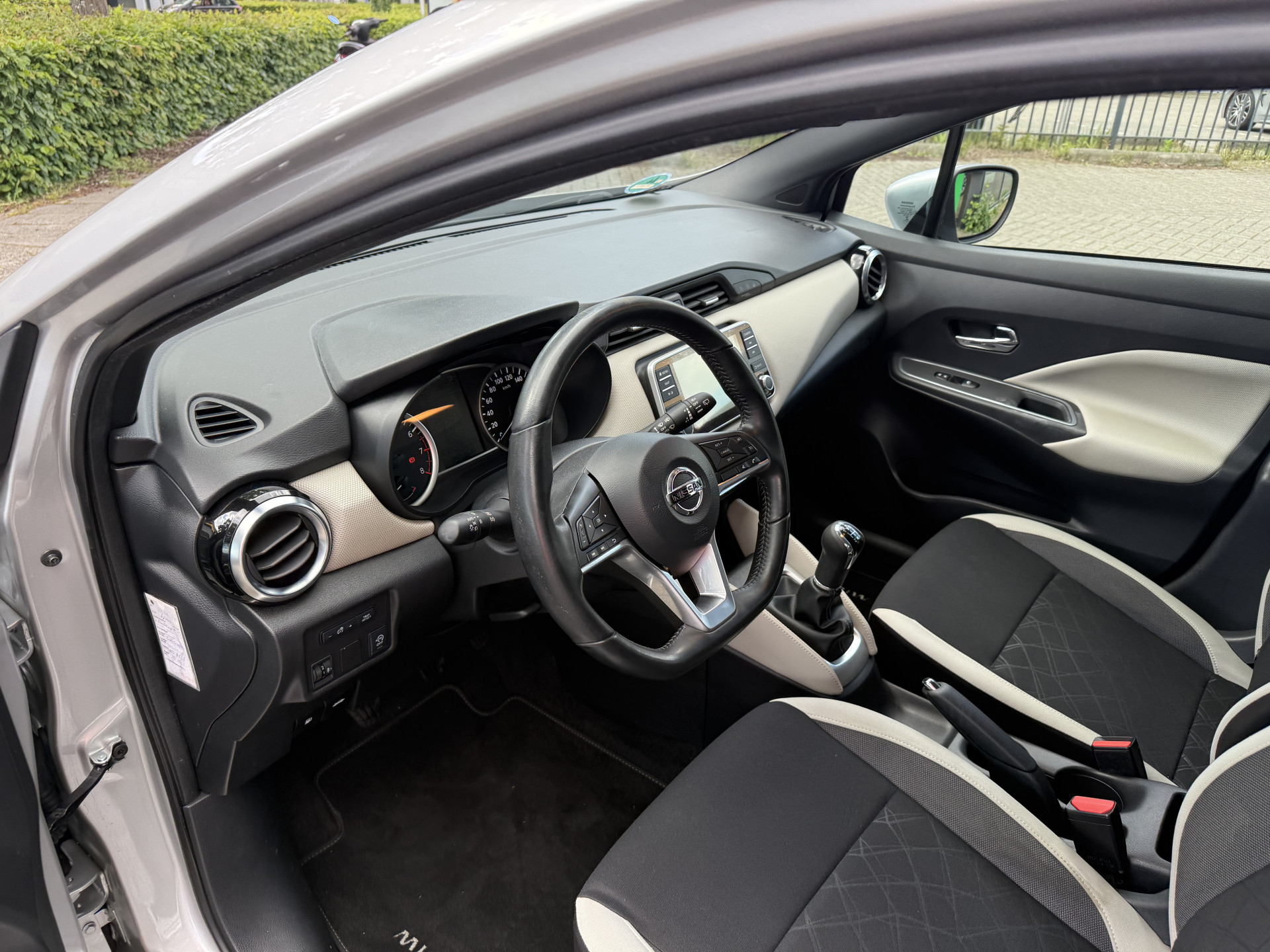 Onder alle omstandigheden perfect zicht op wat zich achter de auto afspeelt: de achteruitrijcamera zorgt ervoor! Met de routebegeleiding van het navigatiesysteem kunt u zich volledig op het verkeer concentreren. Ook over uw schouder ziet u onderweg niet alles wat er aan de achterzijde gebeurt. Daarom heeft deze Nissan Micra een achteropkomend verkeer waarschuwing. Ook lekker handig is de audiobediening op het stuur. Geniet van een ruime selectie digitale radiostations met de DAB-ontvanger. Ook is de Nissan uitgerust met: cruise control, airconditioning, lederen stuur, isofix-aansluiting, usb-aansluiting en aux ingang en centrale deurvergrendeling met afstandsbediening.