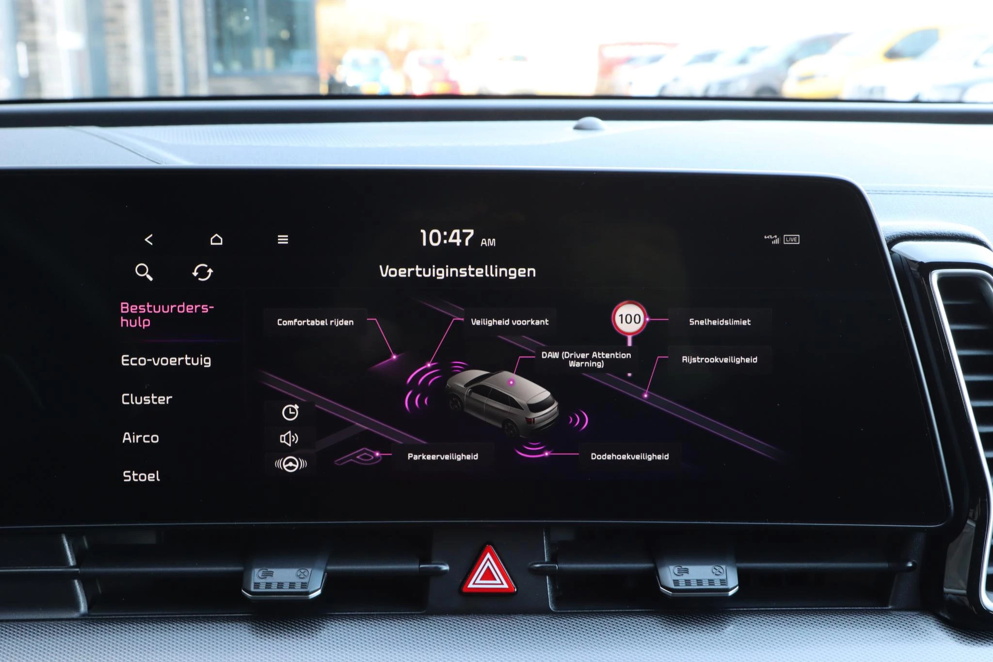 De Kia Sportage is ook voorzien van ADAS. Deze Advanced Driver Assistence Systems fungeren als extra ogen en oren: ze houden voor u de weg in de gaten en grijpen in wanneer dat nodig is. Ongemerkt buiten de rijstrook raken? Nee hoor, het Lane-keeping systeem waarschuwt en corrigeert. Deze auto heeft actieve dodehoekdetectie. Dit veiligheidssysteem helpt u om aanrijdingen te voorkomen. Het forward collision warning-systeem berekent via een sensor de afstand tot het verkeer vóór u en komt in actie als er gevaar bestaat van een botsing. Met voorzieningen als hill hold functie, vermoeidheidsherkenning, autonoom remsysteem en bandenspanningcontrolesysteem, bent u altijd veilig onderweg.