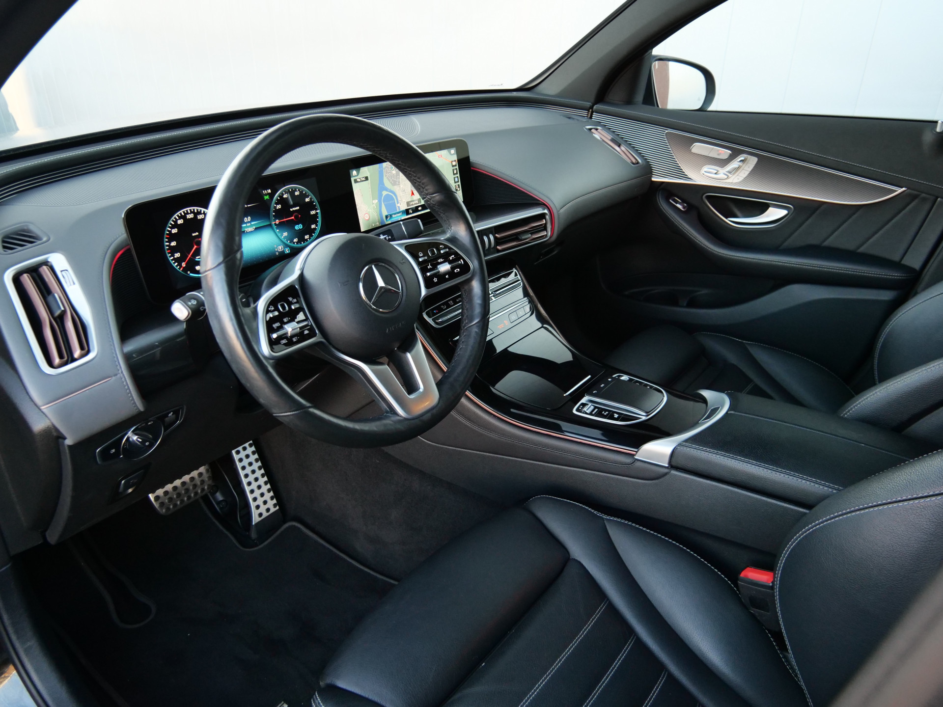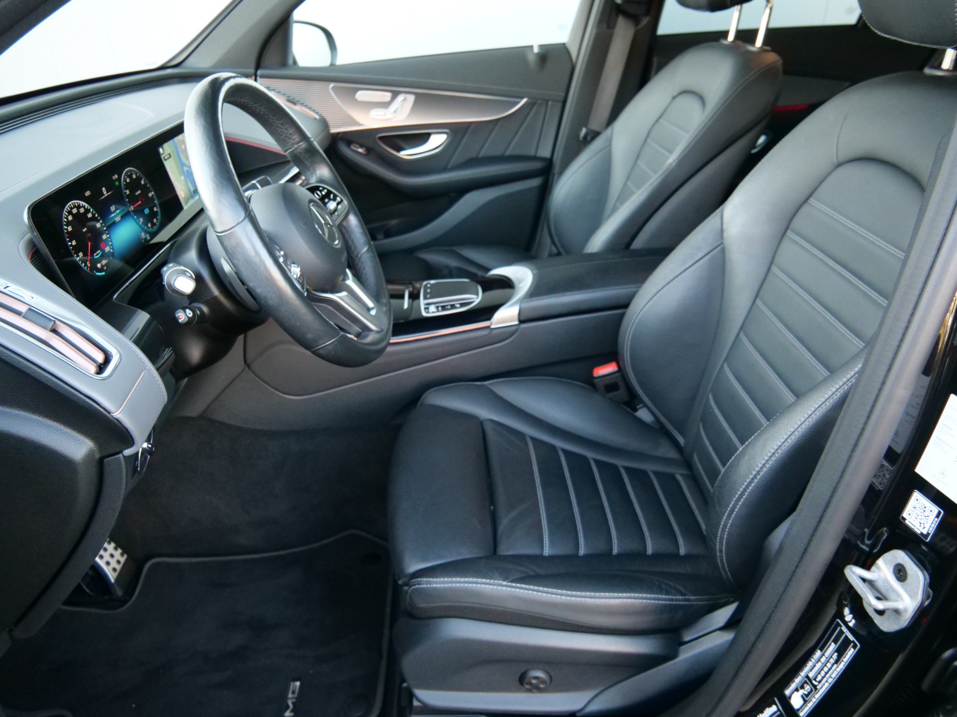 Wekt u zelf stroom op of kiest u voor een openbaar laadpunt? Met de Mercedes-Benz EQC kunt u overal terecht. Zo wordt elektrisch rijden wel heel erg aantrekkelijk! De elektromotor laat u geluidloos over de weg gaan. Wat een verademing, en zoveel power ook nog! Met de kenmerkende AMG-styling toont deze Mercedes-Benz zich van zijn sportieve kant. Een krachtige motor geeft deze auto zijn sportieve prestaties. Laat de zon maar schijnen door het elektrisch bediende glazen panorama dak en hou een handje over dankzij de elektrisch bedienbare achterklep. Niks vergeten? O ja toch: het lederen interieur moeten we zeker even noemen. Zit u goed? De stoelen zijn eenvoudig instelbaar dankzij de elektrische bediening met geheugen. De koplampen zijn voorzien van de allernieuwste lichttechnologie: matrix LED-verlichting. Ook 21 inch lichtmetalen velgen, AMG-styling, warmtewerend glas, in delen neerklapbare achterbank, LED-achterlichten en verstelbare lendensteunen horen tot de voorzieningen op deze auto.