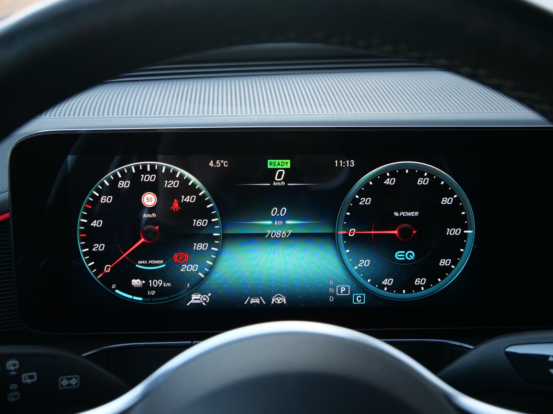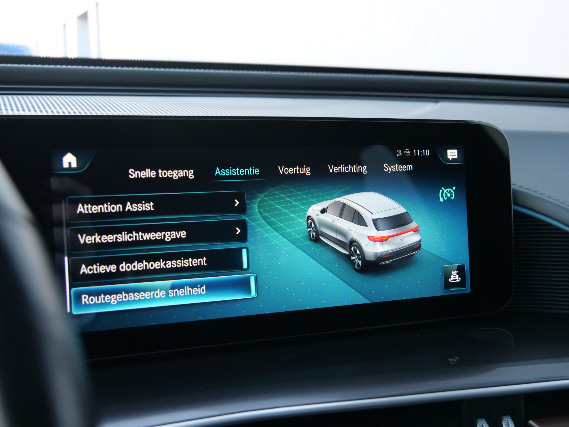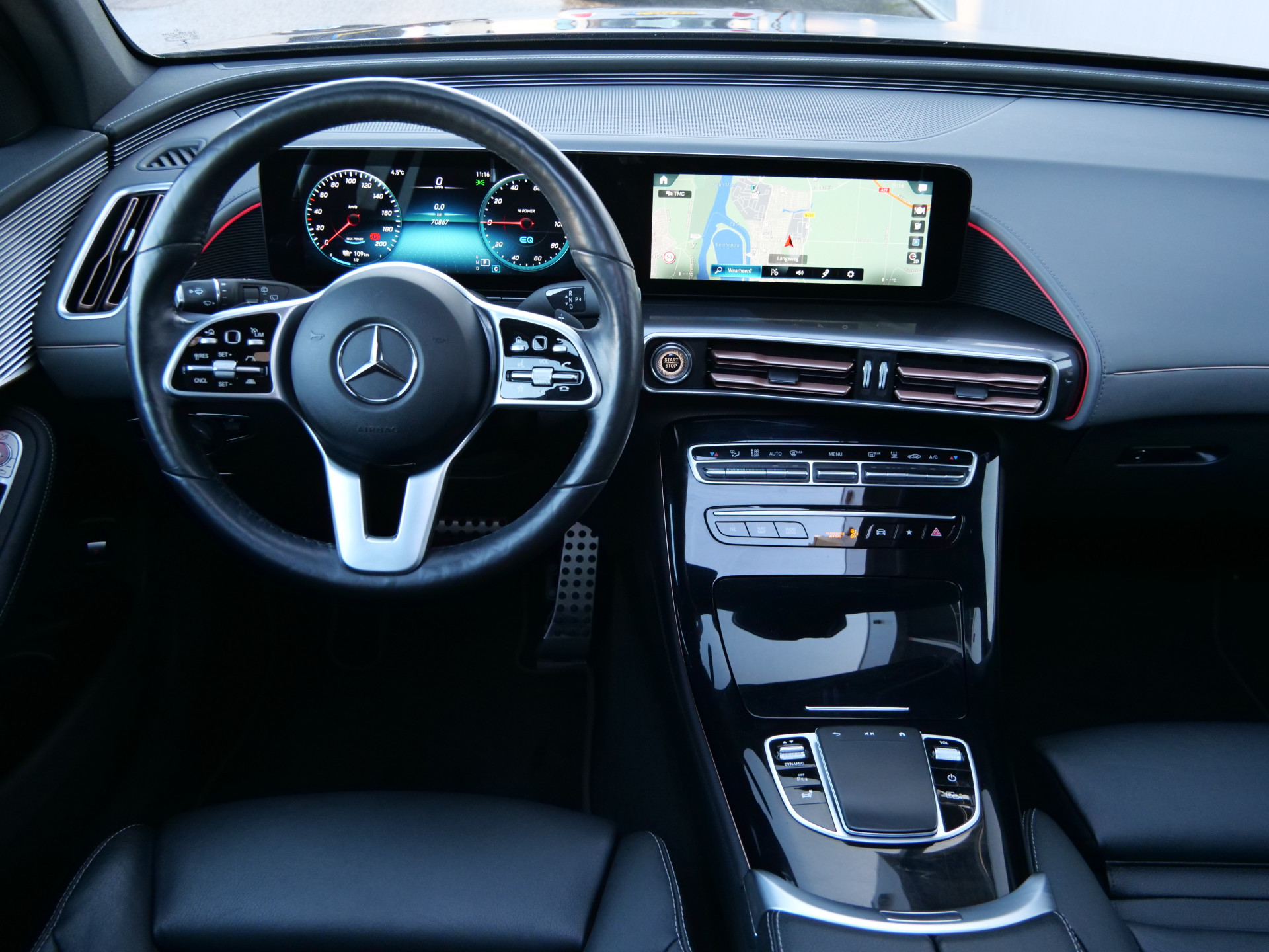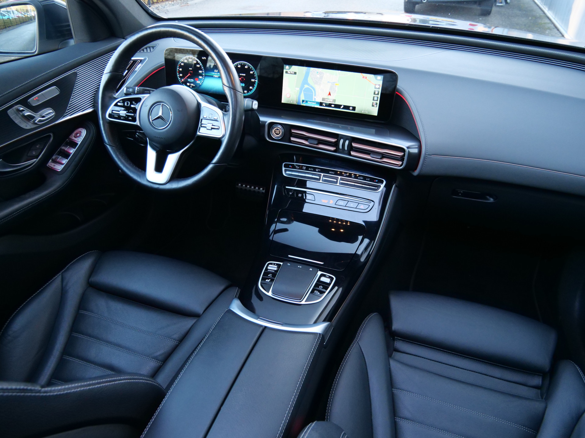 Over het digitale dashboard is goed nagedacht. Alle belangrijke functies binnen en buiten in één oogopslag. De 360 graden camera wordt mogelijk gemaakt door vier camera's die tezamen werken om zo een uitgebreid zicht te bieden, wat van grote waarde is bij het navigeren door smalle straatjes en parkeerplekken. Adaptive cruise control houdt de ingestelde snelheid vast en houdt afstand tot het voertuig voor u. De elektrisch inklapbare trekhaak blijft mooi uit het zicht als u hem niet gebruikt. Deze Mercedes-Benz EQC is 'connected'. Belangrijke functies worden permanent gemeten en zijn uit te lezen via een speciale app, ook op afstand. Deze auto is voorzien van premium audiosysteem, full map navigatiesysteem, automatische airconditioning, schakelpaddles aan het stuur, draadloos opladen en DAB ontvangst.