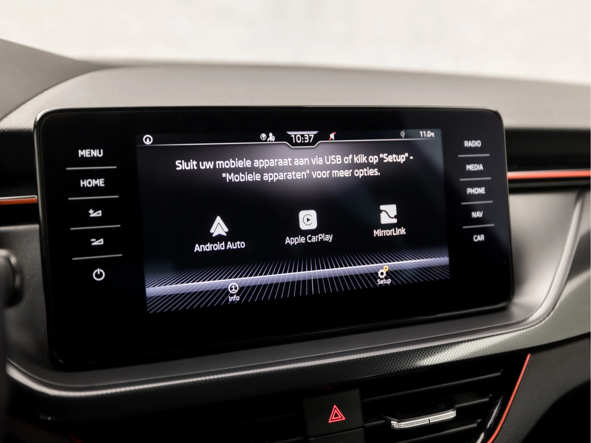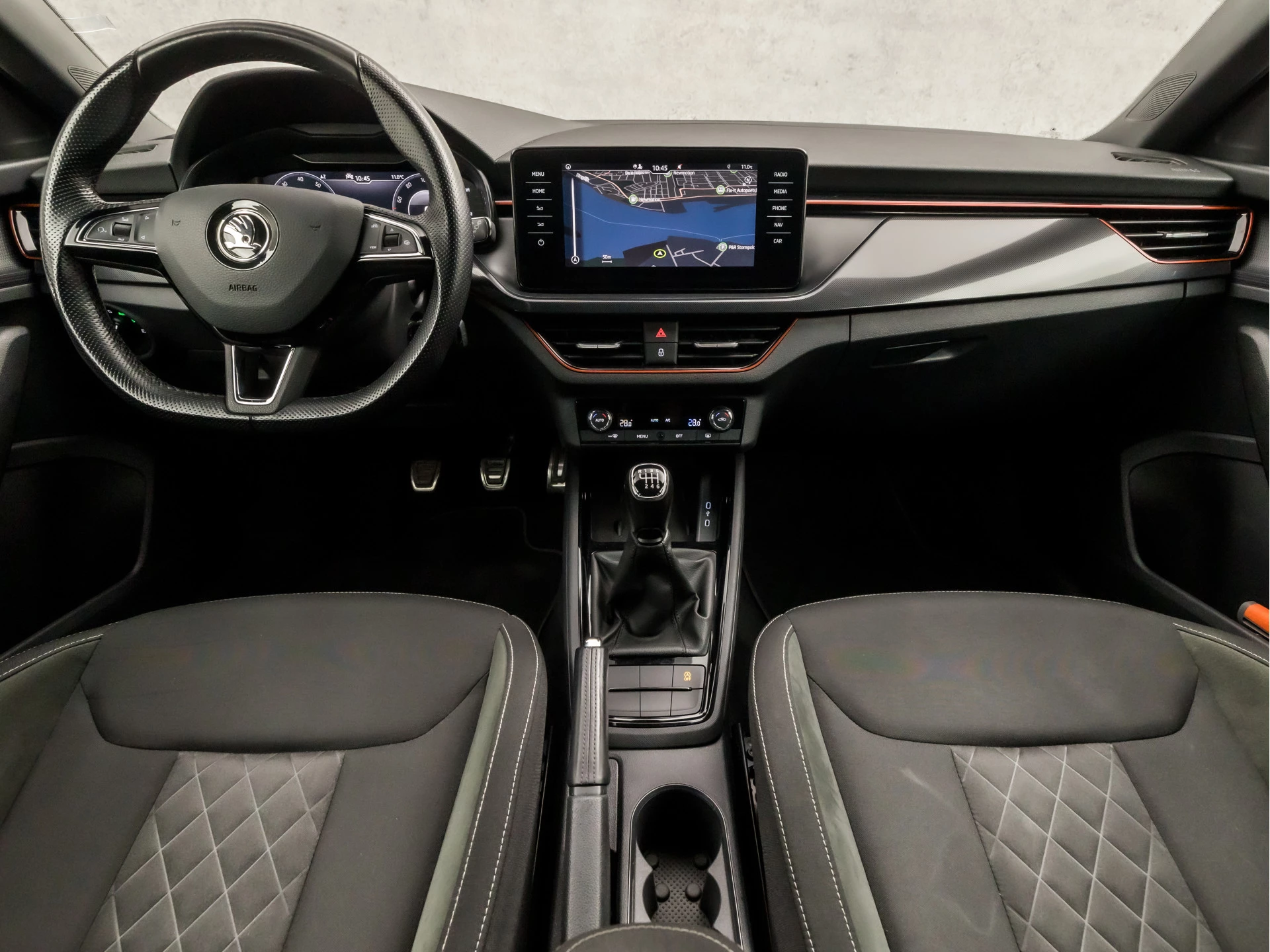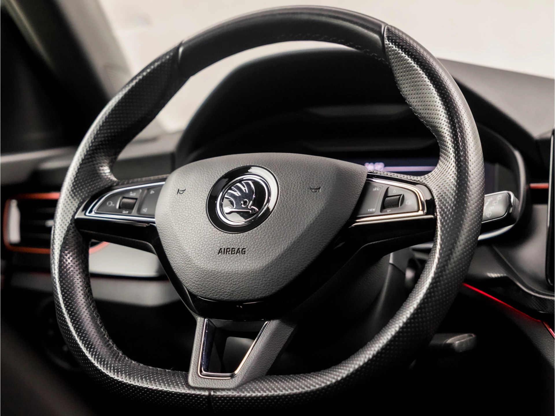 Alle functies voor een veilige en zuinige rit worden overzichtelijk weergegeven op het digitale dashboard. Waar u zelf ook bent, u staat altijd in contact met de auto via de app op uw smartphone. Zo controleert u uiteenlopende functies, ook op afstand. U bedient het navigatiesysteem met harde schijf en het audio-installatiesysteem met DAB-radio via knoppen op het stuur. Zo kunt u steeds uw aandacht gericht houden op de weg. Onderweg uw smartphone opladen zonder gedoe met stekkers en kabels? Dat kan, met de draadloze oplaadmogelijkheid voor telefoons. Tot de standaard uitrusting van deze auto hoort ook automatische airconditioning. De ŠKODA is standaard voorzien van: parkeersensoren achter, cruise control, sportstuurwiel, automatisch dimmende binnenspiegel, isofix-aansluiting en centrale deurvergrendeling met afstandsbediening.