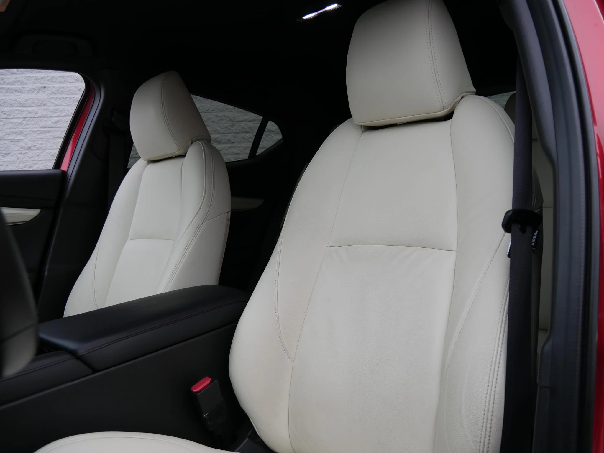 Het uitrustingsniveau van deze Mazda 3 Sportive is dik in orde. Een volledig lederen interieur met zowel stoelverwarming, privacy glass, een BOSE Premium audiosysteem, een Head-Up display, keyless entry/ start. Het is er allemaal.