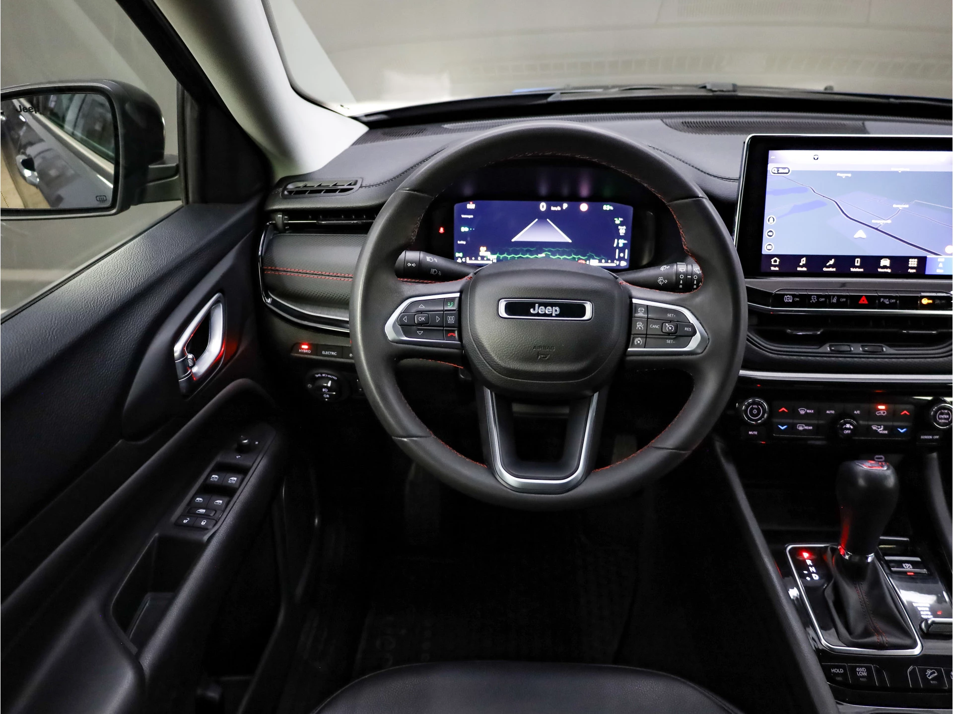Het digitale dashboard geeft alle up-to-date info en functies voor een slimme en veilige rit. Zodra u naar de 'R' schakelt, gaat de achteruitrijcamera in werking en heeft u een perfect zicht op alles wat zich achter de auto afspeelt. Met adaptive cruise control houdt deze auto automatisch afstand tot uw voorligger. Spraakbediening herkent uw stem en voert opdrachten uit terwijl u beide handen aan het stuur houdt. De ingebouwde Connected Services vertellen u via de app alles over de status van de auto. Locatie, onderhoudsstatus, brandstofpeil en nog veel meer! De uitrusting van deze Jeep is met full map navigatiesysteem, automatische airconditioning, draadloos opladen, DAB ontvangst, regensensor en keyless entry behoorlijk compleet.