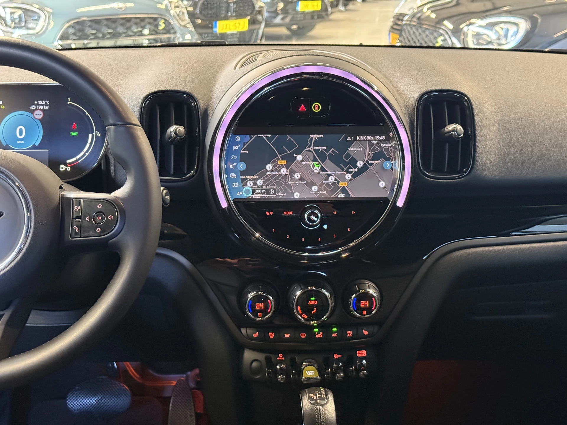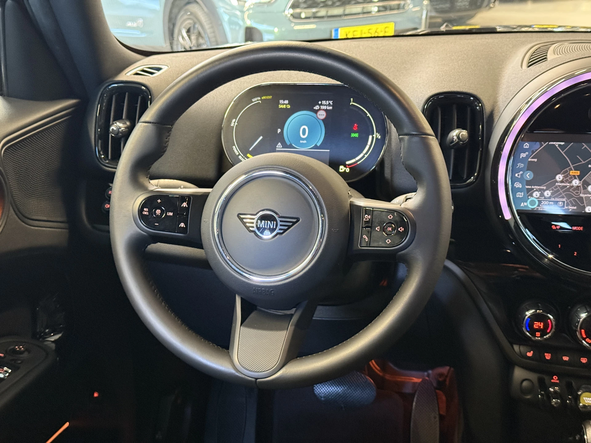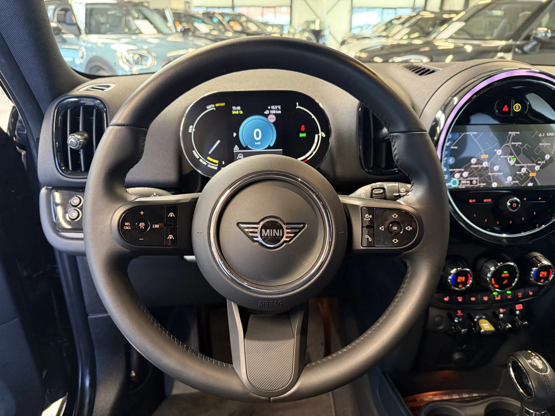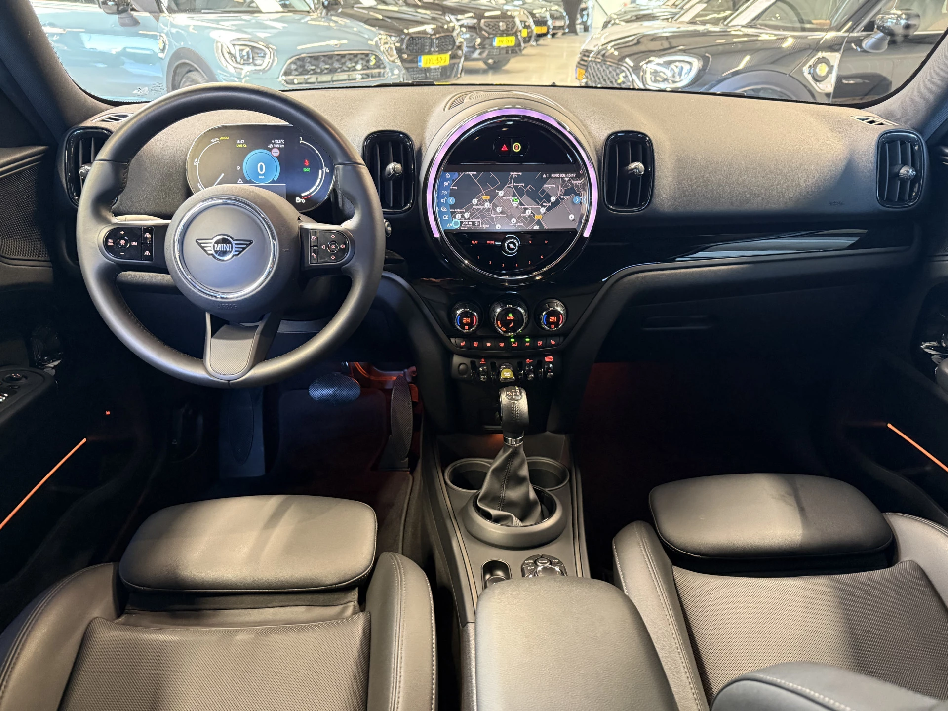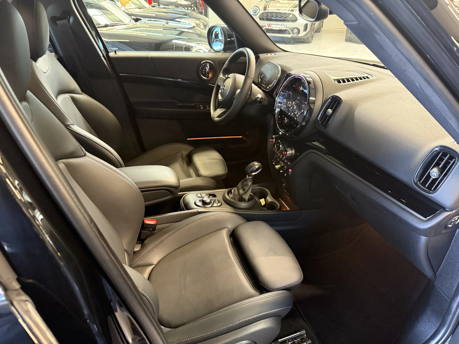Schitterende Mini Countryman 2.0 Cooper SE ALL4 Plug in Hybrid in Midnight Black metallic met hoogglans zwarte 18 inch licht metalen velgen. Deze Mini is bijzonder compleet uitgerust met onder andere de volgende opties: Lederen sport-comfort stoelen elektrisch bedienbaar met memory, stoelverwarming, Apple Carplay, achteruitrijcamera, navigatie, virtuele cockpit, Adaptieve cruise control, keyless entry, parkeersensoren, etc..