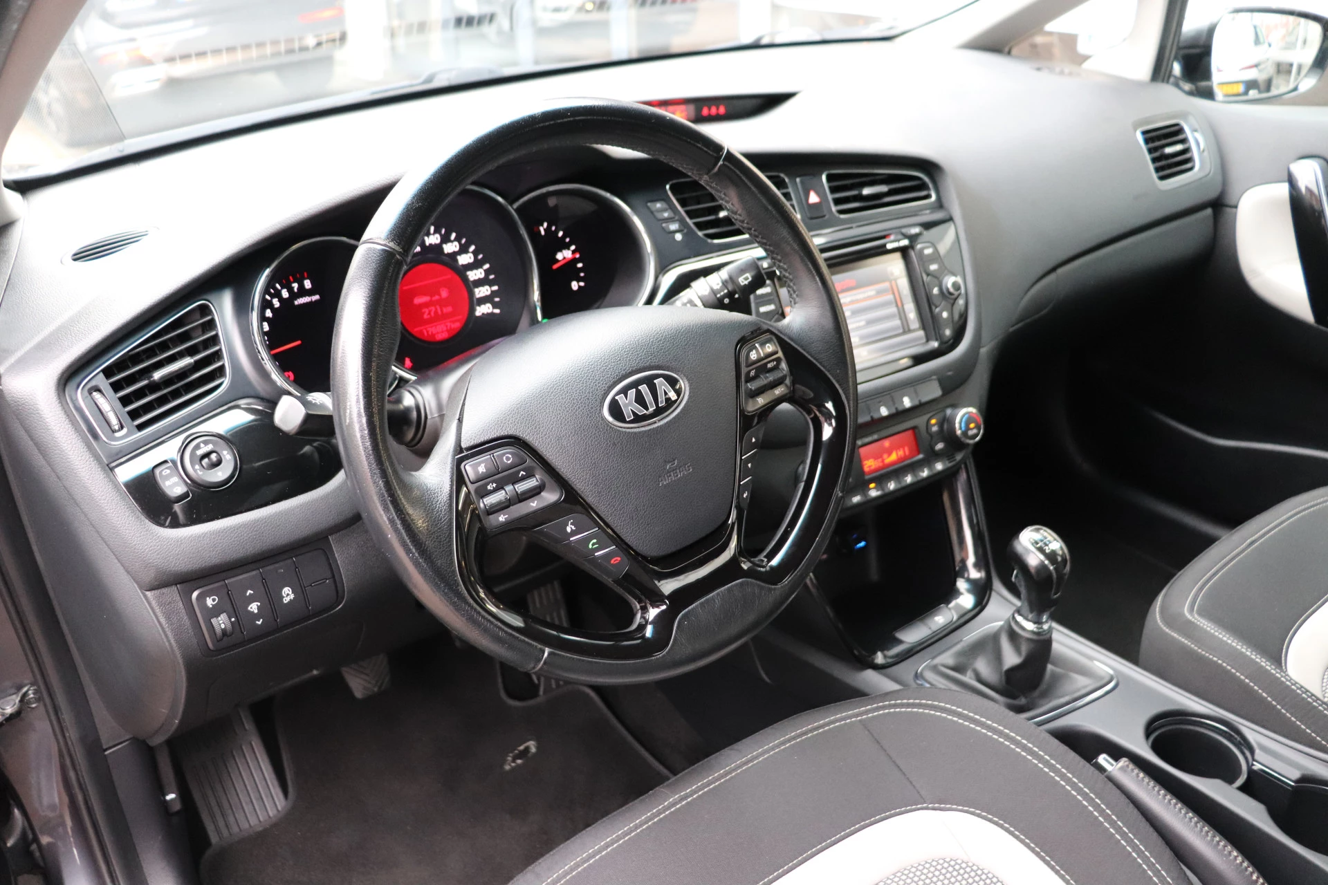 De achteruitrijcamera brengt precies in zicht wat zich achter u bevindt en toont een glashelder beeld op hoge resolutie. Een geluidssignaal waarschuwt hoeveel ruimte u nog heeft. In deze cee'd Sportswagon vindt u schakelaars op het stuur om het audiosysteem te bedienen en het full map navigatiesysteem. Electronic climate control regelt volautomatisch de temperatuur. U kiest de gewenste temperatuur en het systeem doet de rest. Natuurlijk is een complete auto als deze ook voorzien van sensoren die de omgeving in de gaten houden. Deze Kia heeft niet alleen een automatisch inschakelbare verlichting aan boord, maar ook een regensensor. De cruise control heeft een feilloos geheugen. Als u even vaart heeft geminderd, bent u na één klik weer op de oude snelheid. Met automatisch dimmende binnenspiegel, centrale deurvergrendeling met afstandsbediening en verstelbaar stuur is deze auto helemaal compleet.