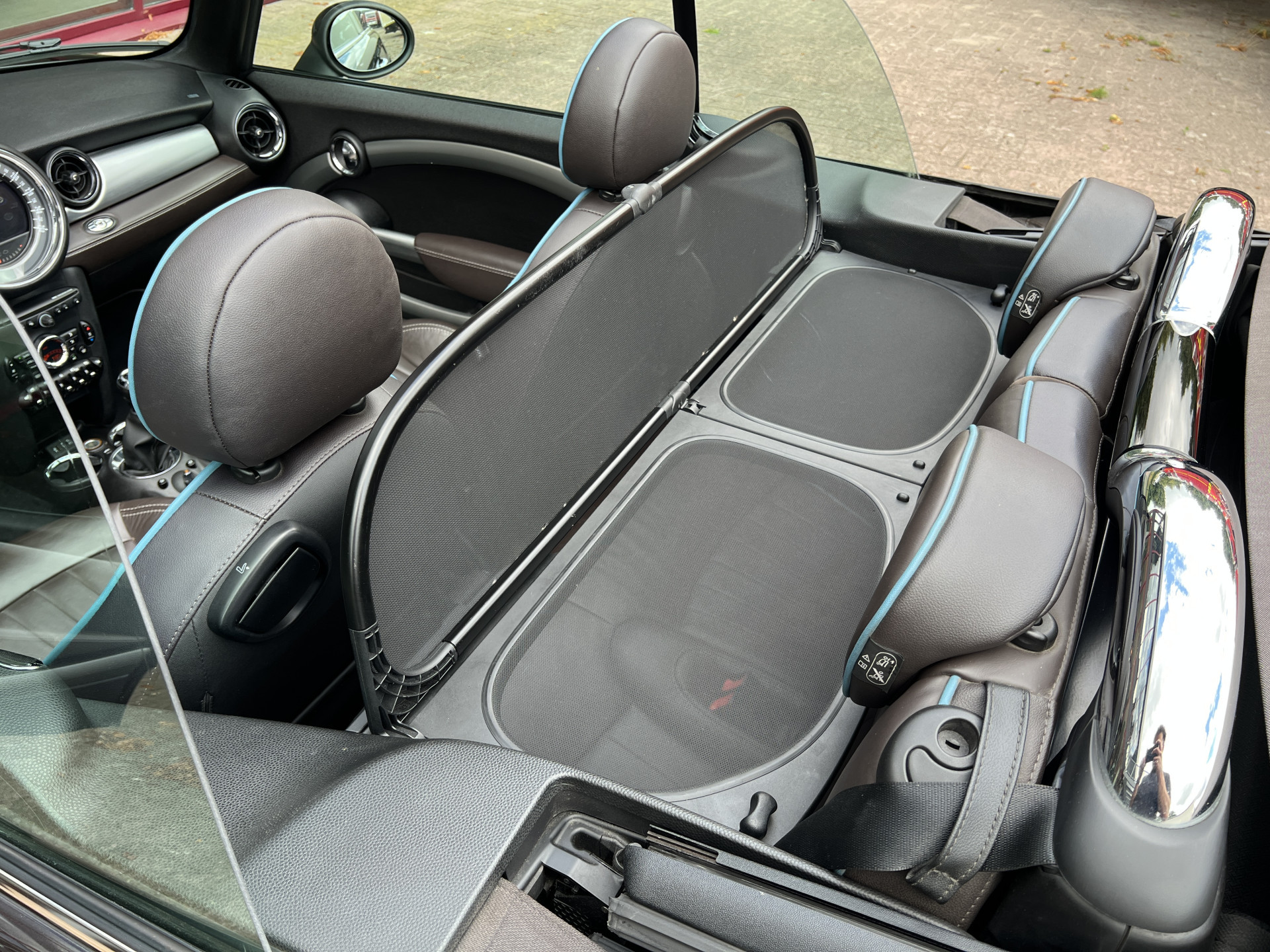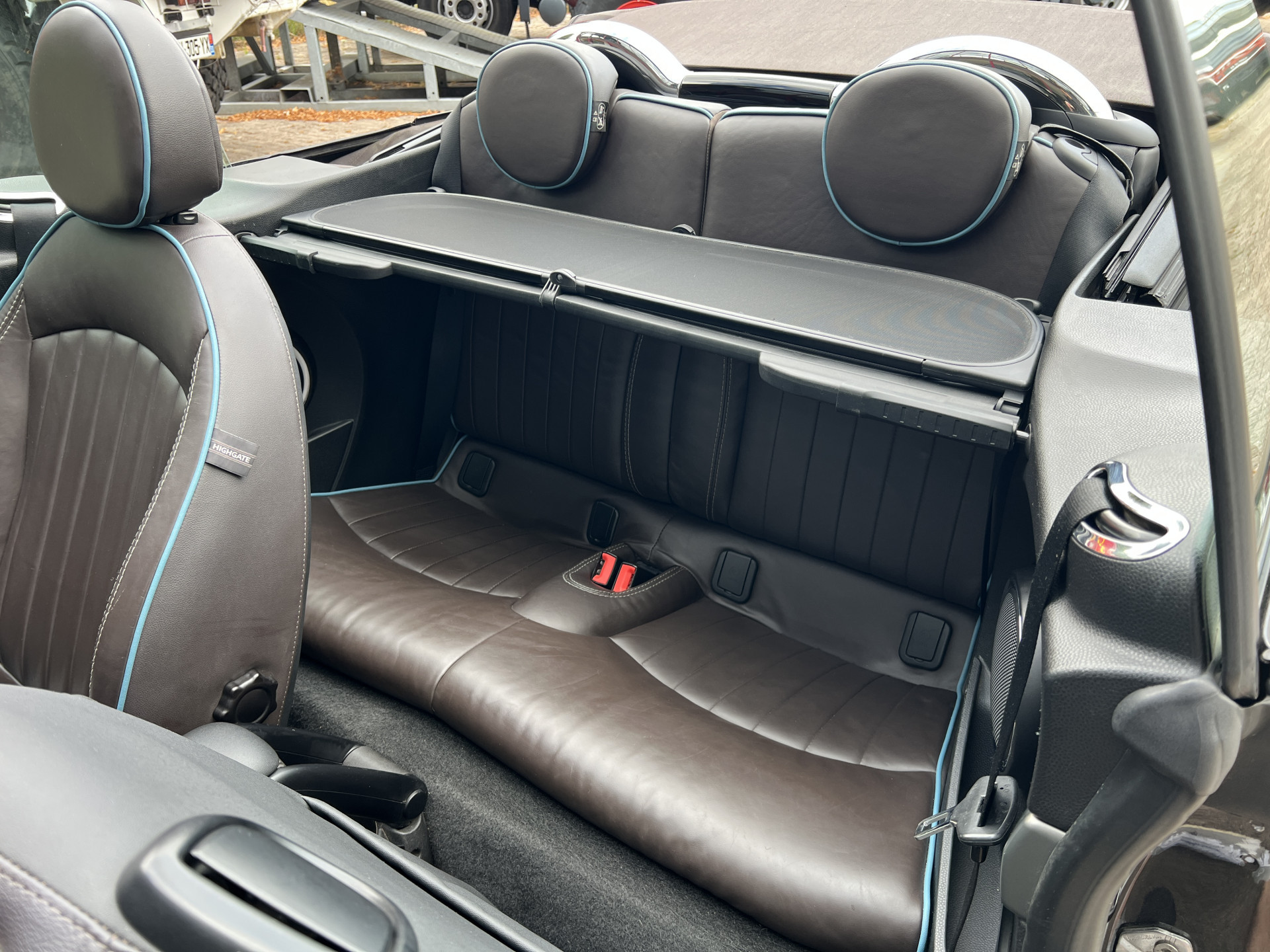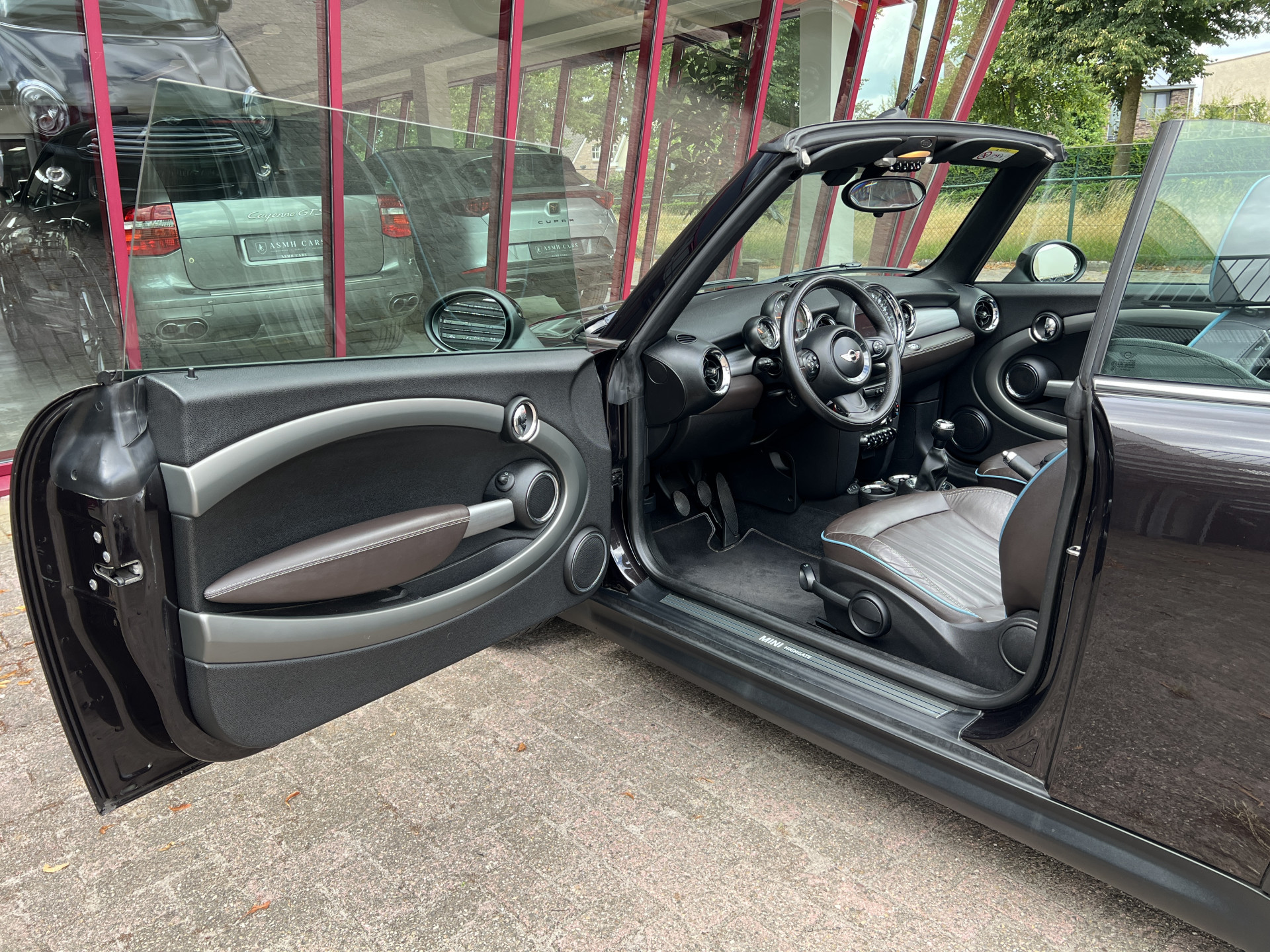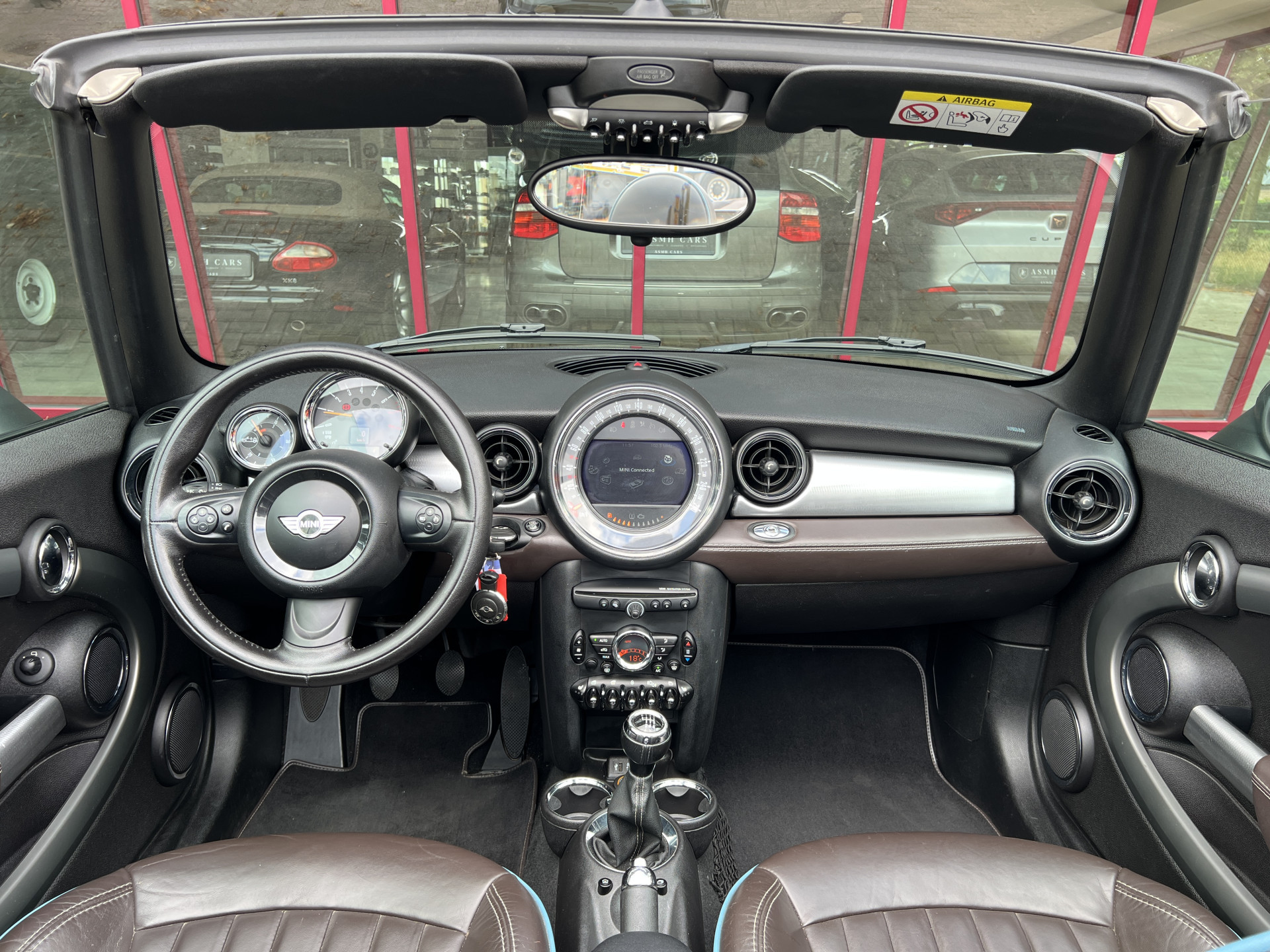 Super leuke Mini Cooper Cabrio in de exclusieve Highgate uitvoering met een mooie kleurstelling van Iced Chocolate metallic lak met een Dark Truffle lederen interieur.