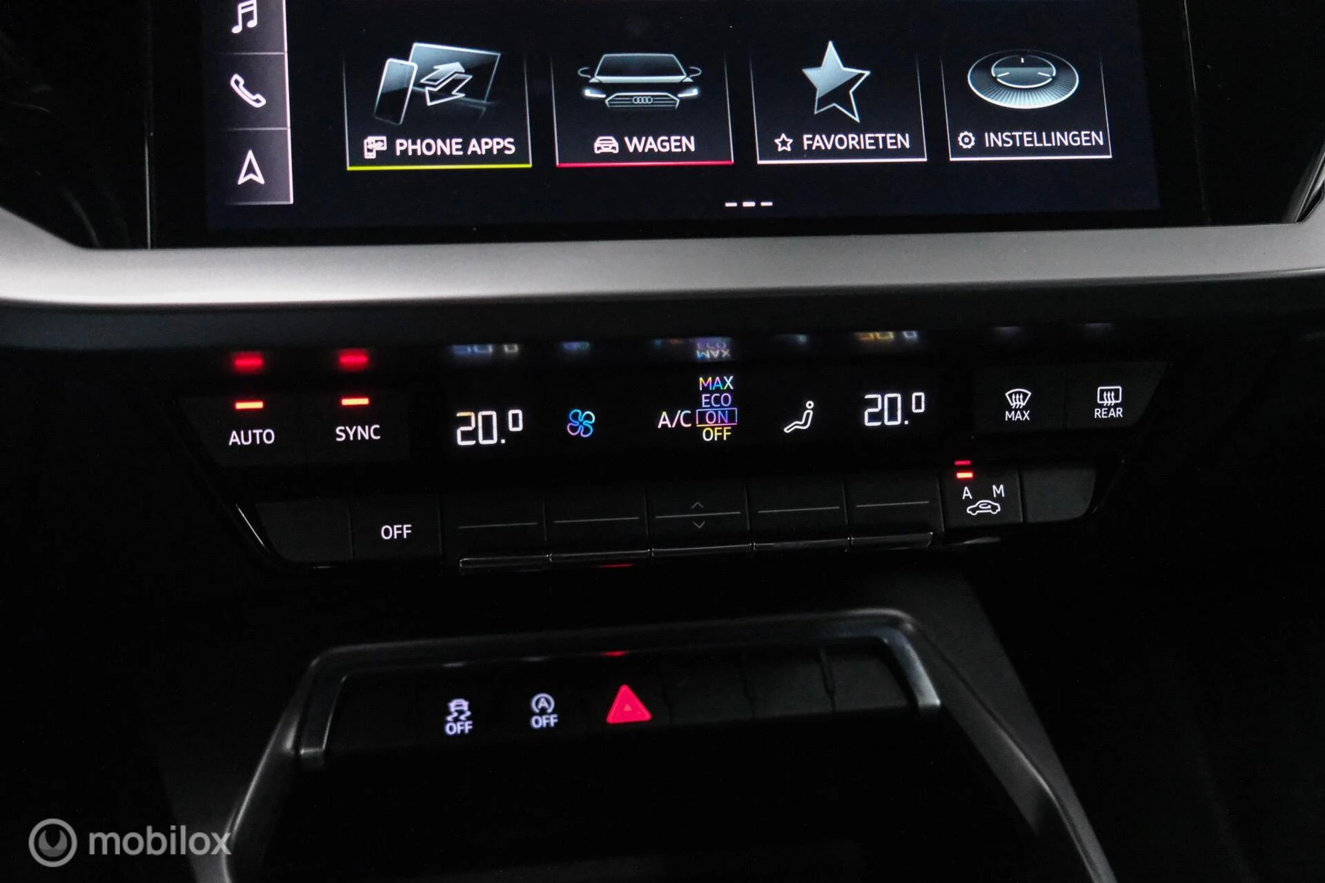 De nieuwste veiligheidssystemen komen in deze Audi A3 Sportback samen. In het instrumentarium laat de verkeersborddetectie de actuele verkeersborden zien. Het Lane-keeping systeem let constant op en waarschuwt of corrigeert als u onoplettend over de lijnen van de rijstrook gaat. De Brake Assist haalt het maximum uit de remkracht van deze Audi A3 Sportback als zich een noodsituatie voordoet.