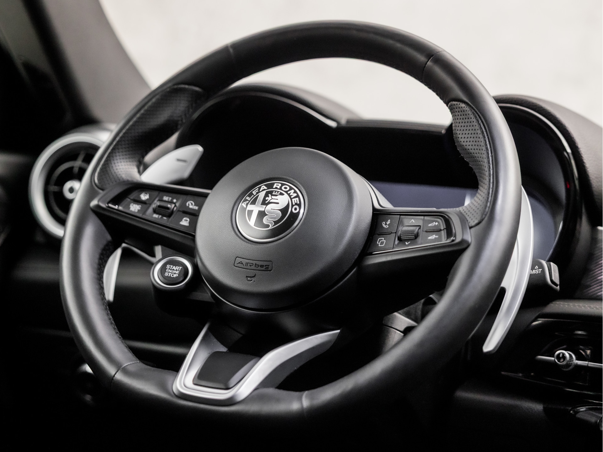 Het rijden met deze Alfa Romeo wordt nog meer ontspannen dankzij de innovatieve technieken die onderweg over uw veiligheid waken. De camera van de verkeersborddetectie herkent verschillende soorten verkeersborden en toont deze op het dashboard. Met het Lane-keeping systeem gaat u nooit onbedoeld over de streep. Forward collision warning is een automatisch waarschuwingssysteem dat direct in werking treedt bij gevaar voor een kop-staartbotsing. In deze Alfa Romeo vinden we verder een vermoeidheidsherkenning, autonoom remsysteem en bandenspanningcontrolesysteem.