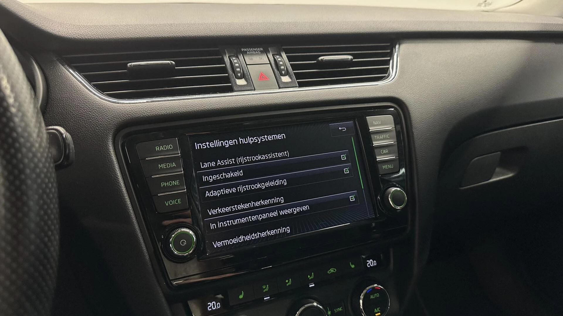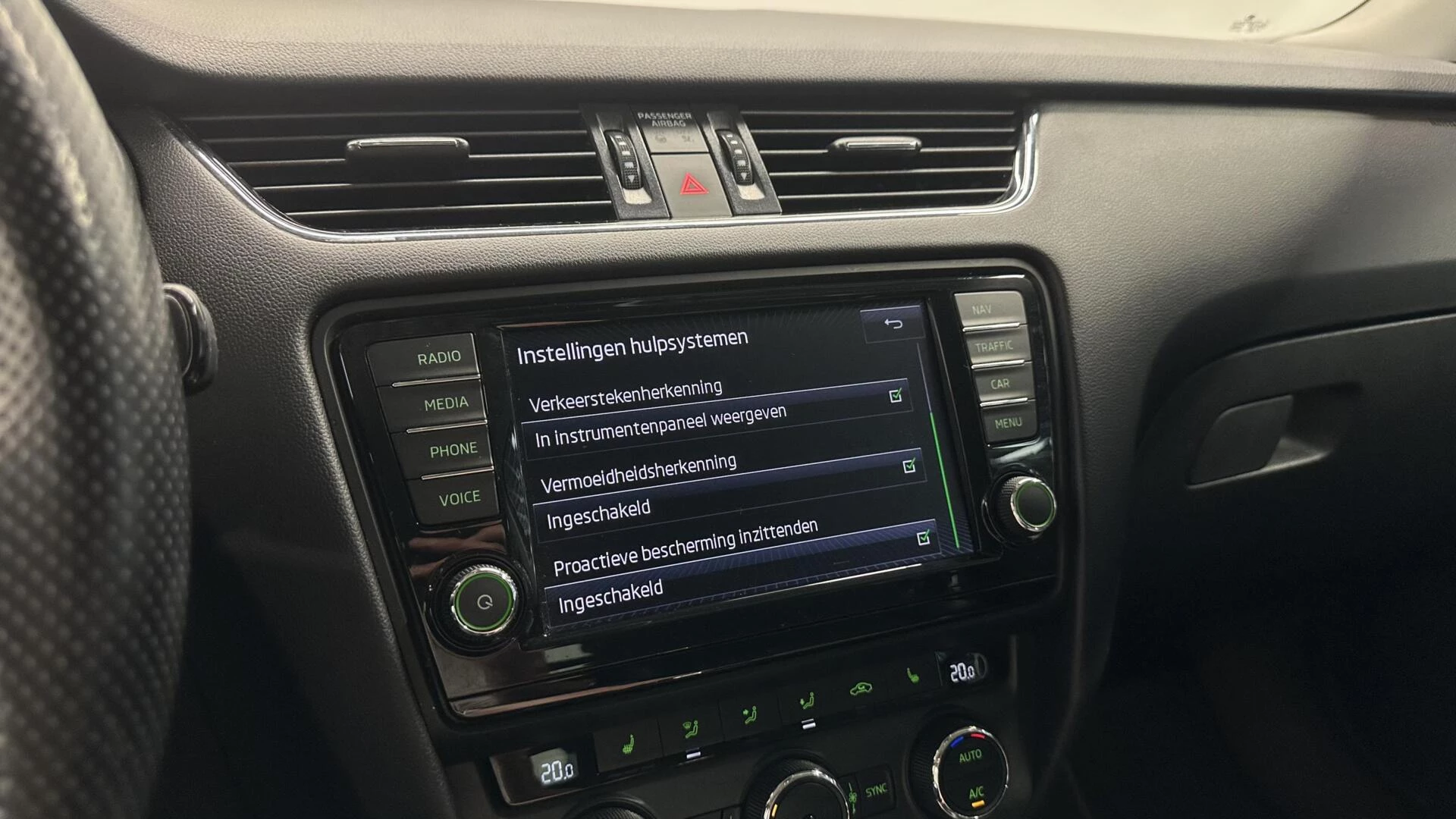 In de Skoda Octavia Combi heeft uw veiligheid en die van uw omgeving prioriteit. In het instrumentarium laat de verkeersborddetectie de actuele verkeersborden zien. Indien u onbedoeld de rijstrook lijkt te verlaten, reageert het Lane-keeping systeem meteen en corrigeert. Op lange ritten voorkomt de vermoeidheidsassistent dat uw concentratie afneemt.