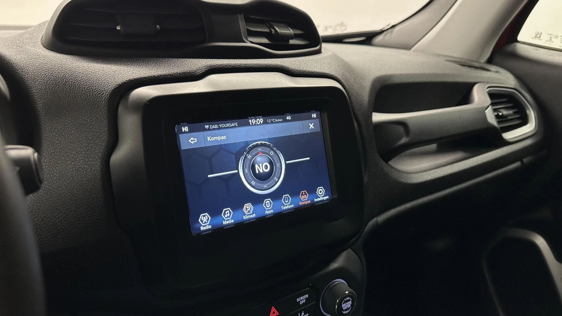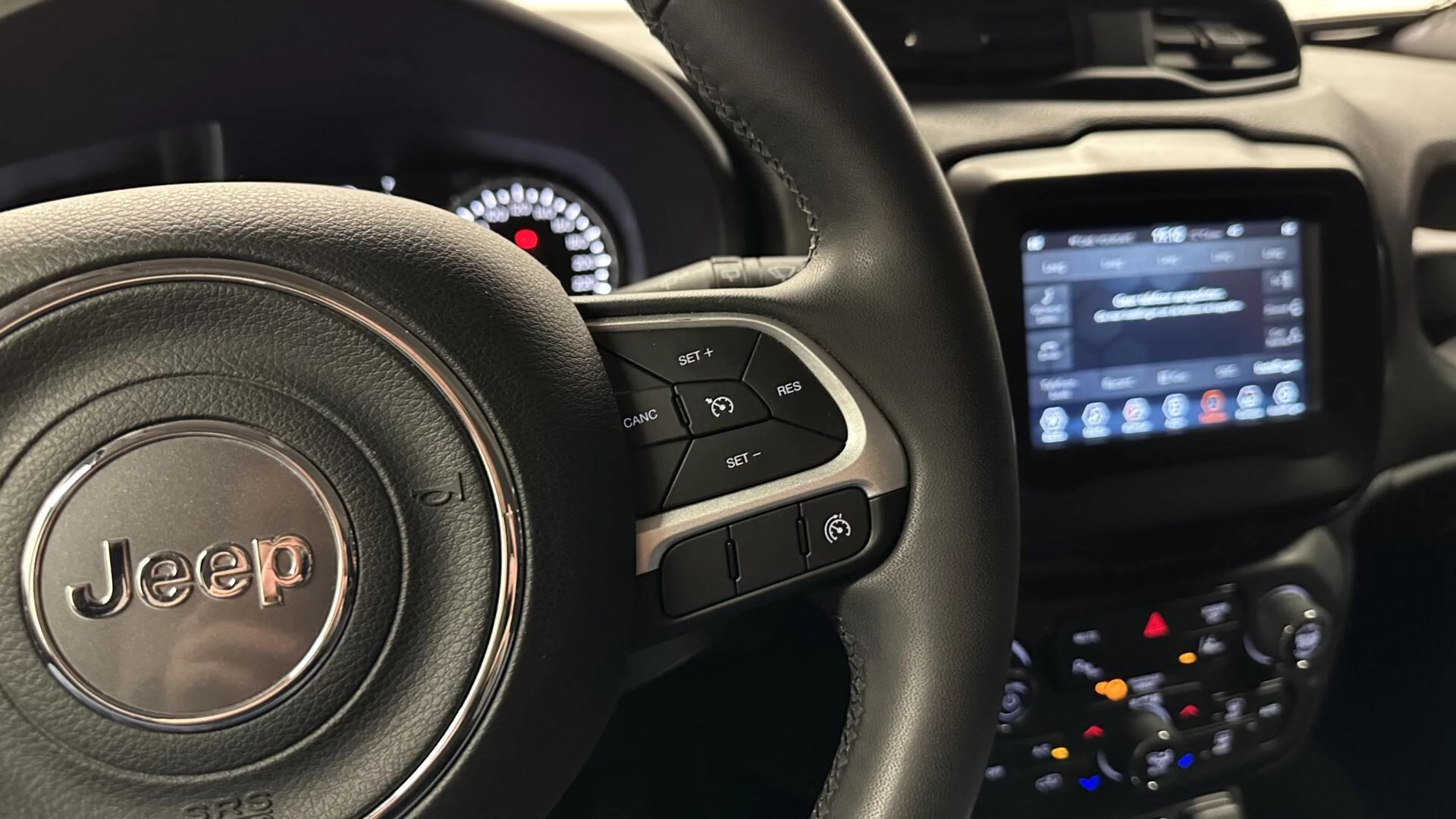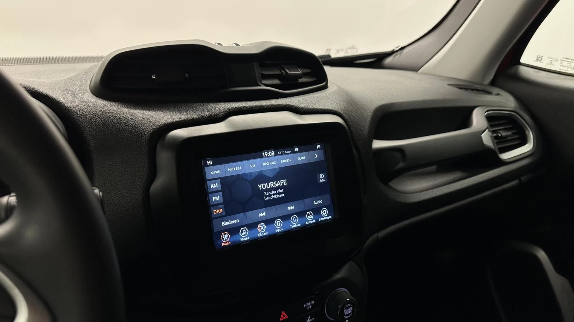 Pragmatisch en veilig als deze auto is, beschikt hij over diverse veiligheidssystemen. Dat de auto steeds meer taken van de bestuurder overneemt, merkt u bijvoorbeeld aan het systeem voor verkeersbord-detectie in deze Jeep. Het Lane-keeping systeem let constant op en waarschuwt of corrigeert als u onoplettend over de lijnen van de rijstrook gaat. Deze Jeep Renegade blijft altijd alert. Zo wordt gebruik gemaakt van forward collision warning. Bij het mogelijke risico op een aanrijding met een voertuig voor u, slaat het systeem alarm. In deze Jeep vinden we verder een autonoom remsysteem en bandenspanningcontrolesysteem.