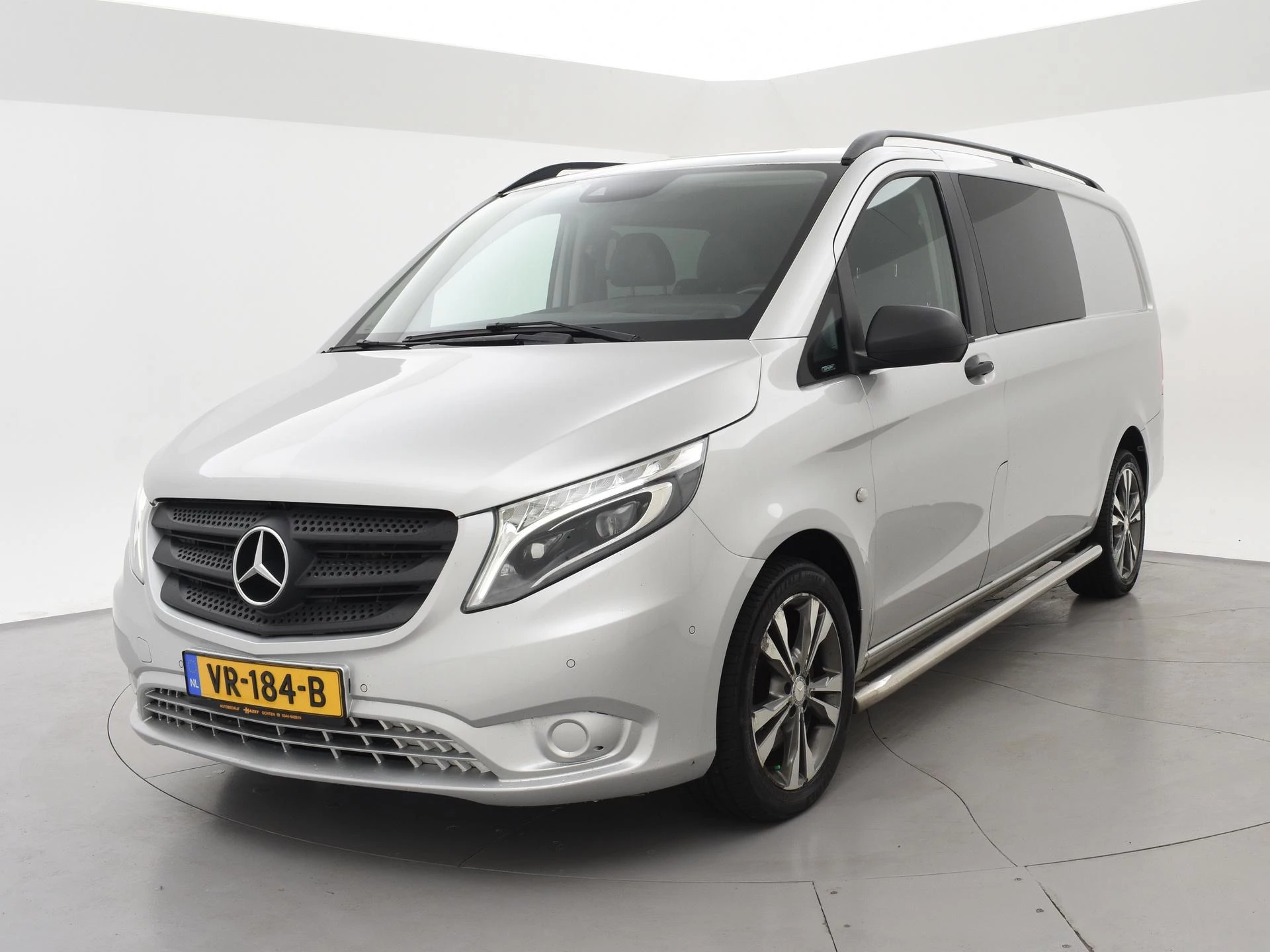 Vito 119 CDI BlueTec 190 PK automaat L2H1 dubbel cabine met 6 zitplaatsen, maar de bijrijdersbank is er later ingebouwd is van kunstleder, terwijl de rest van het interieur van stof is. Er staan ook maar 5 zitplaatsen op kenteken. Luxe achterbank met armleuningen en 3 LED spotjes in de hemel, Zilvergrijs metallic, Draadloze Apple Carplay / Android Auto appstreaming Google Maps, Flitsmeister, Whatsapp, Spotify etc, Full LED Koplampen LED Intelligent Light, LED achterlichten, Climate control met links en rechts gescheiden temperatuur, Achteruitrijcamera, DAB+ Digitale radio, Lichtmetalen velgen, RVS Sidebars, Trekhaak, Cruise control, Privacy glass, Bluetooth met audiostreaming, Prijs is exclusief BTW.