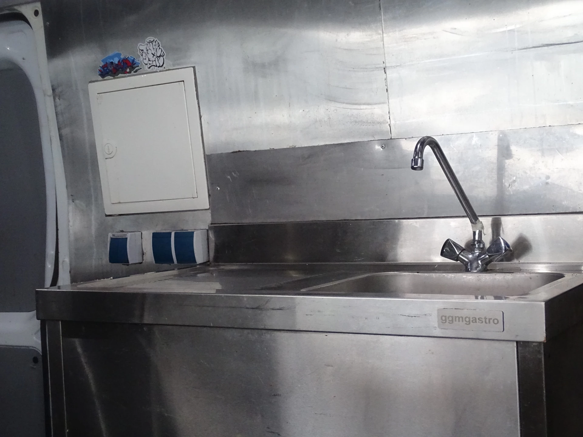 Daarnaast is er een gemeentelijke wateraansluiting aanwezig, zodat de foodtruck voldoet aan de eisen van lokale instanties en direct inzetbaar is voor horeca-activiteiten.