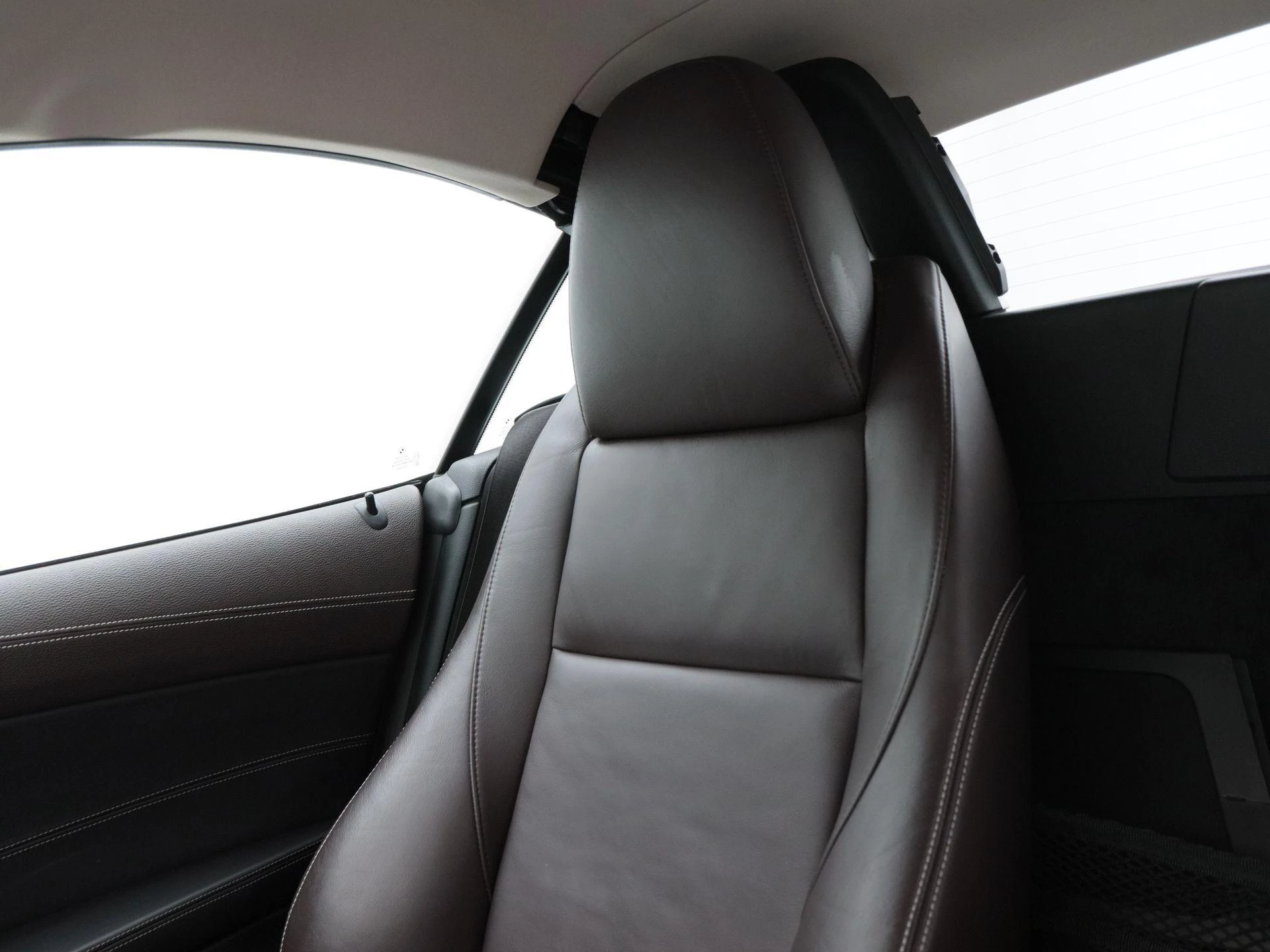 Binnenin word je verwelkomd door een luxe en warme ambiance met een bruin lederen interieur, een lederen stuurwiel en comfortabele stoelen met stoelverwarming. Airconditioning en cruise control zorgen voor extra comfort tijdens langere ritten.