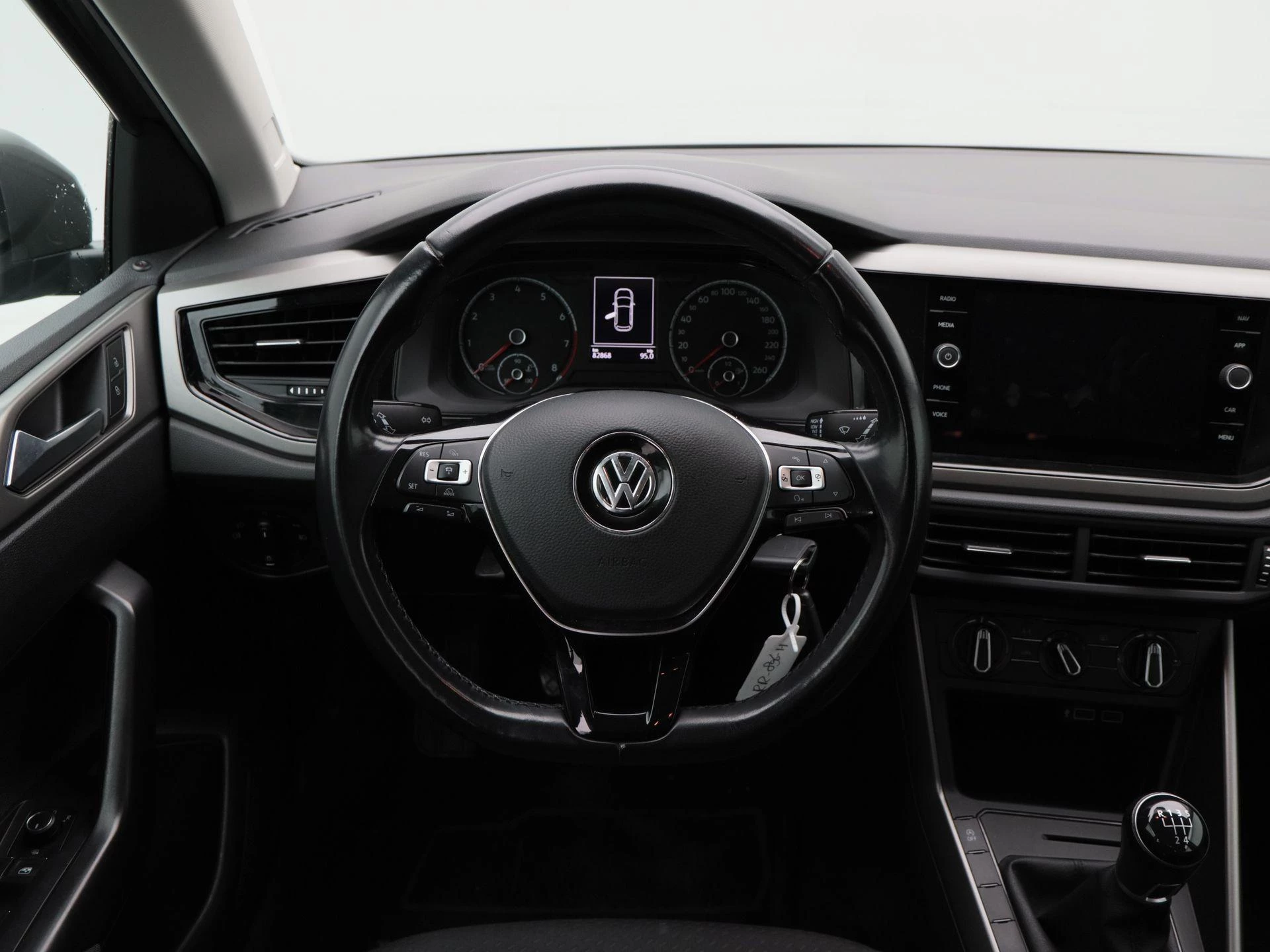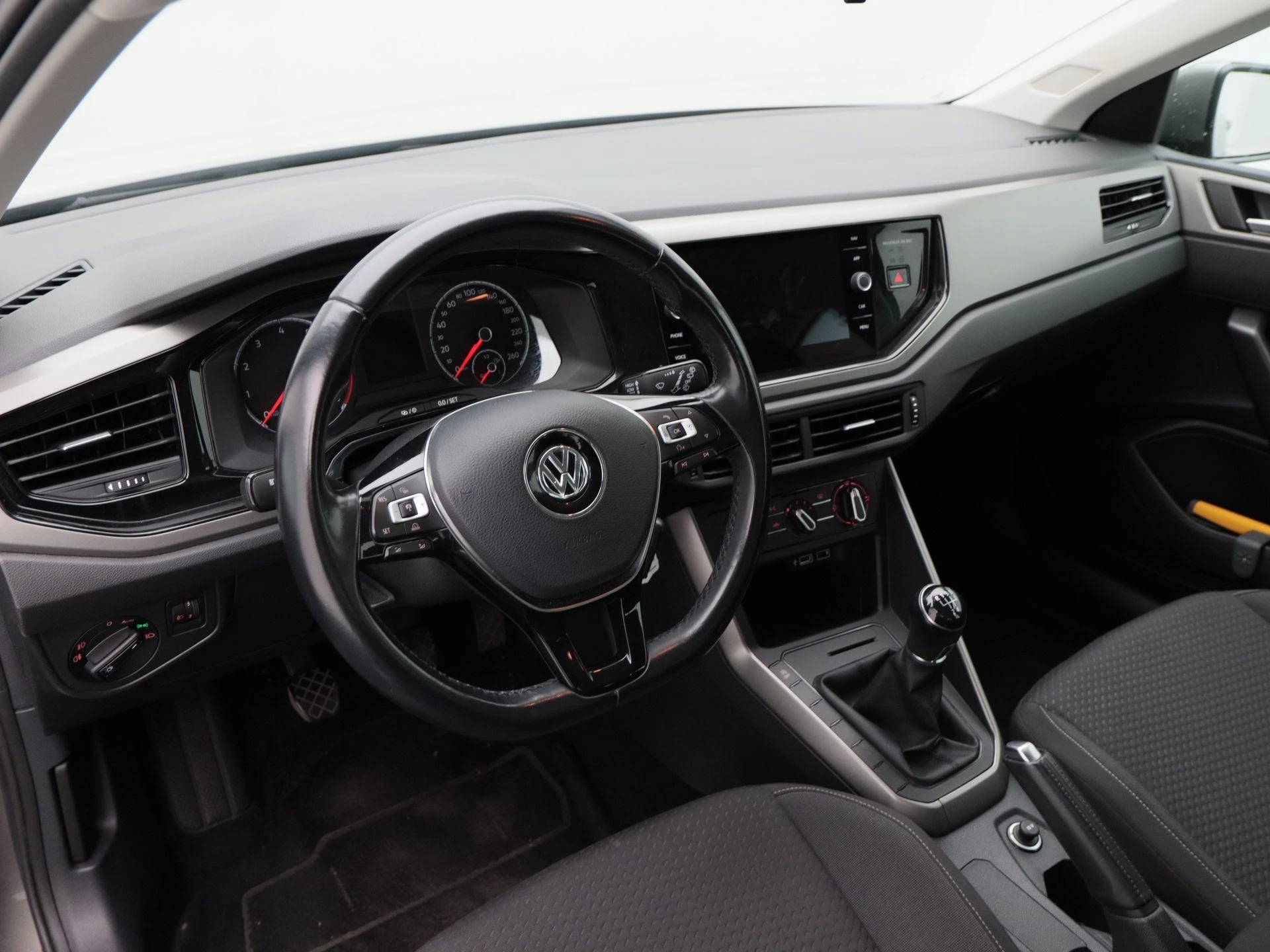 Binnenin biedt de Polo een overzichtelijke en comfortabele rijomgeving. Airconditioning zorgt voor een aangenaam klimaat, terwijl adaptive cruise control het rijden op de snelweg extra ontspannen maakt. Het infotainmentsysteem is modern en gebruiksvriendelijk, met zowel navigatiesysteem als Apple CarPlay voor eenvoudige connectiviteit en routebegeleiding.