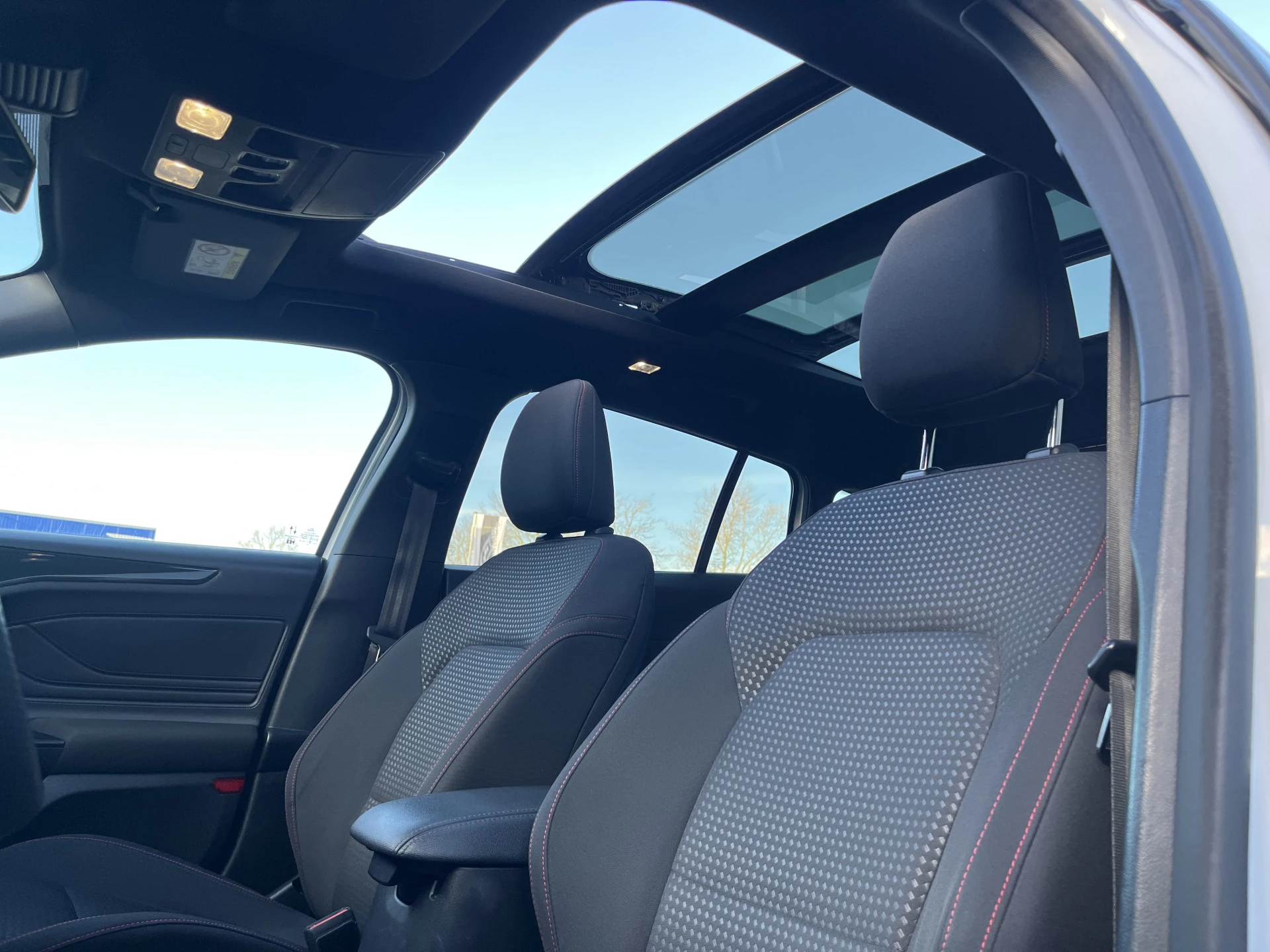 De nieuwste veiligheidssystemen komen in deze Ford Focus Wagon samen. Het Lane-keeping systeem let constant op en waarschuwt of corrigeert als u onoplettend over de lijnen van de rijstrook gaat. In een noodsituatie waarschuwt forward collision warning bij een dreigende aanrijding met een voorligger. In deze Ford vinden we verder een hill hold functie, brake assist en bandenspanningcontrolesysteem.
