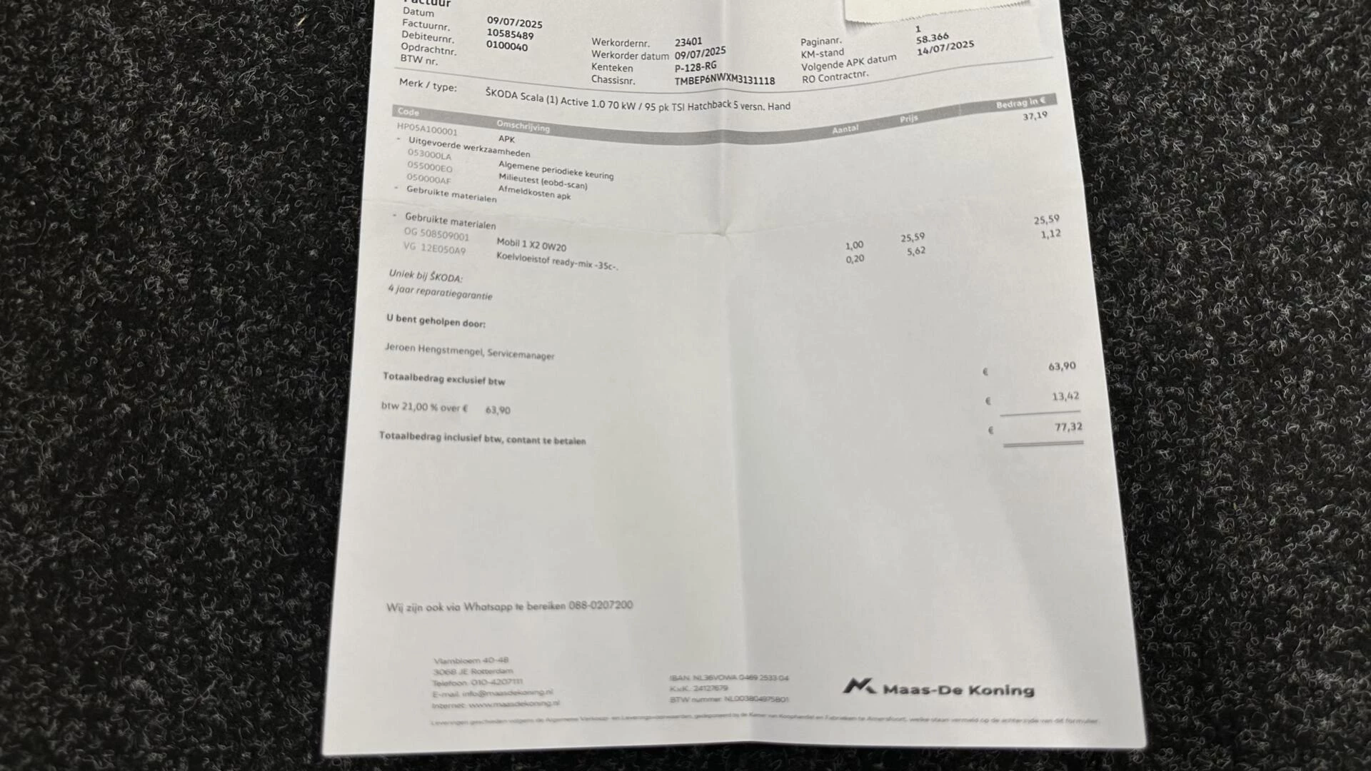Inclusief onderhoudsbeurt.