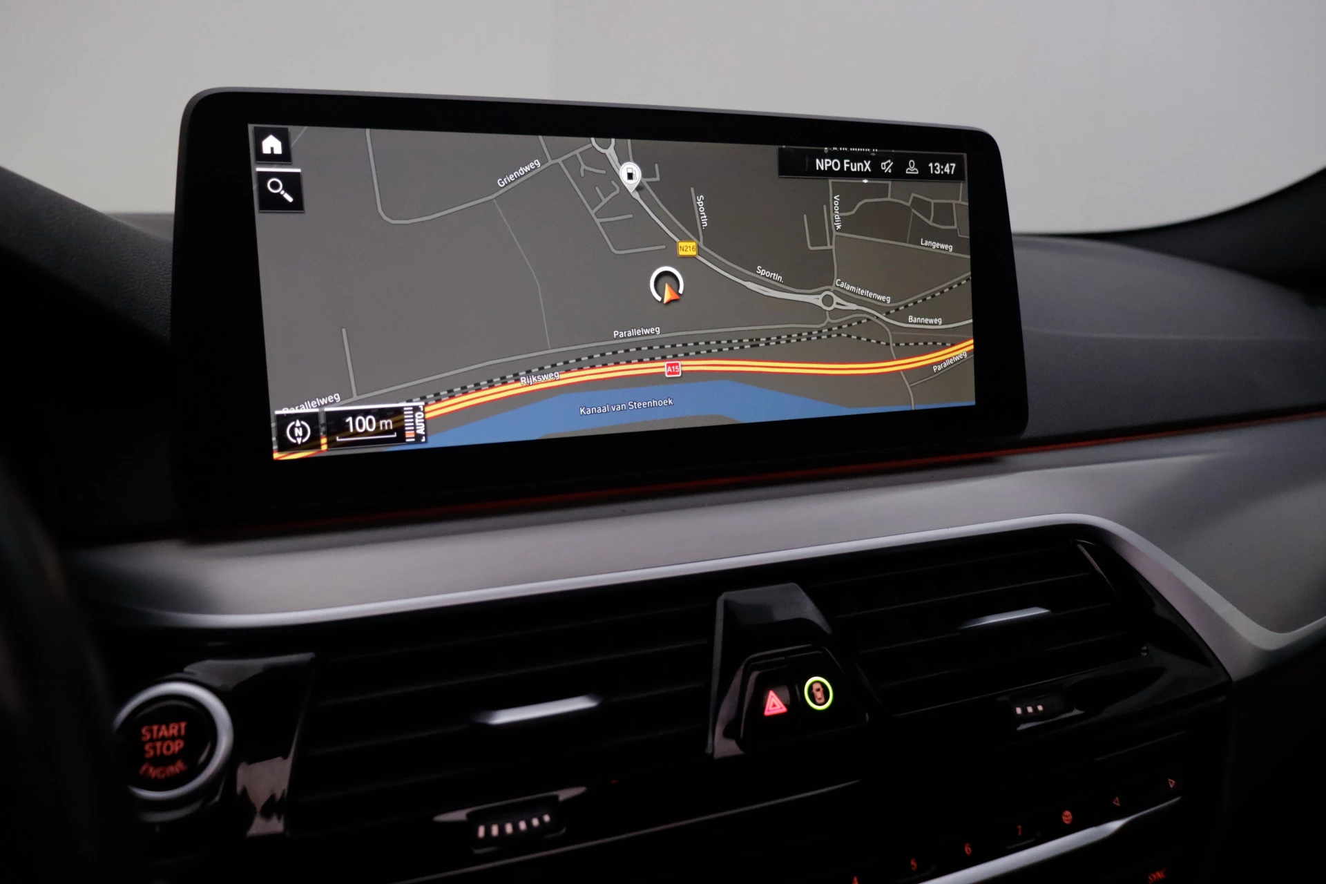 De nieuwste veiligheidssystemen komen in deze BMW 5-serie samen. De camera van de verkeersborddetectie herkent verschillende soorten verkeersborden en toont deze op het dashboard. Een camera houdt de juiste koers binnen de rijstrook in de gaten en het Lane-keeping systeem corrigeert bij afwijkingen. Veilig inhalen gaat moeiteloos dankzij actieve dodehoekdetectie. Het veiligheidssysteem waarschuwt als een ander voertuig in uw dode hoek rijdt. De veiligheid van deze auto wordt verder verhoogd door head-up display, forward collision warning system, hill hold functie, brake assist en bandenspanningcontrolesysteem.