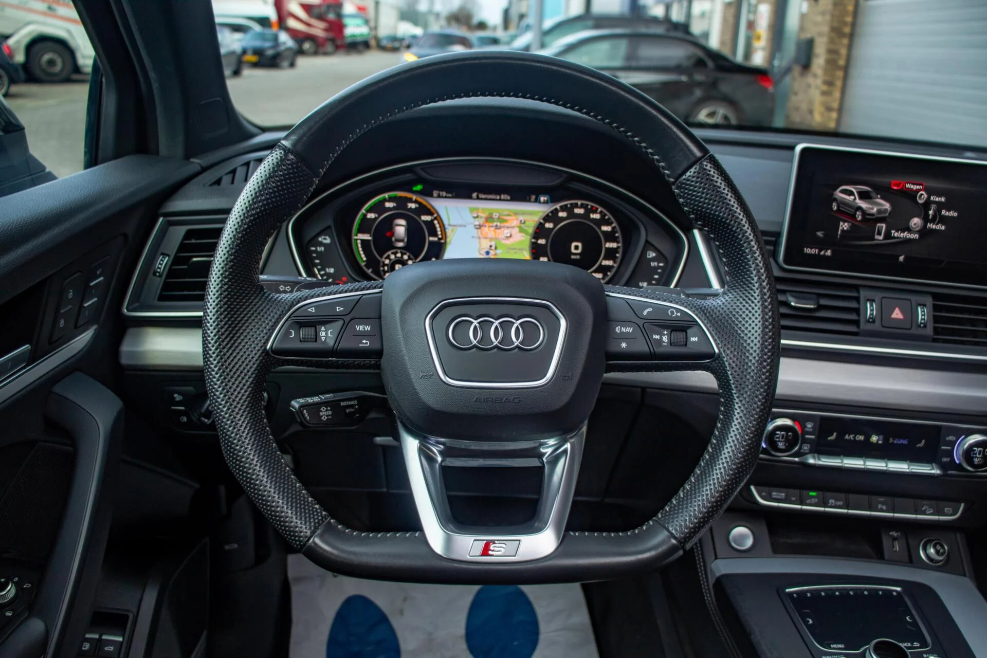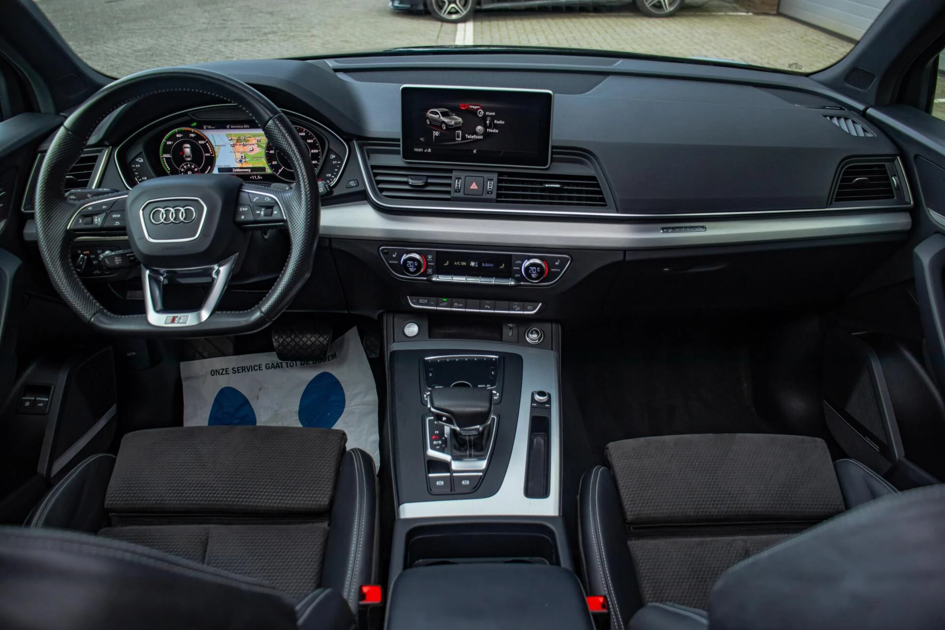 Binnenin is deze Q5 werkelijk compleet uitgerust. Het lederen interieur in combinatie met sfeervolle ambient verlichting creëert een hoogwaardige ambiance. De elektrisch verstelbare stoelen met memoryfunctie en massagefunctie verhogen het comfortniveau aanzienlijk, zeker tijdens langere ritten. Stoelverwarming en het head-up display dragen bij aan een ontspannen rijervaring. Het digitale dashboard presenteert alle informatie overzichtelijk en modern. Het Bang & Olufsen audiosysteem zorgt voor een indrukwekkende geluidskwaliteit, terwijl Apple CarPlay en navigatie zorgen voor optimale connectiviteit. De parkeercamera en dodehoekdetectie maken manoeuvreren en rijden extra veilig en overzichtelijk.