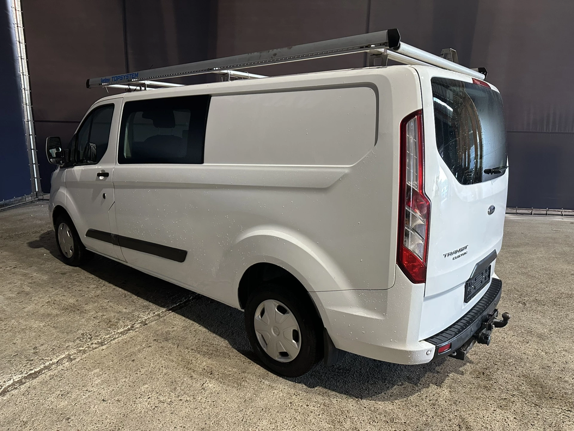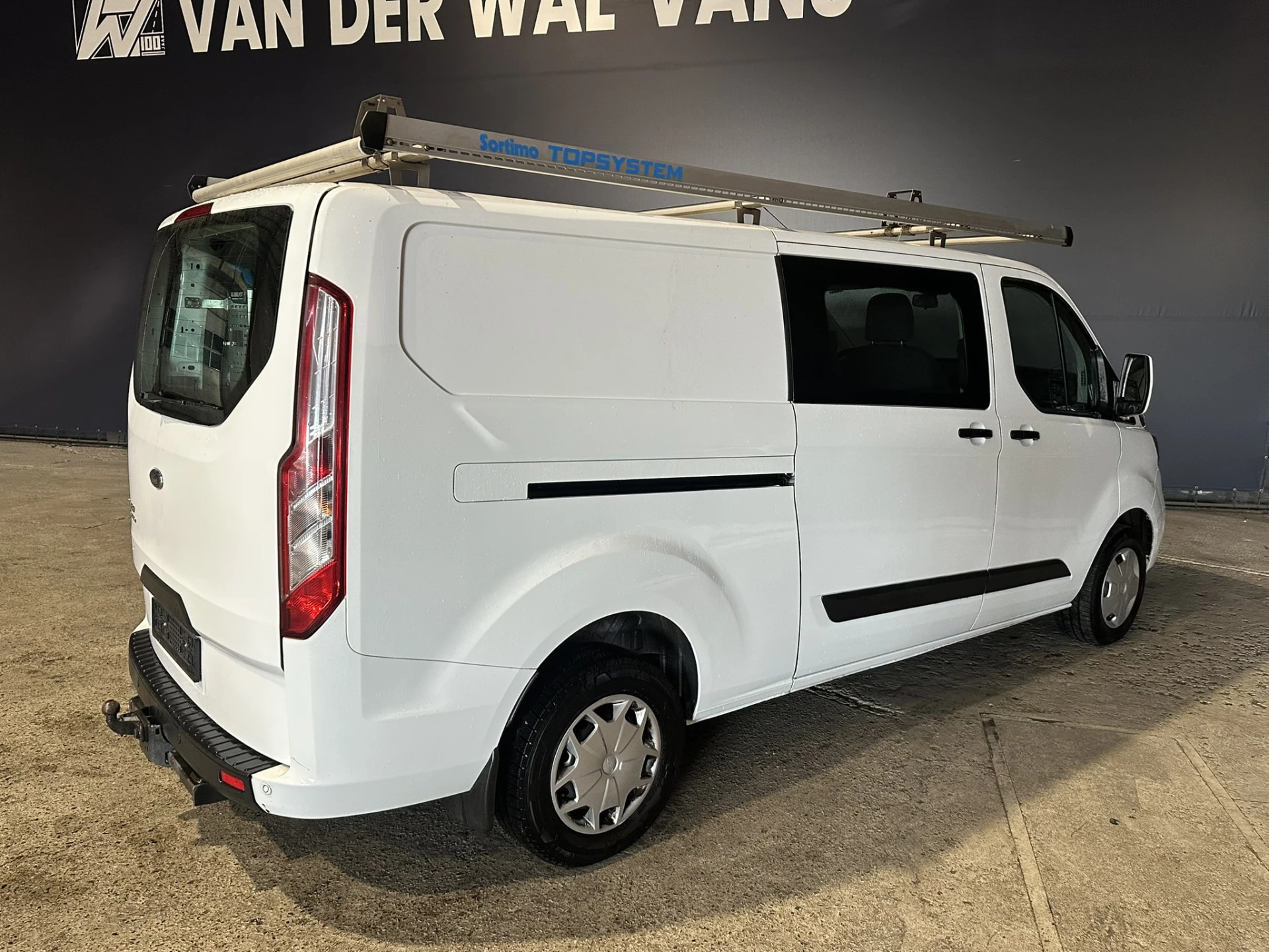 131pk sterke Ford Transit Custom L2H1 Euro6 dubbel cabine met airconditioning en 5 zitplaatsen. Dealer onderhouden en voorzien van inrichting, imperiaal, 2800kg trekhaak, LED, cruisecontrol, stoelverwarming, parkeersensoren, achterklep en bluetooth telefoonvoorbereiding.
