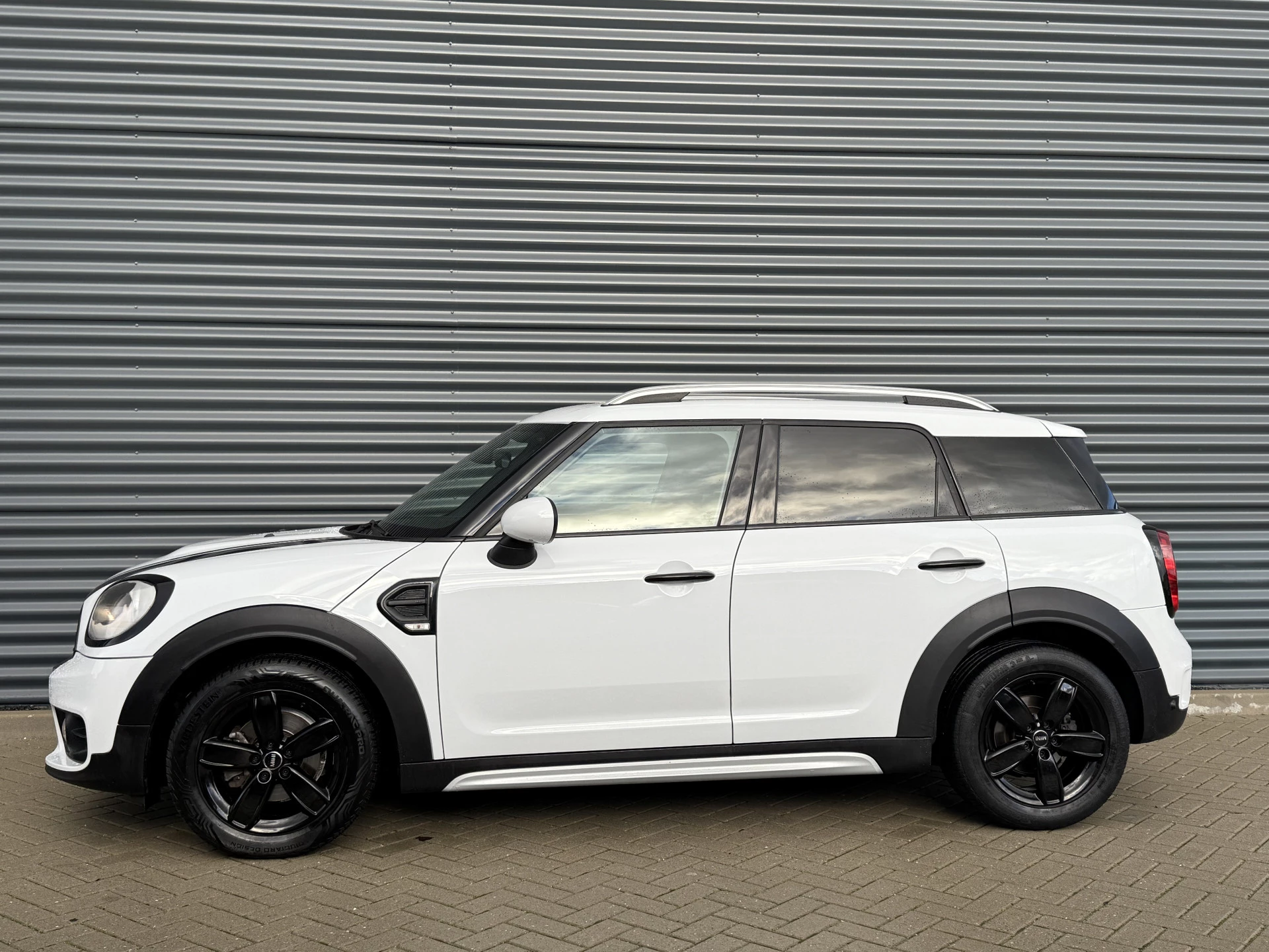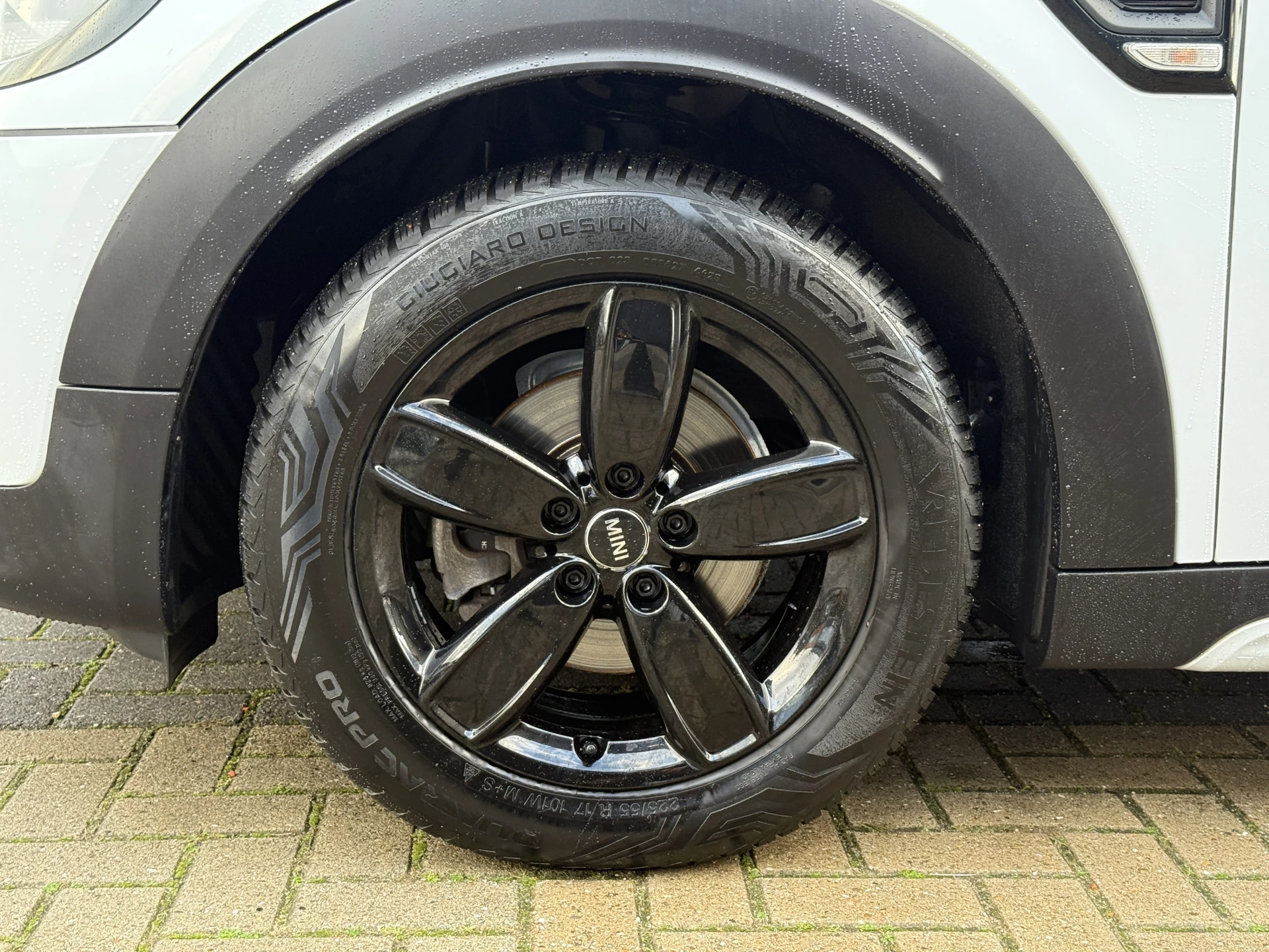 Schitterende Mini Countryman met hoogglans zwarte licht metalen velgen en Black Optic pakket.