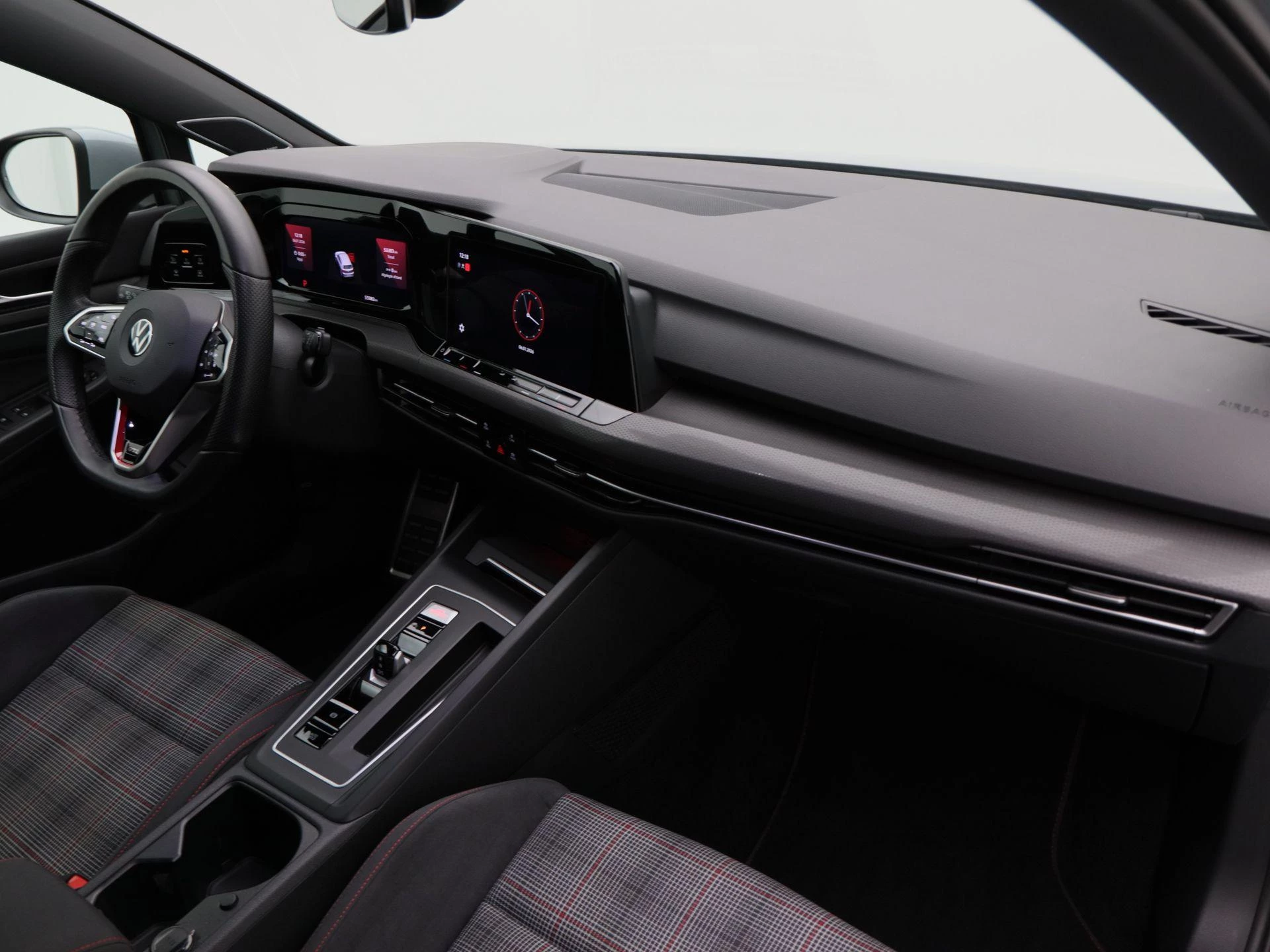 Binnenin ervaar je direct het authentieke GTi-gevoel. De sportstoelen met de iconische GTi-ruitjes in stof/alcantara, het lederen sportstuurwiel, en de Virtual Cockpit zorgen voor een cockpit die volledig op de bestuurder is gericht. Extra comfort is aanwezig dankzij stoelverwarming, stuurwielverwarming, en elektronische climate control (ECC).