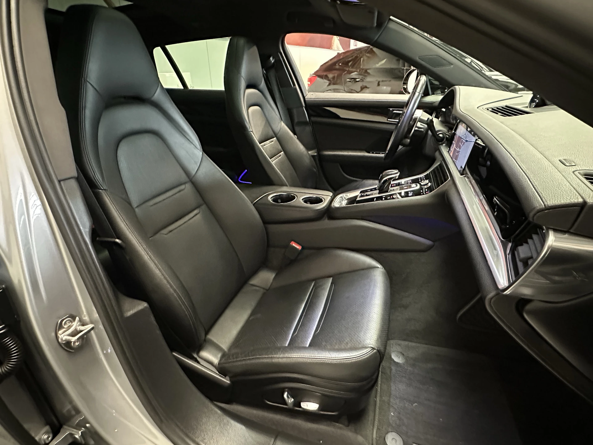 Stap in het luxueuze interieur van deze Panamera Sport Turismo en geniet van de comfortabele lederen bekleding. Verwen uzelf met stoelverwarming, zodat u altijd kunt genieten van een aangename temperatuur, zelfs op koudere dagen. Het panoramische schuif-/kanteldak zorgt voor een open en ruimtelijk gevoel, terwijl de elektrisch verstelbare bestuurders- en bijrijdersstoel perfect afgestemd kunnen worden op uw persoonlijke voorkeur.
