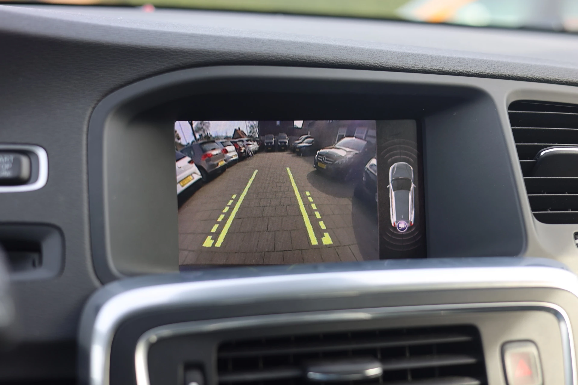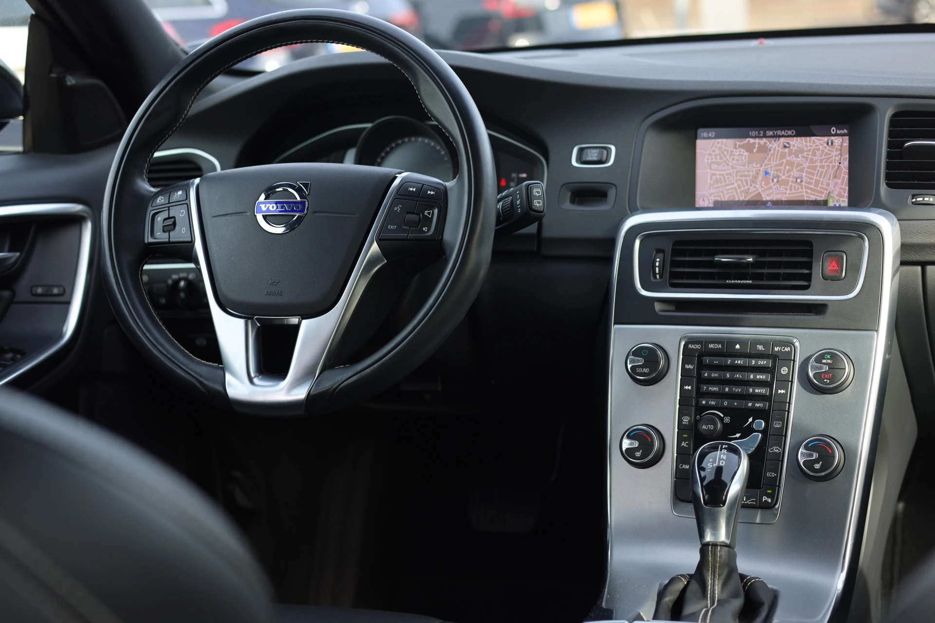 De achteruitrijcamera laat duidelijk zien hoeveel ruimte u nog heeft bij het inparkeren. De speciale app verbindt met Connected Services, die de status van vitale functies bijhoudt en waarschuwt als u bijvoorbeeld moet tanken, de bandenspanning moet controleren of olie moet bijvullen. Houdt uw ogen op de weg en uw handen aan het stuur. Het audio-installatiesysteem en het navigatiesysteem met harde schijf bedient u vanaf het stuurwiel en met spraakbediening. Aan boord van deze Volvo V60 is een achteropkomend verkeer waarschuwing voor extra veiligheid. Tot de standaard uitrusting van deze auto hoort ook electronic climate control. Ook is de Volvo uitgerust met: WIFI-hotspot, regensensor, cruise control, dvd-systeem, automatisch dimmende binnenspiegel en centrale deurvergrendeling met afstandsbediening.