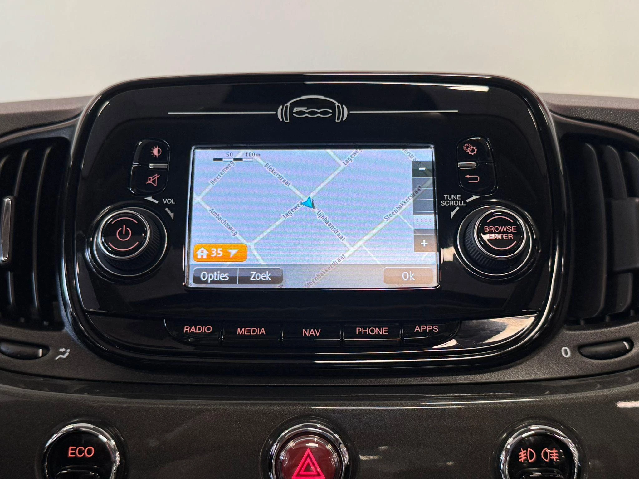 Ook praktisch: deze auto is voorzien van een eigen navigatiesysteem. Radarsensoren aan de achterkant van de auto zorgen voor een achteropkomend verkeer waarschuwing als de afstand tot het verkeer achter te klein wordt. Even muten, een andere zender of track kiezen? Geen gerommel, het gaat moeiteloos met de audiobediening op het stuur. Met de DAB-ontvanger heeft u keuze uit talloze digitale radiozenders met de allerhoogste geluidskwaliteit. Parkeerplekken worden er niet ruimer op. Maar met de aanwezige parkeersensoren krijgt u deze Fiat 500 zonder problemen op z'n plaats. Ook regensensor, cruise control, airconditioning, lederen stuur en centrale deurvergrendeling met afstandsbediening horen tot de voorzieningen op deze auto.