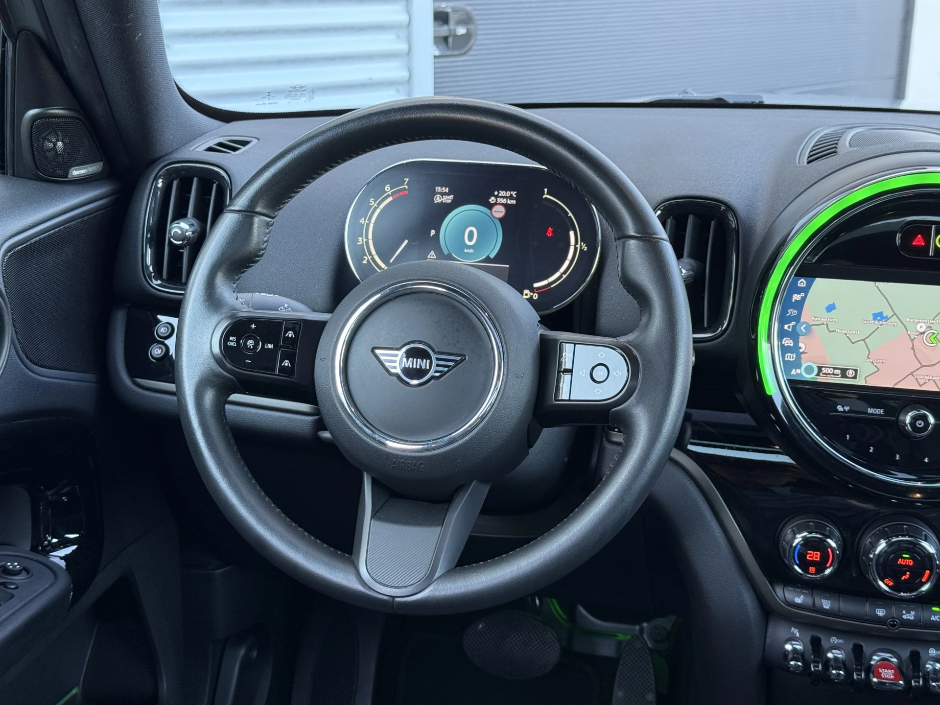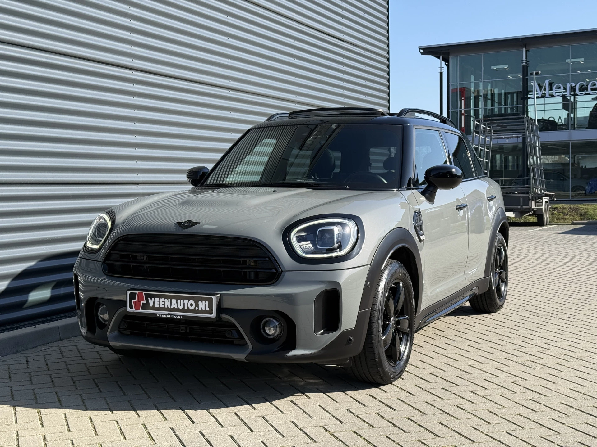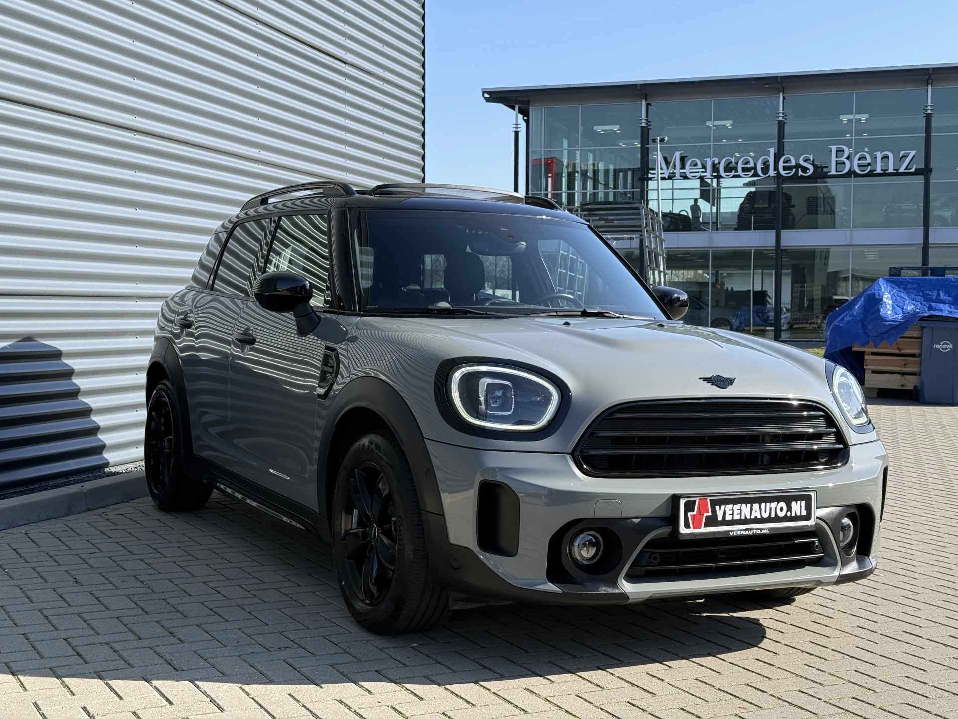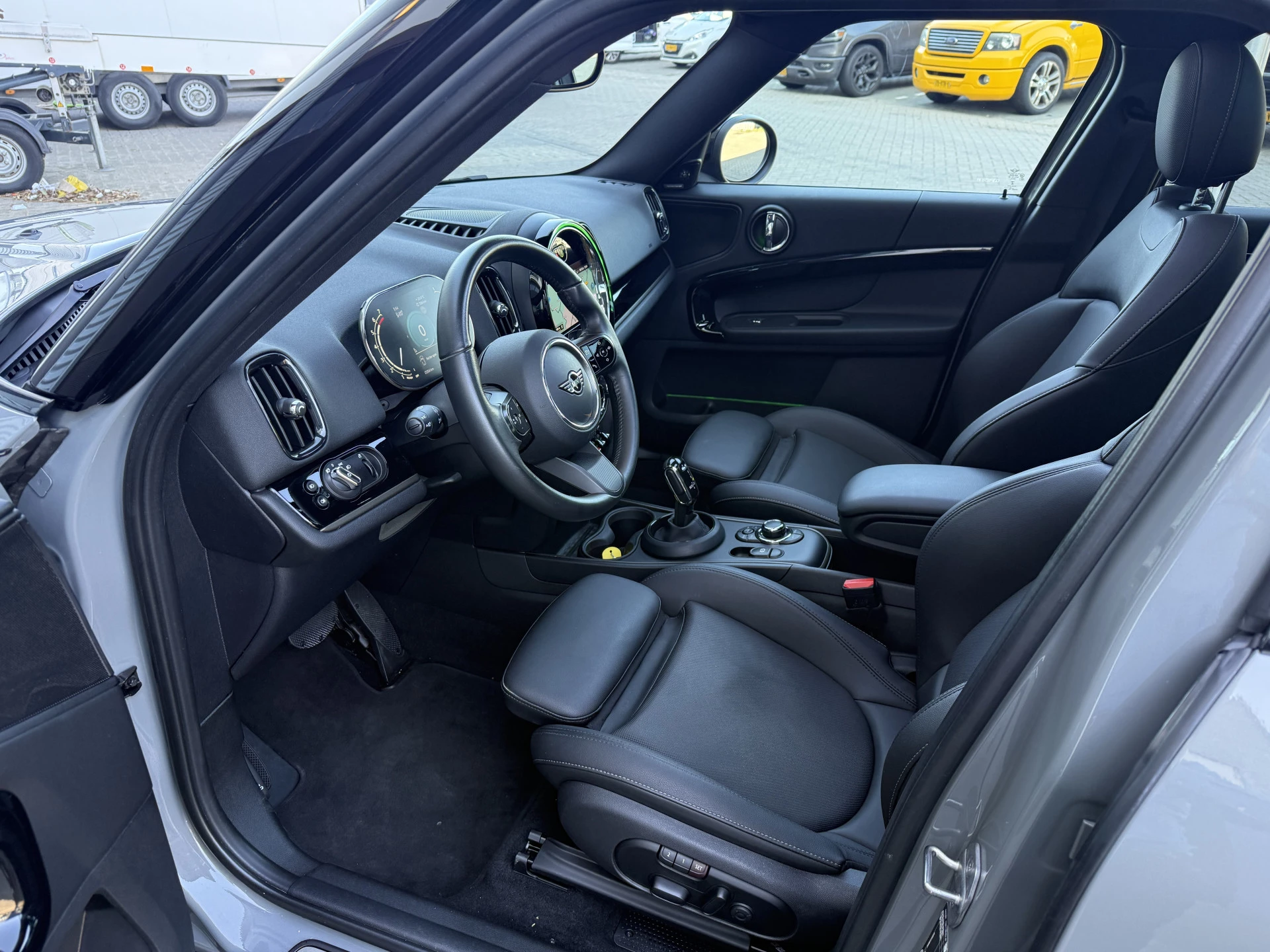 Schitterende Mini Countryman 1.5 Cooper automaat in Moonwalk Grey metallic met hoogglans zwarte licht metalen velgen en Black Optic pakket. Deze Mini is bijzonder compleet uitgerust met onder andere de volgende opties: Panorama dak, Harman Kardon Audio, lederen bekleding, elektrische bedienbare stoel met memory en lende steun verstelling, LED verlichtingspakket, Apple Carplay, achteruitrijcamera, navigatie, virtuele cockpit, adaptieve cruise control, keyless entry, draadloze telefoonlader, parkeersensoren voor + achter met parkeer assistent, etc..