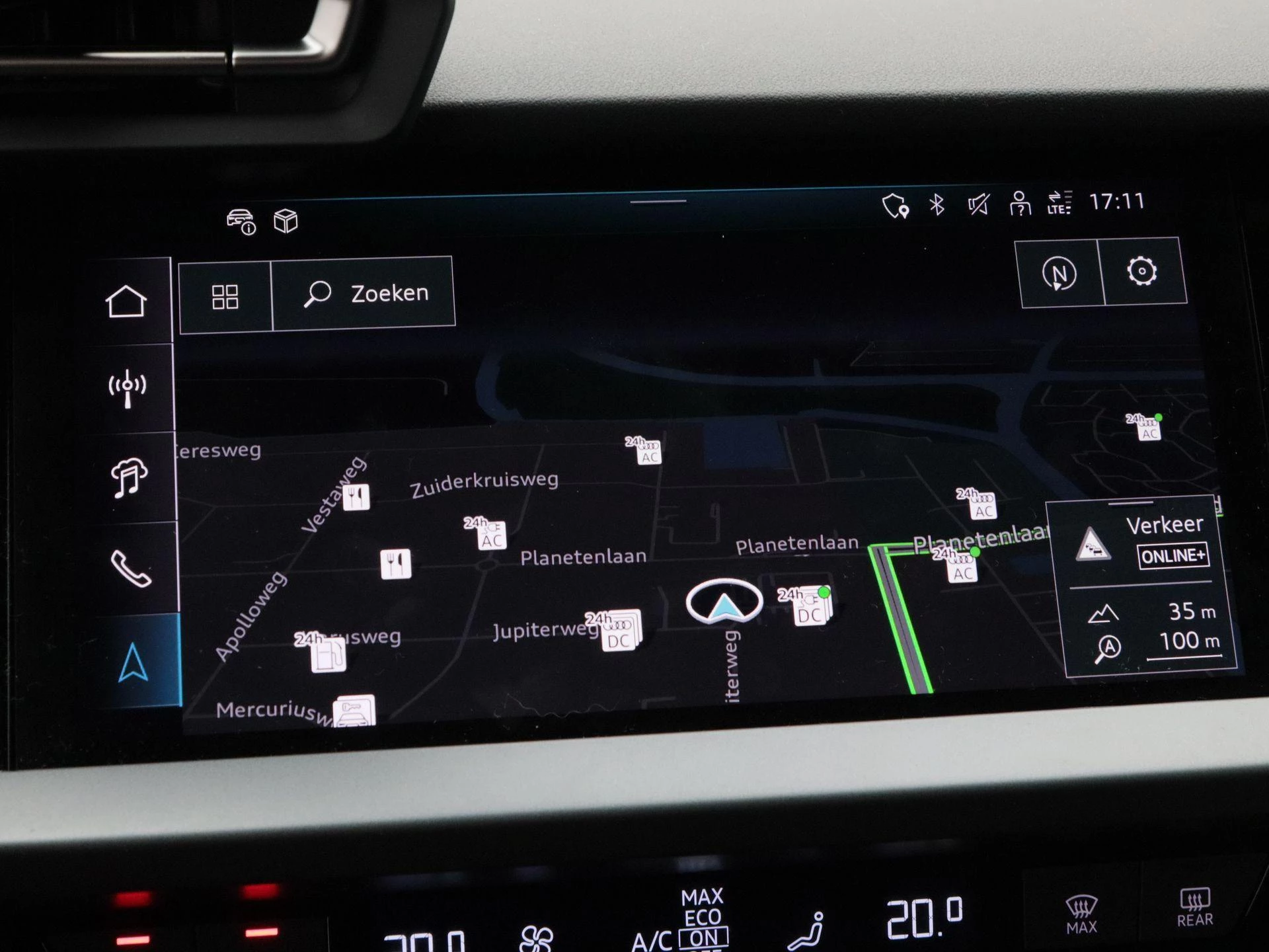 De S-Line Competition uitvoering geeft deze A3 een extra dynamische en exclusieve uitstraling met sportieve accenten en hoogwaardige afwerking. De 19 inch lichtmetalen velgen versterken het krachtige design en maken van deze Audi een echte eyecatcher.