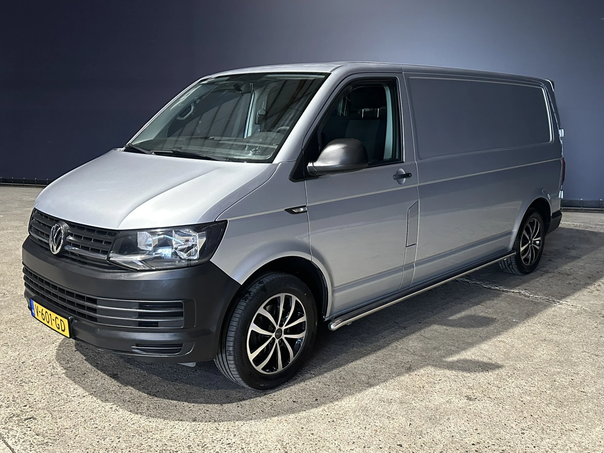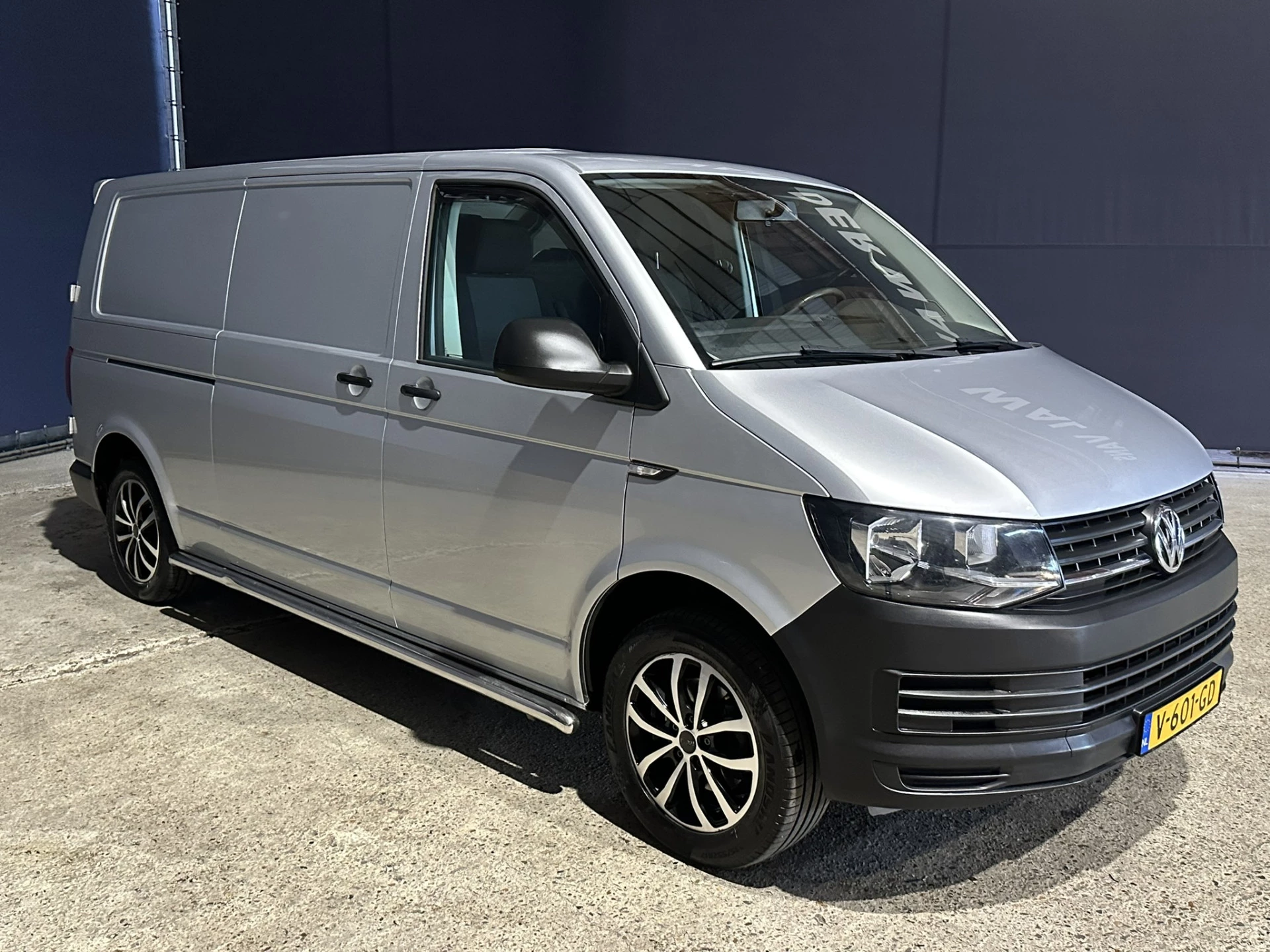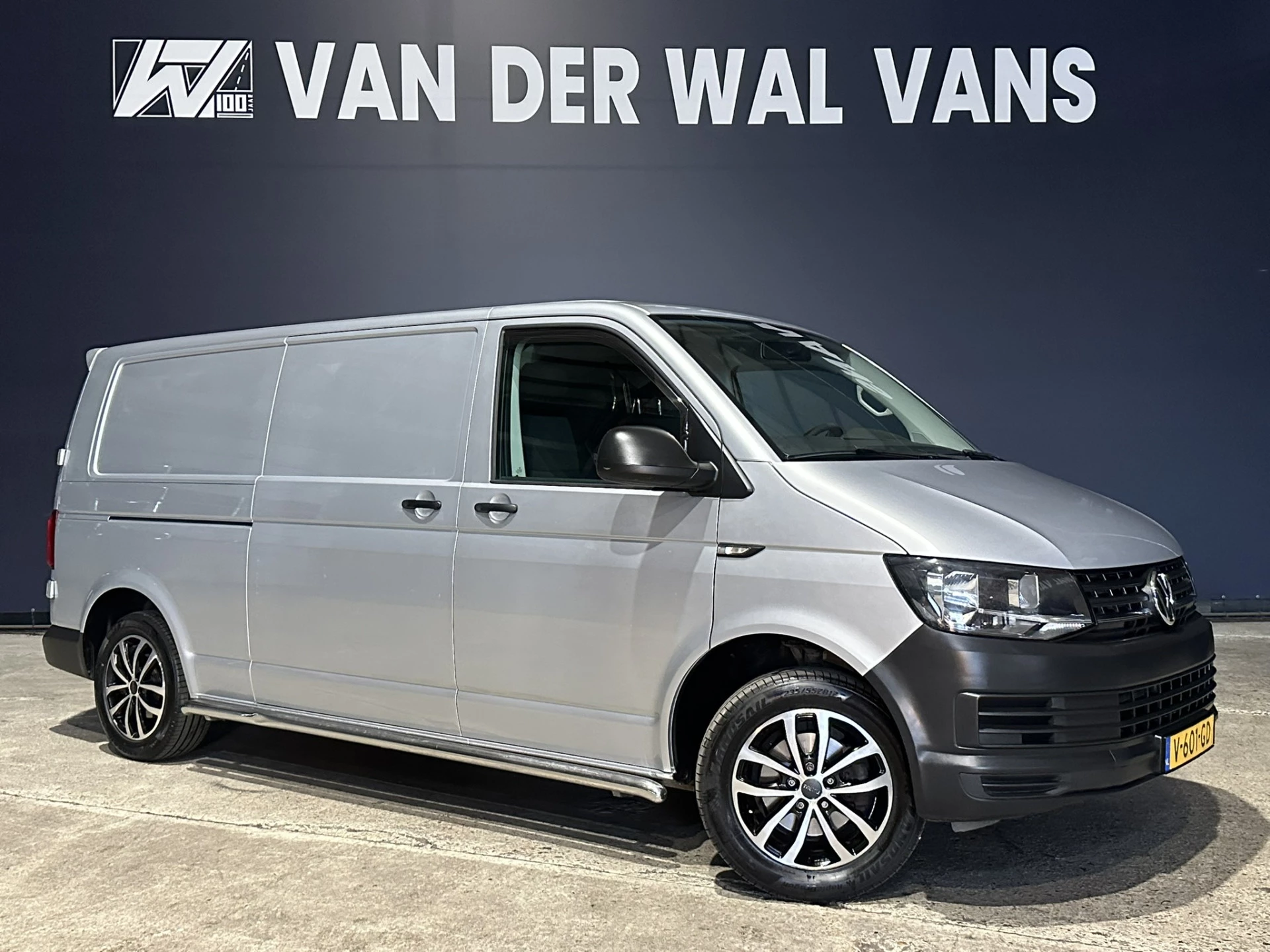 Dealer onderhouden Volkswagen Transporter L2H1 Euro6 met 2200kg trekhaak, airconditioning, cruisecontrol, sidebars, L&M velgen, parkeersensoren en bluetooth telefoonvoorbereiding.