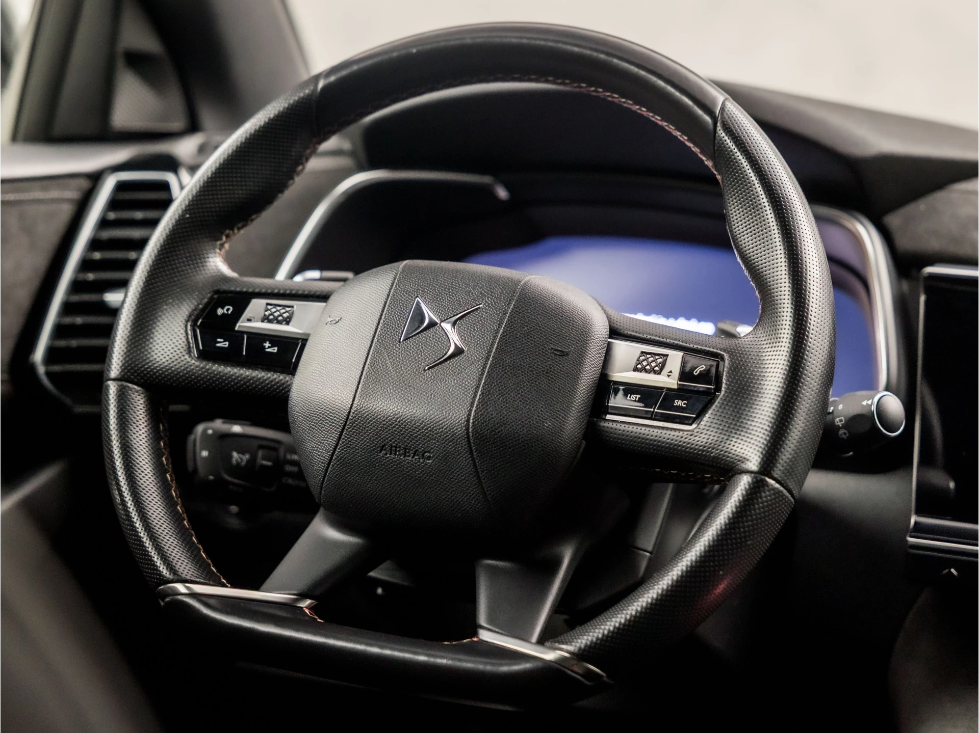 Het digitale dashboard is niet alleen enorm fraai en handig, maar draagt actief bij aan een veilige en slimme rit. Adaptive cruise control is een comfortabele en veilige optie. Het systeem reguleert de snelheid en houdt automatisch afstand tot uw voorligger. Navigatie, onderhoudsstatus, vergrendeling, audio... de mogelijkheden van remote services zijn haast oneindig. Ook deze auto laat zich bedienen en analyseren via uw smartphone! Uw veiligheid op de weg wordt verhoogd door het audio-installatiesysteem met DAB-ontvangst en het navigatiesysteem te bedienen vanaf het stuur of met spraakbediening, zodat uw handen veilig op het stuur blijven en uw ogen gericht zijn op de weg. Deze DS 7 Crossback is een complete auto anno nu, en dat merk je. Bijvoorbeeld door de aanwezige draadloze oplaadmogelijkheid voor telefoons. En dan is deze auto ook nog eens voorzien van automatische airconditioning, sportstuur met schakelpaddels, parkeersensoren voor en achter, regensensor, keyless entry en automatisch dimmende binnenspiegel.