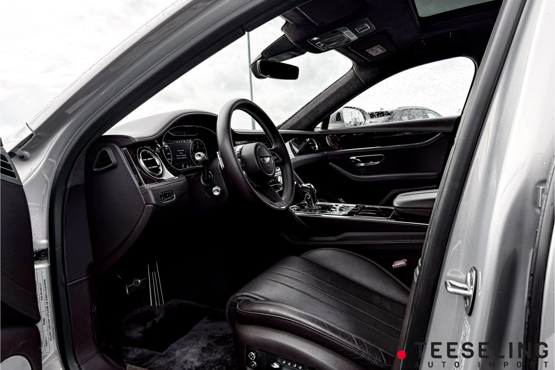 Binnenin wacht een oase van stilte en luxe, uitgevoerd in diep zwart leder en afgewerkt met authentieke materialen. De originele Bentley lamswollen vloermatten – een zeldzame optie van ruim €4.500,- – geven het interieur een bijna huiselijk comfort, met een zachtheid en warmte die je alleen in het allerhoogste segment vindt.