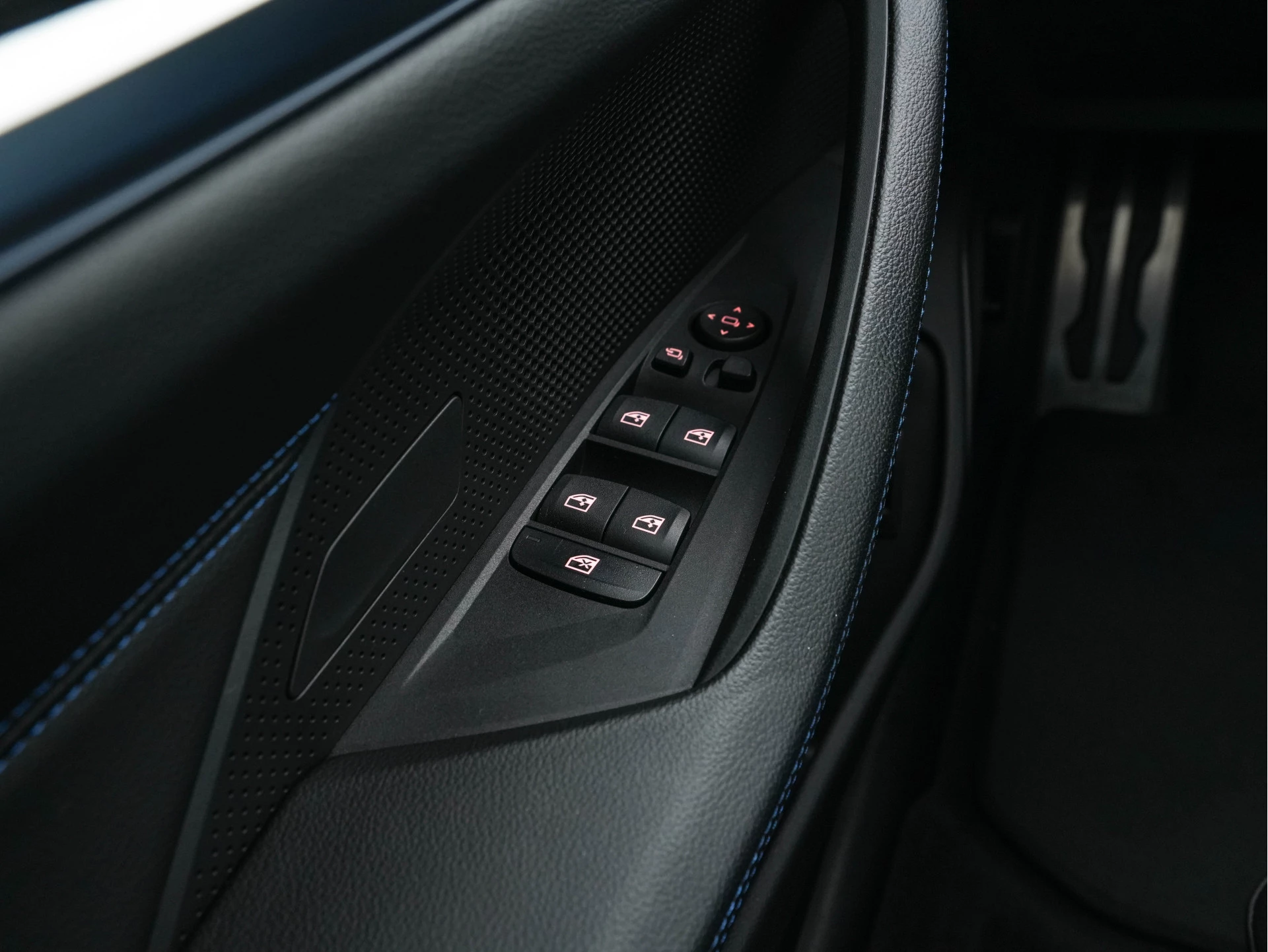 ✅ Alcantara-/Leder combinatie zwart met blauwe stiksel – sportief en luxueus interieur
