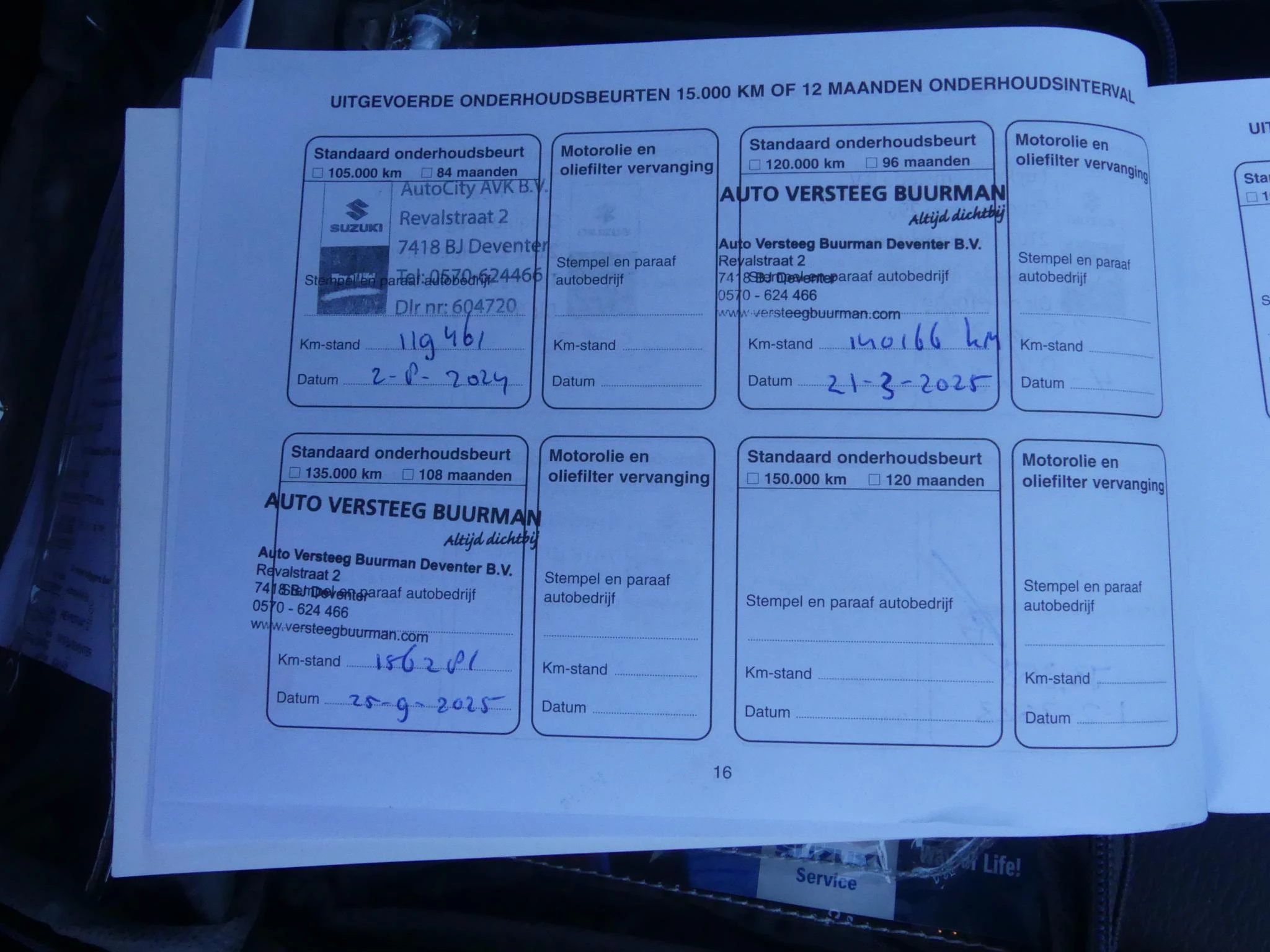- Slijtagedelen vervangen (de norm is dat deze minimaal 10.000km meegaan óf tot de volgende onderhoudsbeurt, afhankelijk van wat het eerste bereikt wordt).