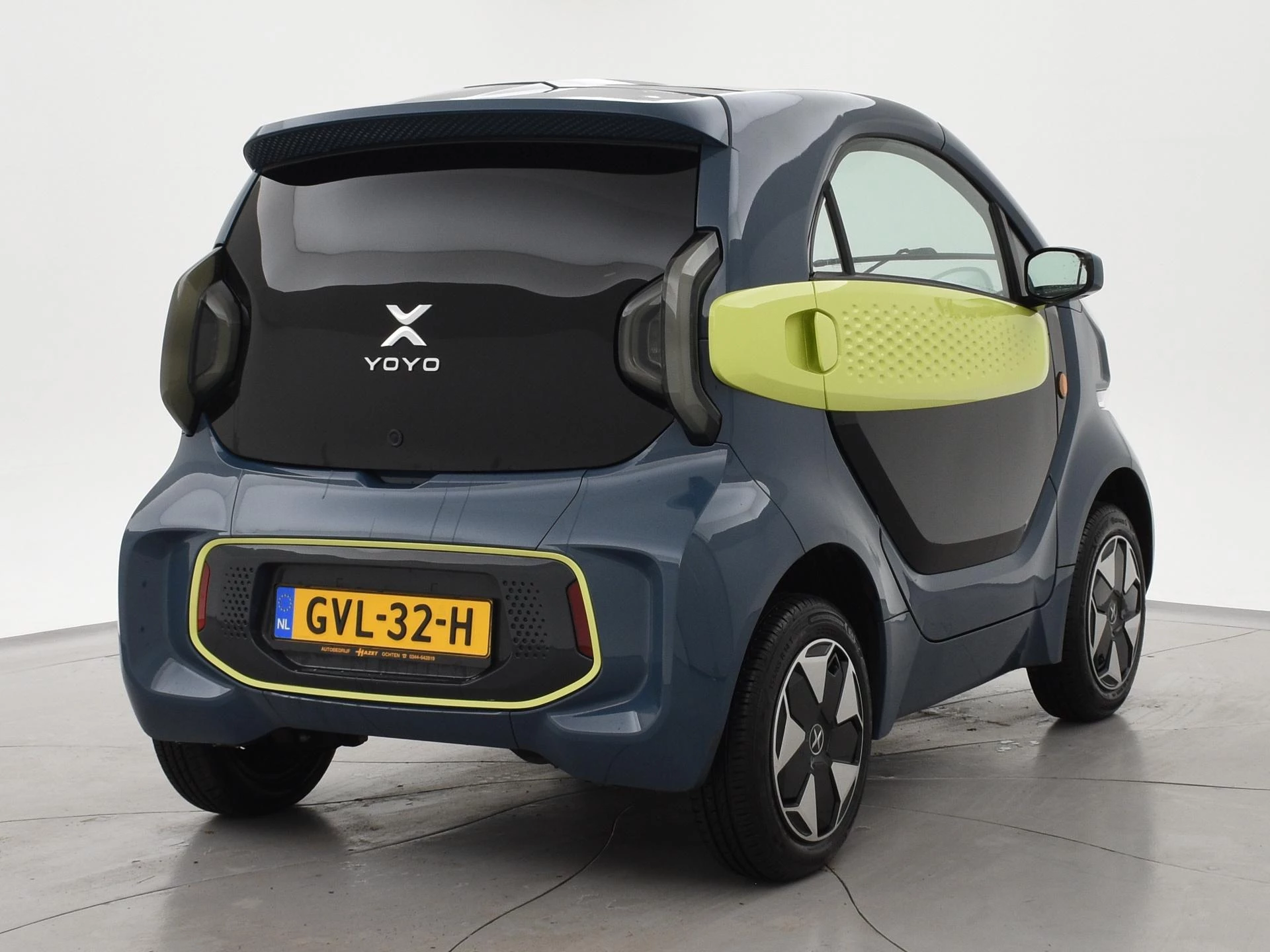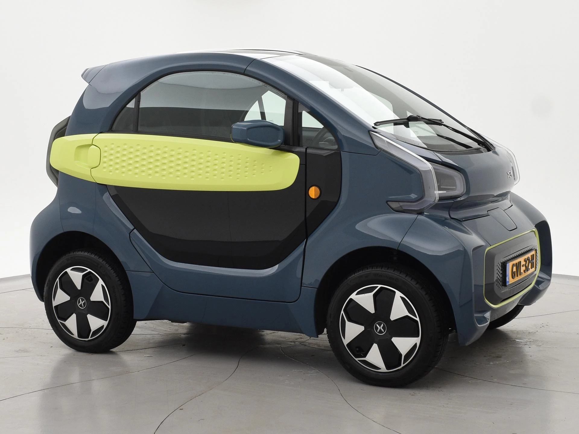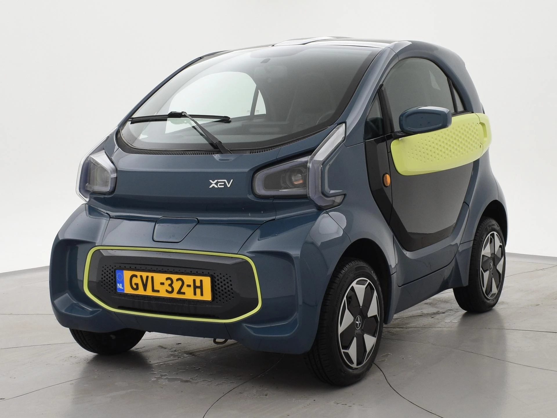 XEV Yoyo van 12-2024 met slechts 1.804 km in het Midnight Blue met Fresh Lime accenten, XEV komt uit Italië uit Venetië. Volledig elektrisch, Automaat, 153 km Actieradius, Topsnelheid 90 km/h, Slechts 8 euro wegenbelasting per kwartaal. Panoramadak, Privacy glass achter, Airco, Speakers met bluetooth verbinding, Digitale cockpit, Leder stuurwiel, Middenarmsteun, LED dagrijverlichting, LED achterlichten, USB lader, Smartphone houder, Stuurbekrachtiging, ABS, Keyless-entry, Elektrische ramen, 180 liter bagageruimte, Schijfremmen voor en achter, Telefoon op de foto's is niet inbegrepen, RDW nieuwprijs 15.990 euro.