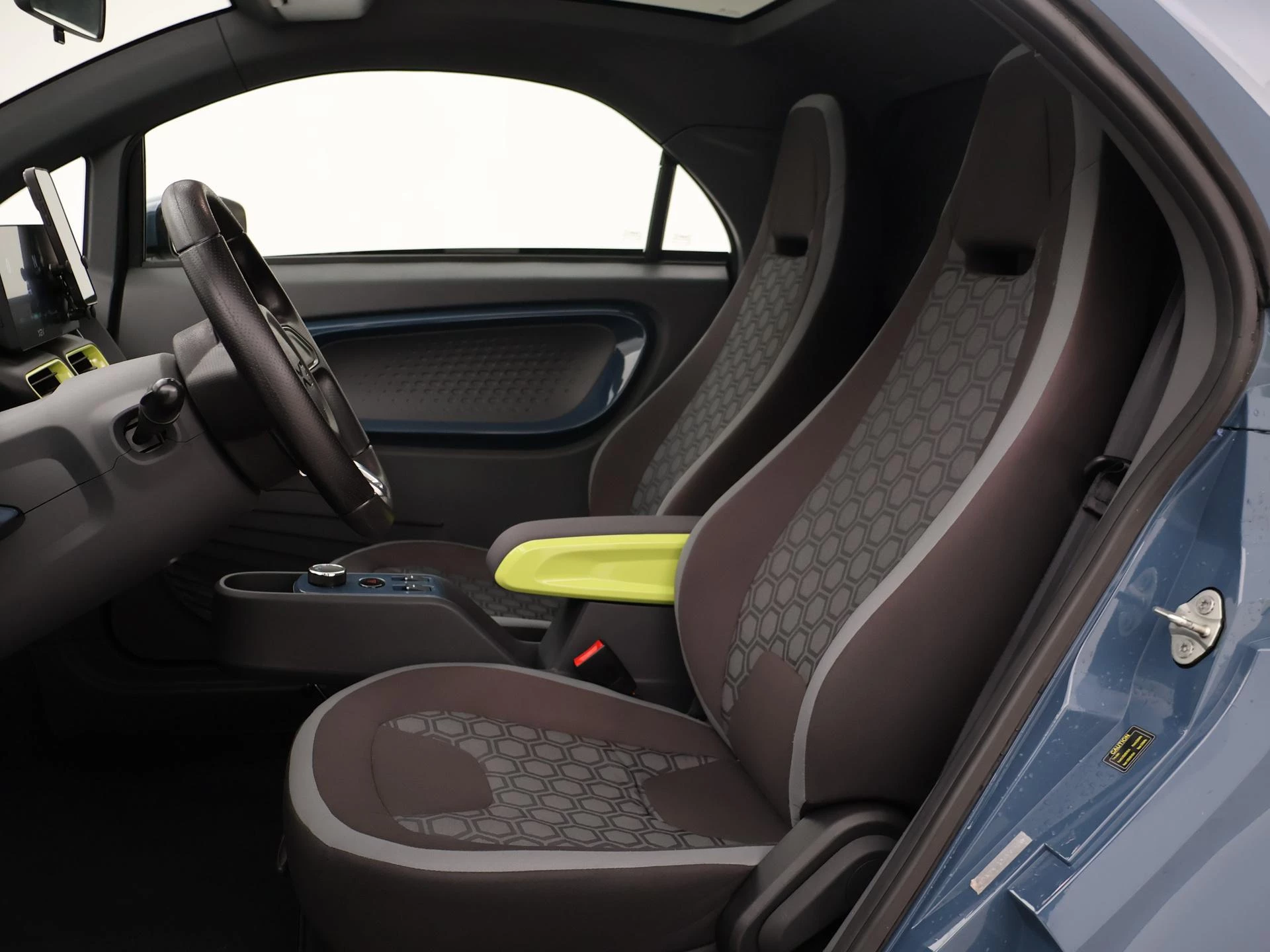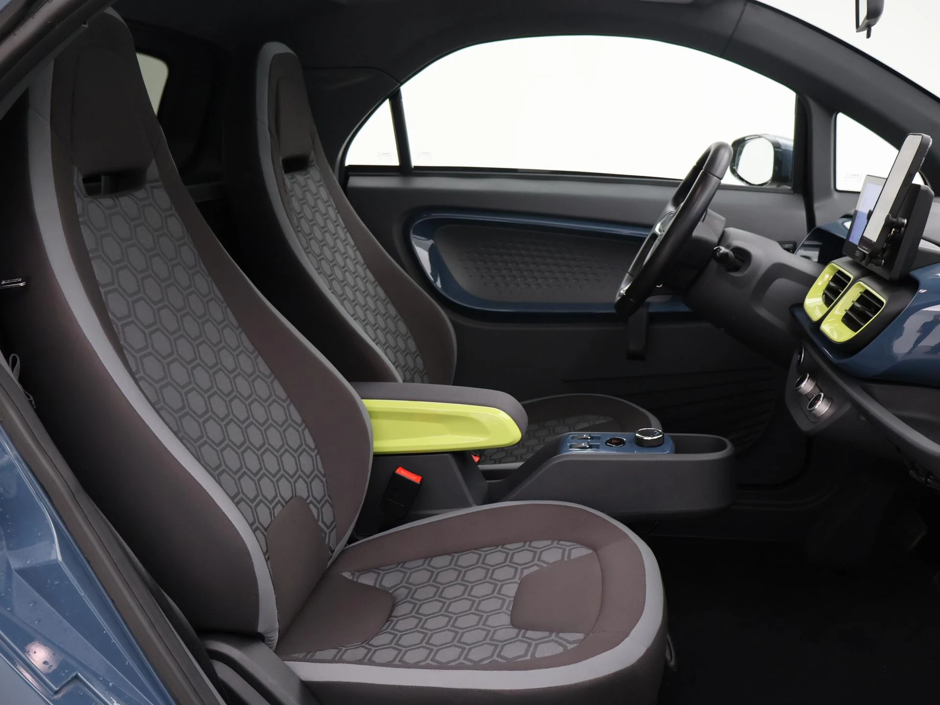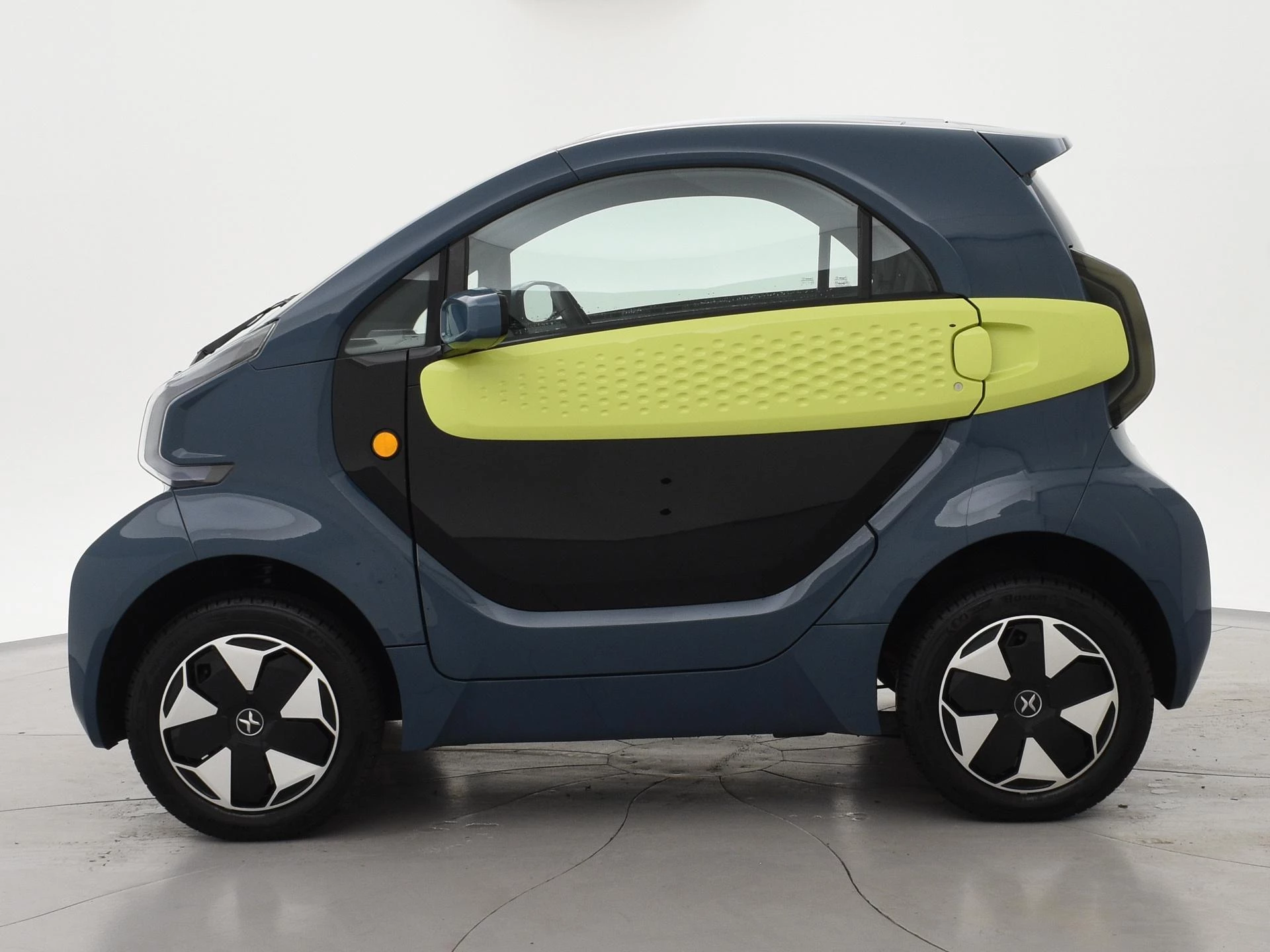 XEV Yoyo van 12-2024 met slechts 1.804 km in het Midnight Blue met Fresh Lime accenten, XEV komt uit Italië uit Venetië. Volledig elektrisch, Automaat, 153 km Actieradius, Topsnelheid 90 km/h, Slechts 8 euro wegenbelasting per kwartaal. Panoramadak, Privacy glass achter, Airco, Speakers met bluetooth verbinding, Digitale cockpit, Leder stuurwiel, Middenarmsteun, LED dagrijverlichting, LED achterlichten, USB lader, Smartphone houder, Stuurbekrachtiging, ABS, Keyless-entry, Elektrische ramen, 180 liter bagageruimte, Schijfremmen voor en achter, Telefoon op de foto's is niet inbegrepen, RDW nieuwprijs 15.990 euro.