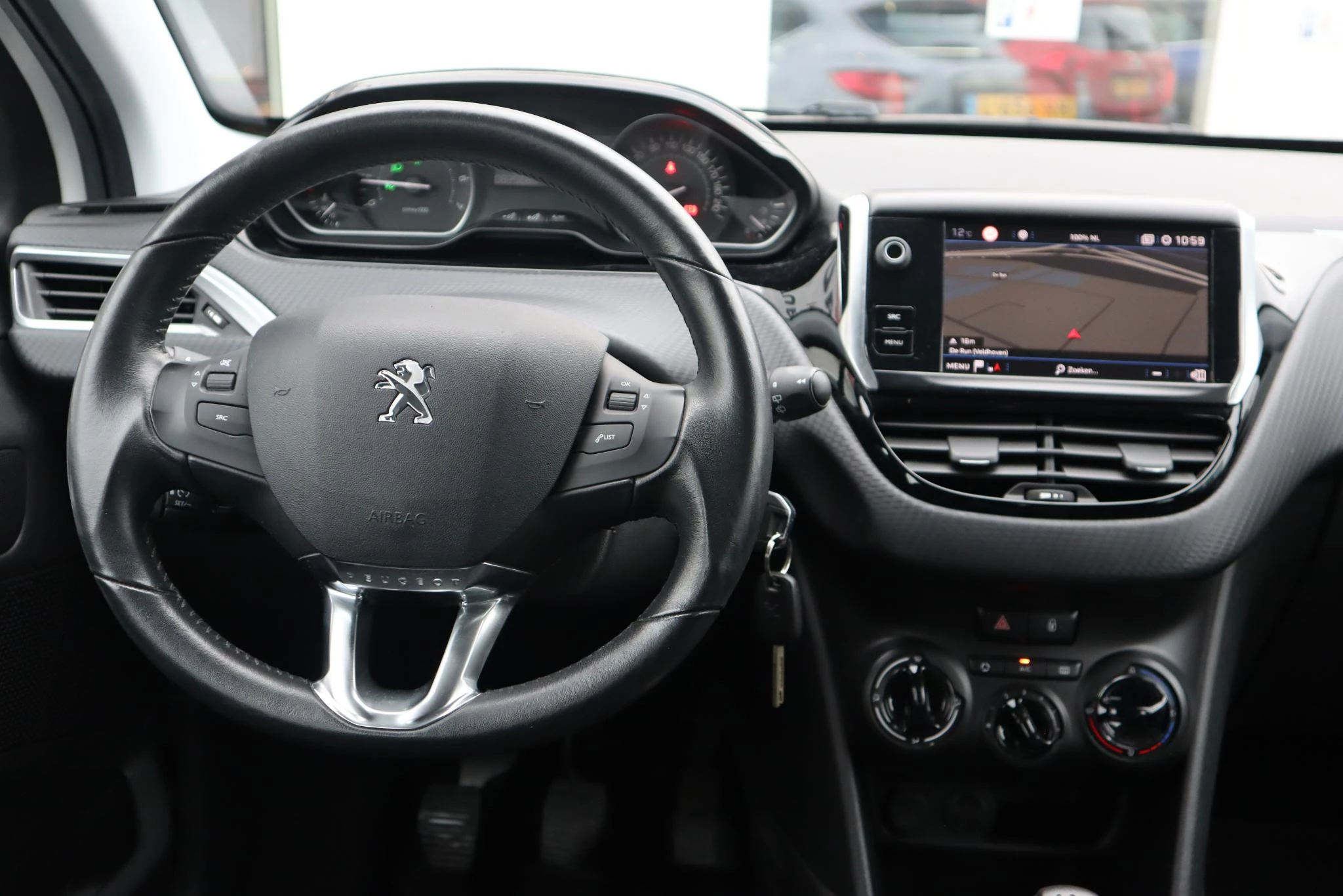 Een smartphone met internetverbinding legt eenvoudig overal contact met de auto. U kunt functies activeren en de conditie van de auto monitoren. Laat u onderweg niet afleiden, de bediening van het audio-installatiesysteem en ook het full map navigatiesysteem gaat met knoppen op het stuur. Natuurlijk is de audio-installatie voorzien van DAB-ontvangst. Geen parkeervak is te klein dankzij de assistentie van de parkeersensoren. Voorzien van cruise control, dus vriendelijk voor de inzittenden én de benzinetank. In de zomer zit u ontspannen achter het stuur dankzij de ingebouwde airconditioning. De Peugeot is standaard voorzien van: centrale deurvergrendeling met afstandsbediening en boordcomputer.